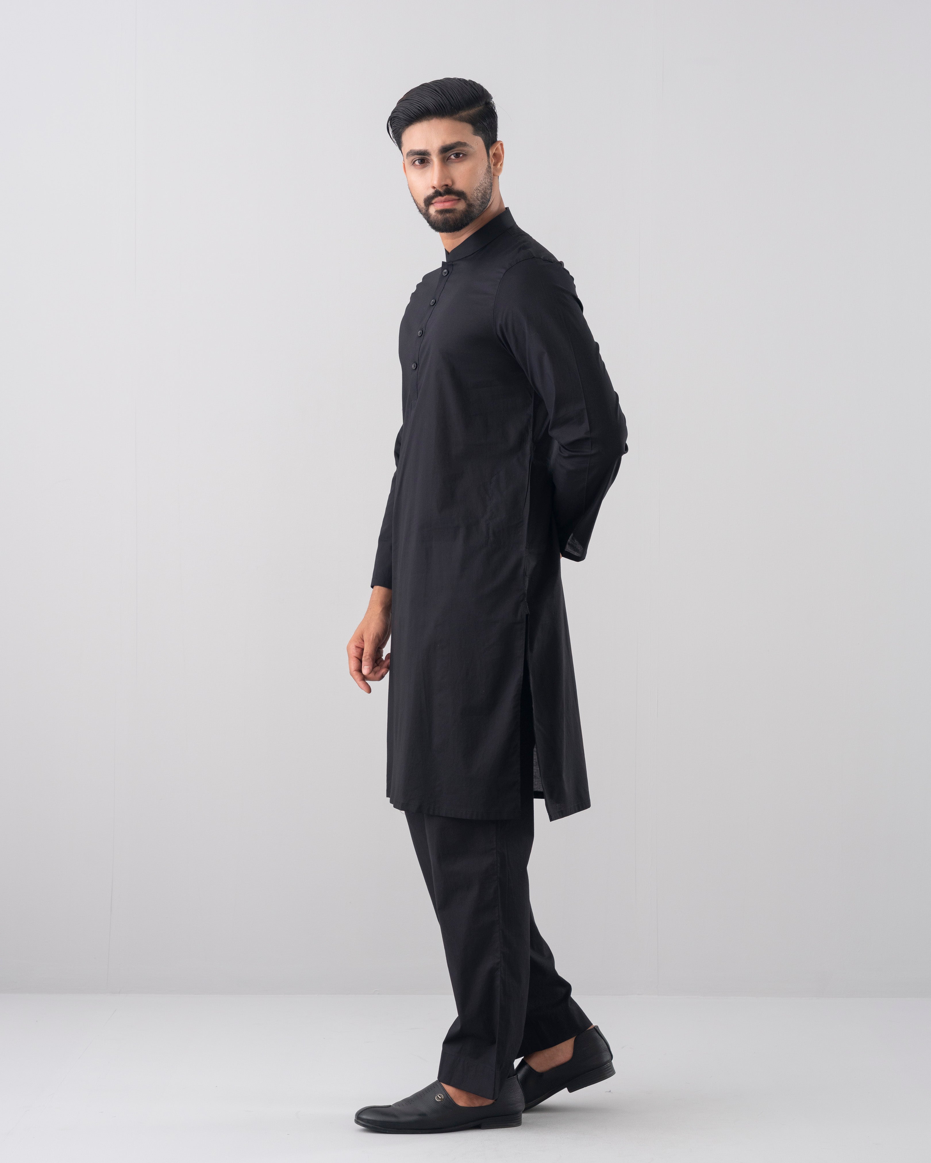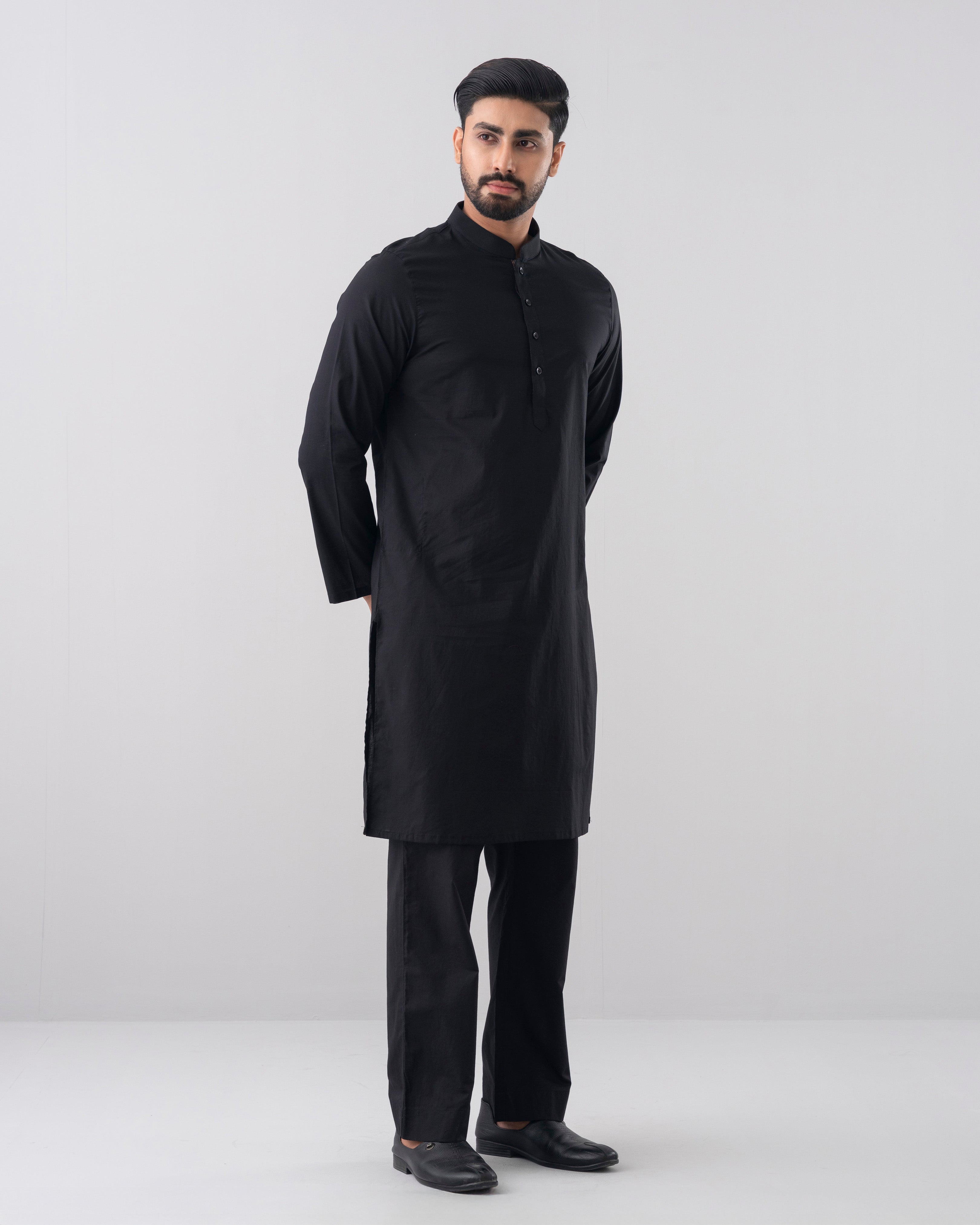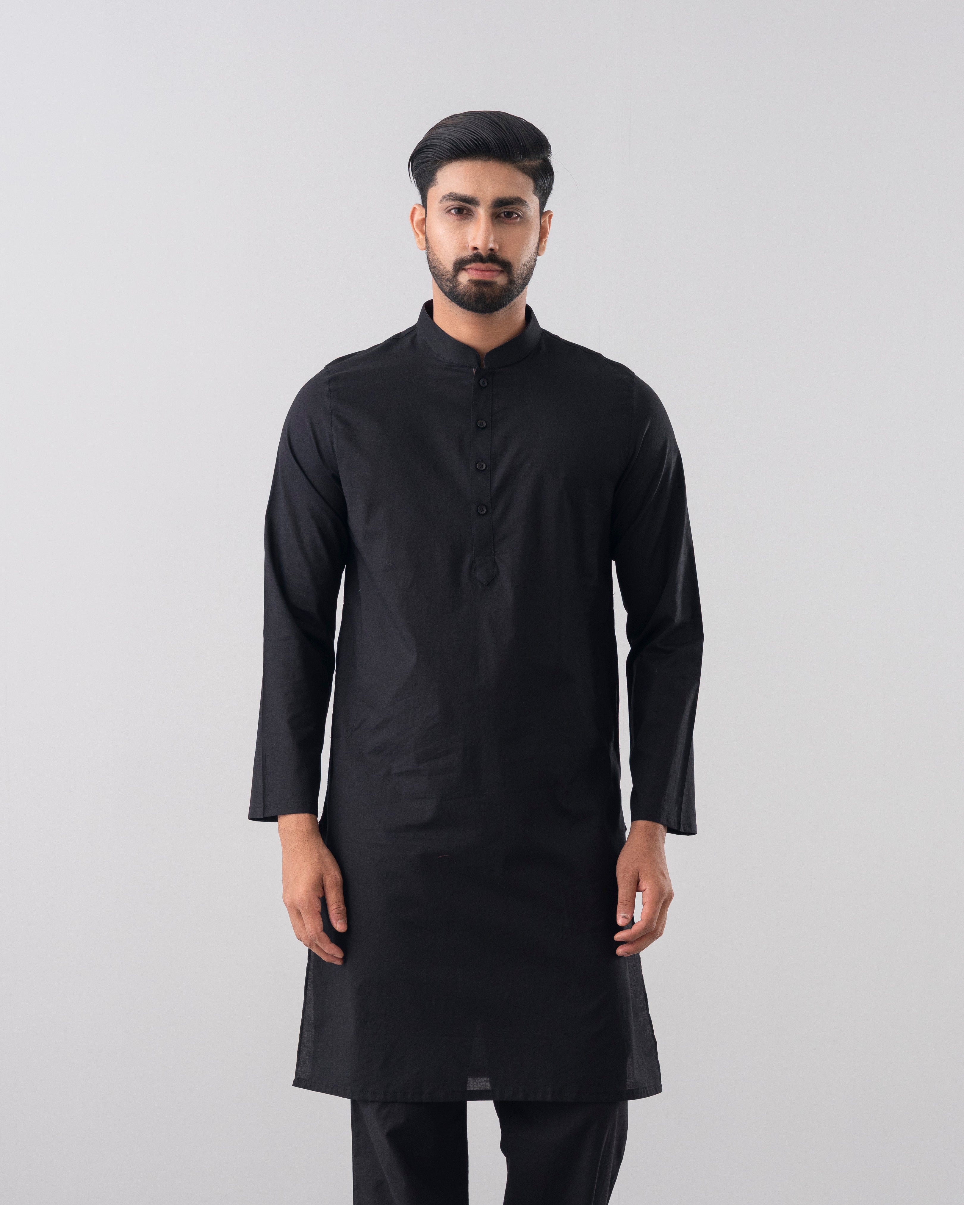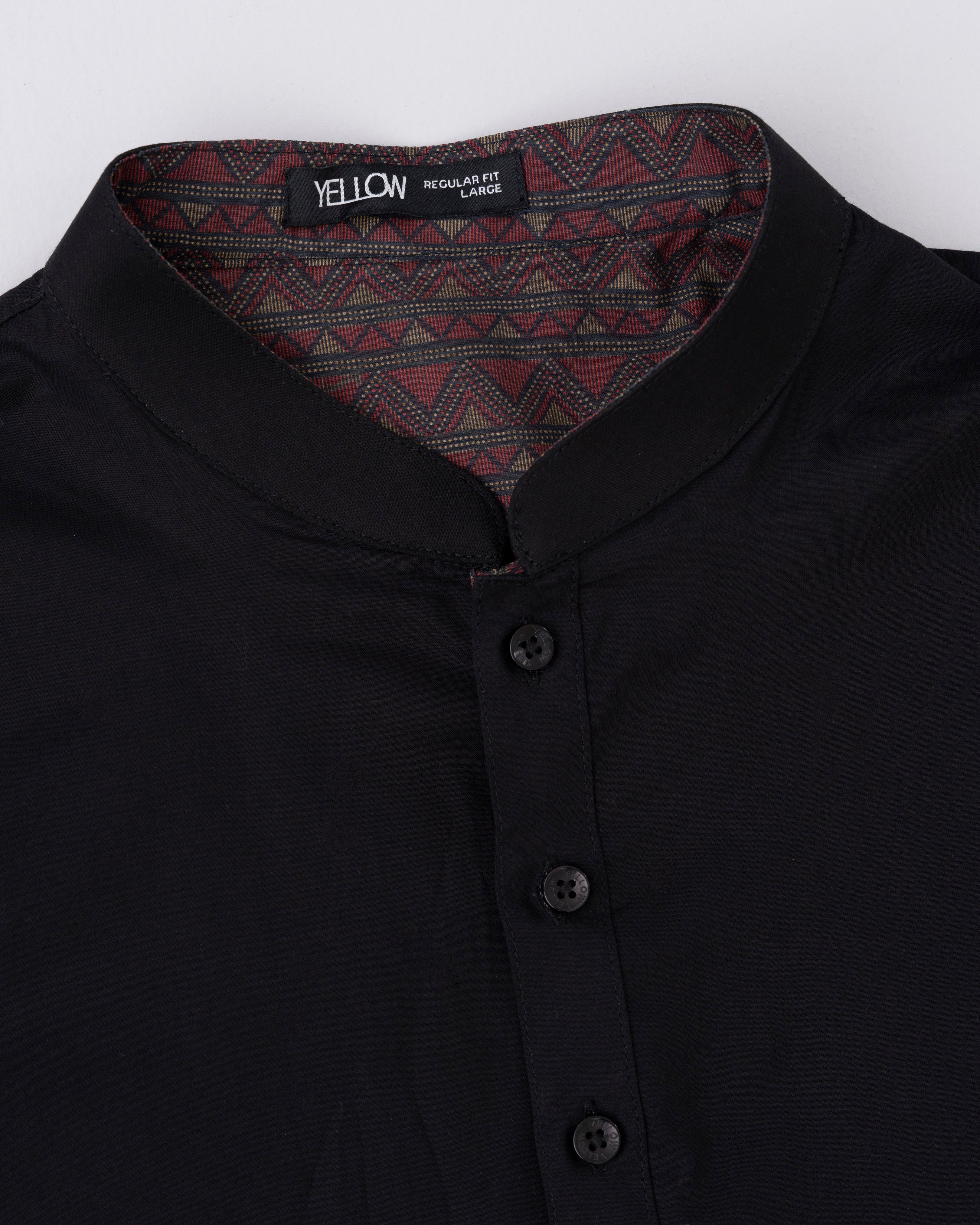 A regular fit Panjabi crafted from 100% cotton breathable fabric, featuring contrast on inside band, moon and placket, offers a stylish yet comfortable daily wear look. Perfect for effortless elegance and all-day ease.