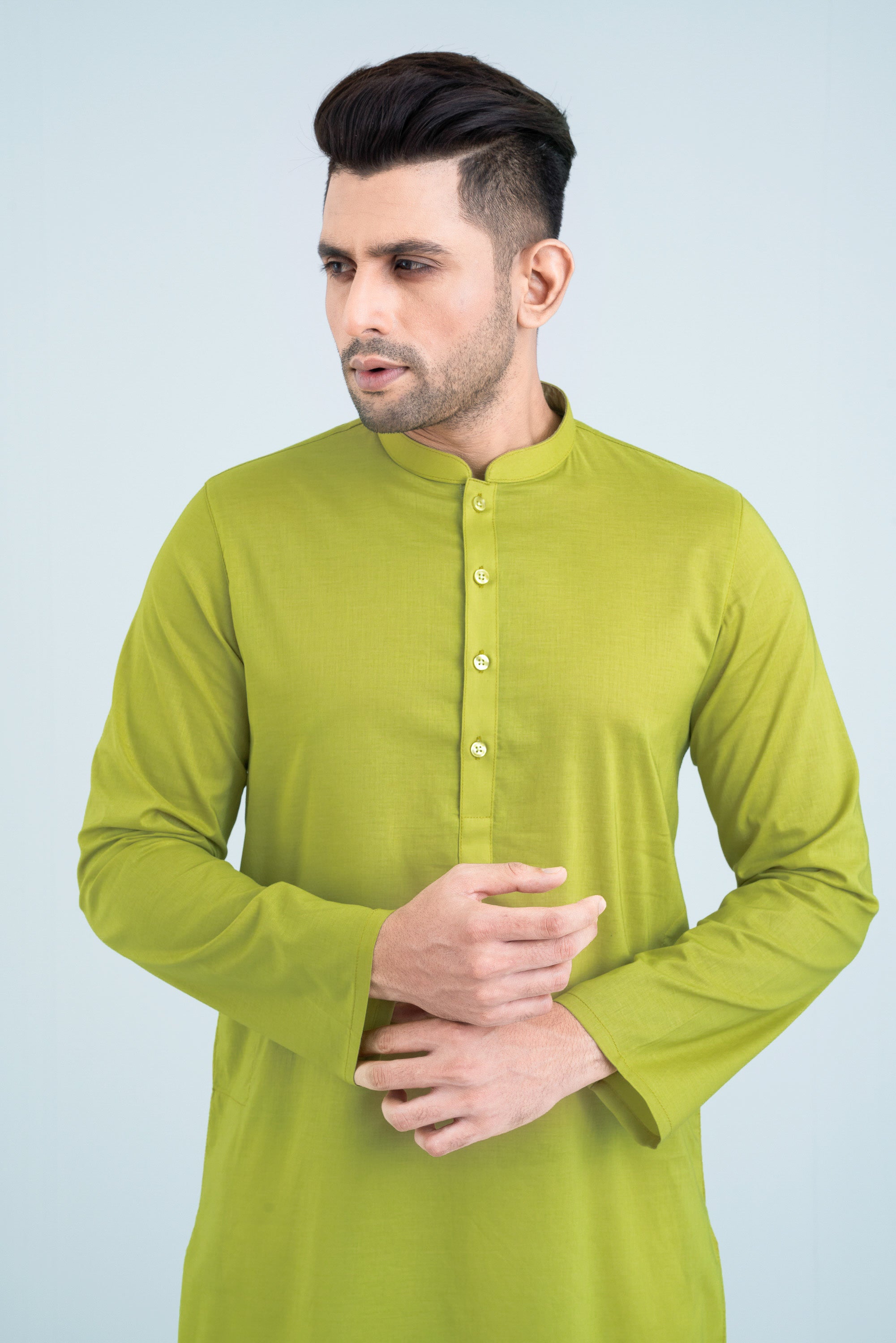 A regular fit Panjabi crafted from solid dyed 100% cotton breathable fabric, featuring contrast details and DTM plastic buttons, offers a stylish yet comfortable daily wear look. Perfect for effortless elegance and all-day ease.