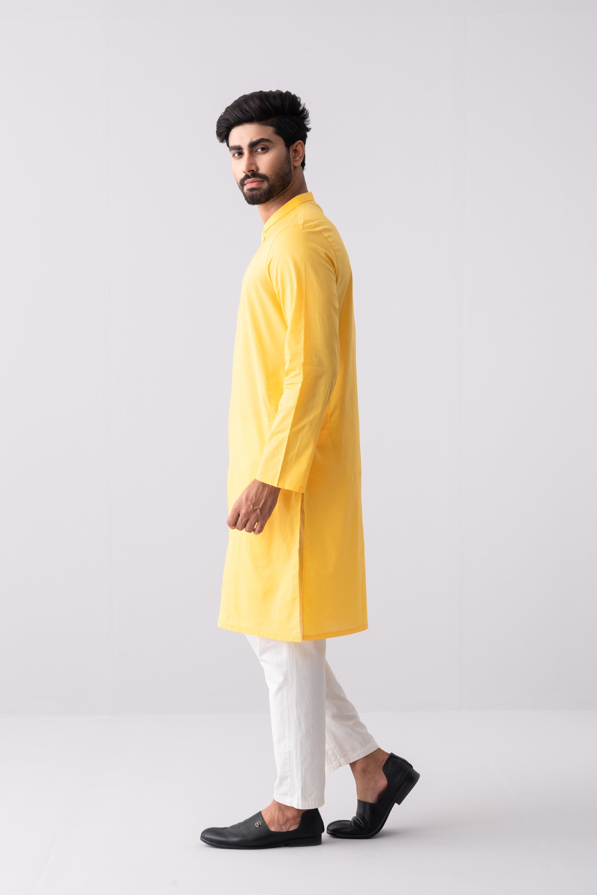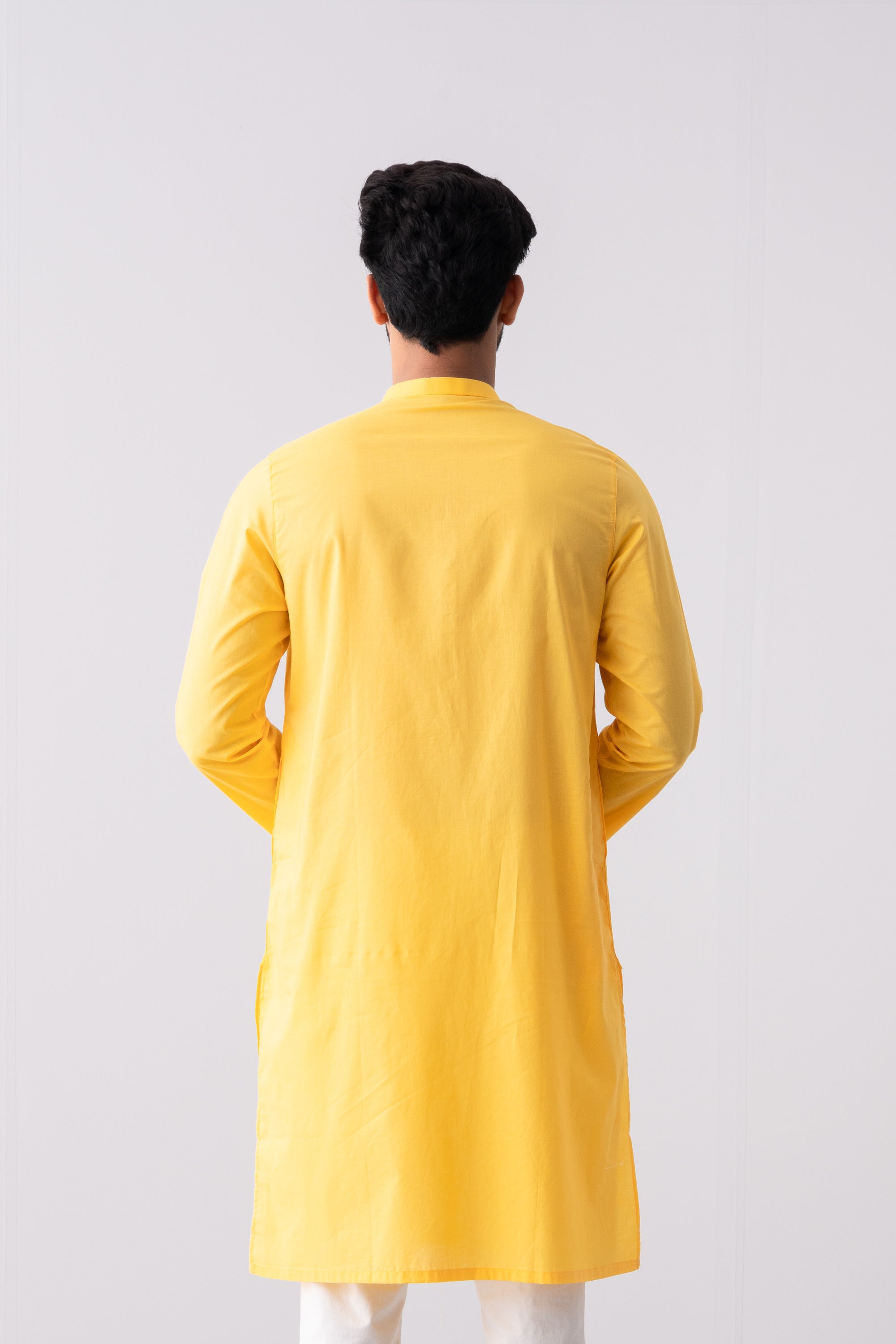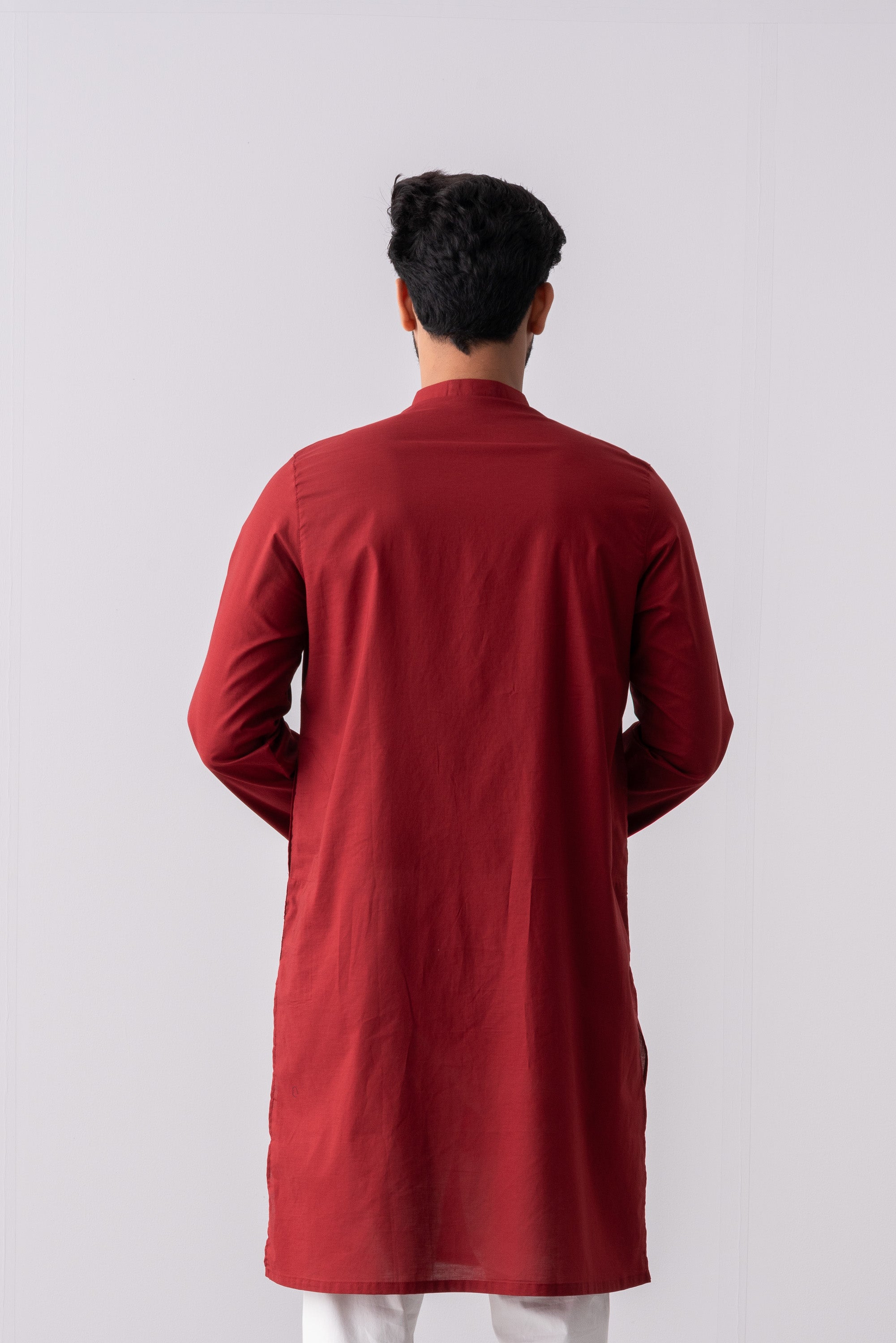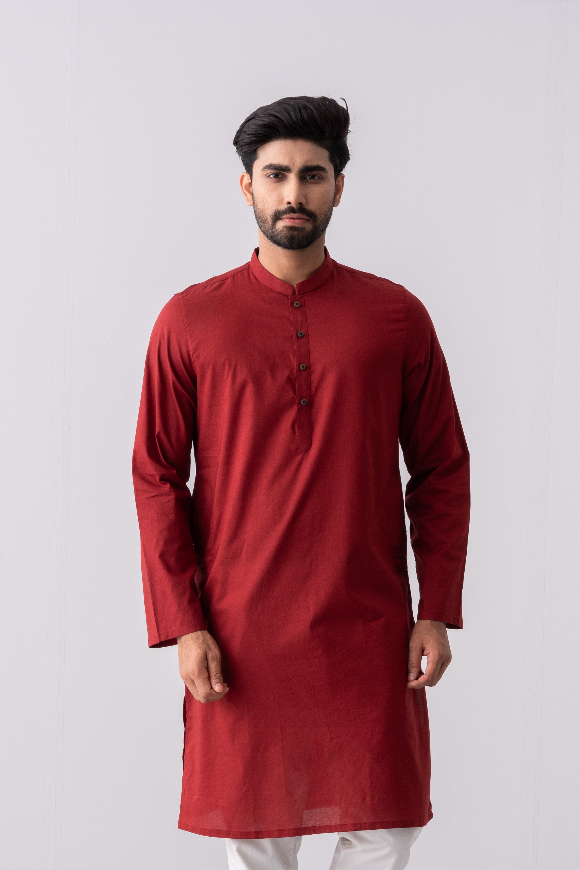 A regular-fit Panjabi crafted from solid dyed 100% cotton fabric with contrast details on the band and placket offers a stylish yet comfortable daily wear look. This design combines comfort and subtle elegance, making it ideal for a refined and stylish appearance.
