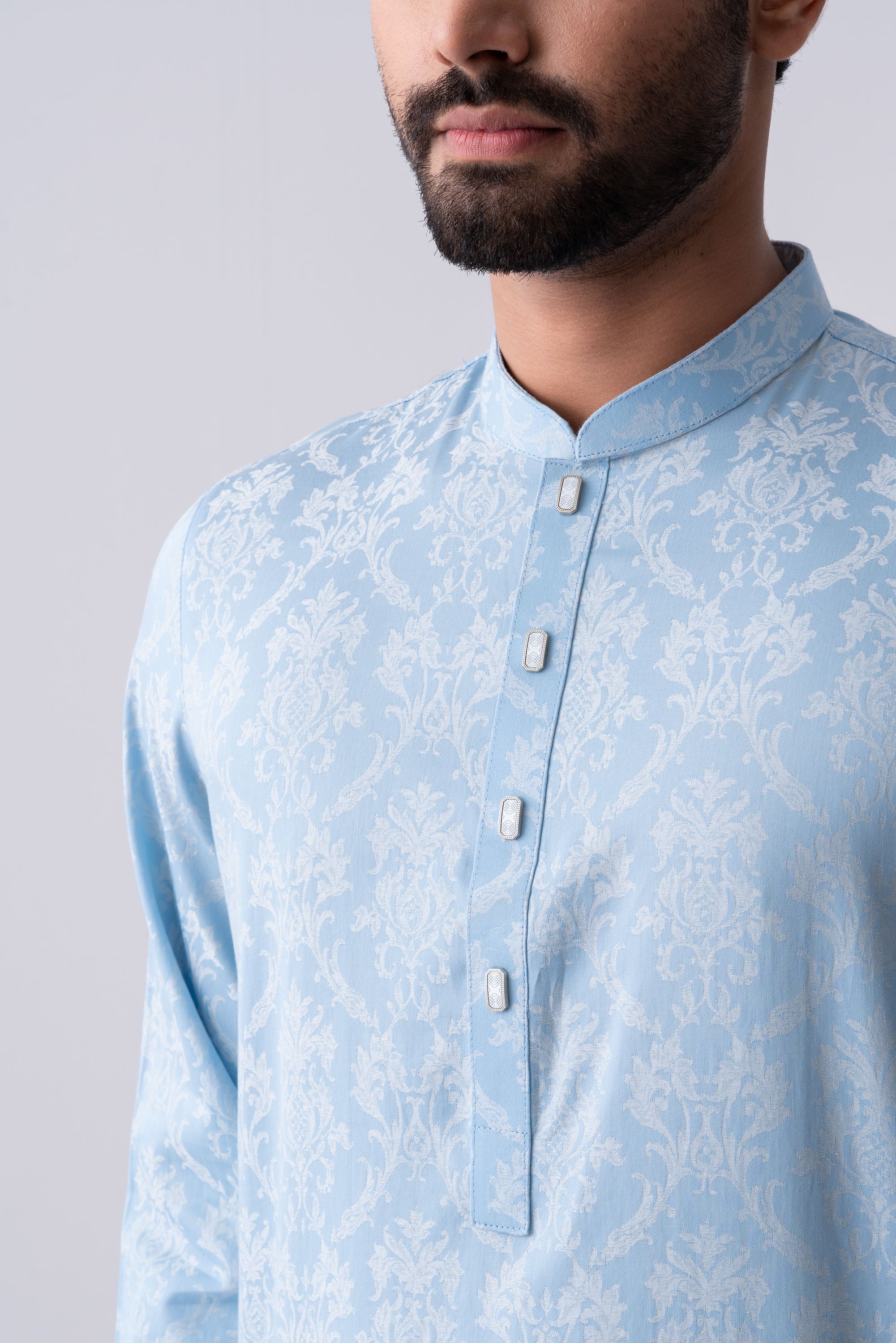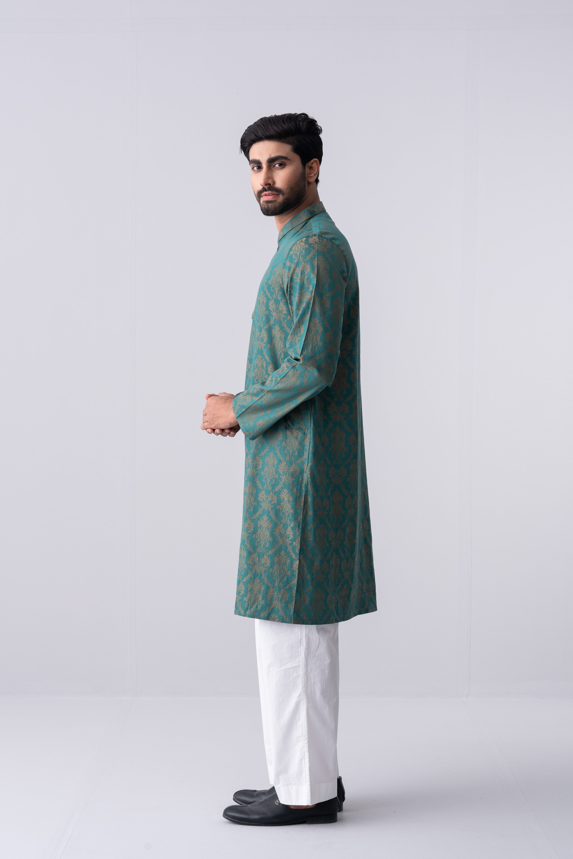 A regular-fit Panjabi crafted from jacquard fabric with 100% cotton breathable fabric, featuring decorative snap buttons, offers a stylish yet comfortable semi-formal look. Perfect for effortless elegance and all-day ease.