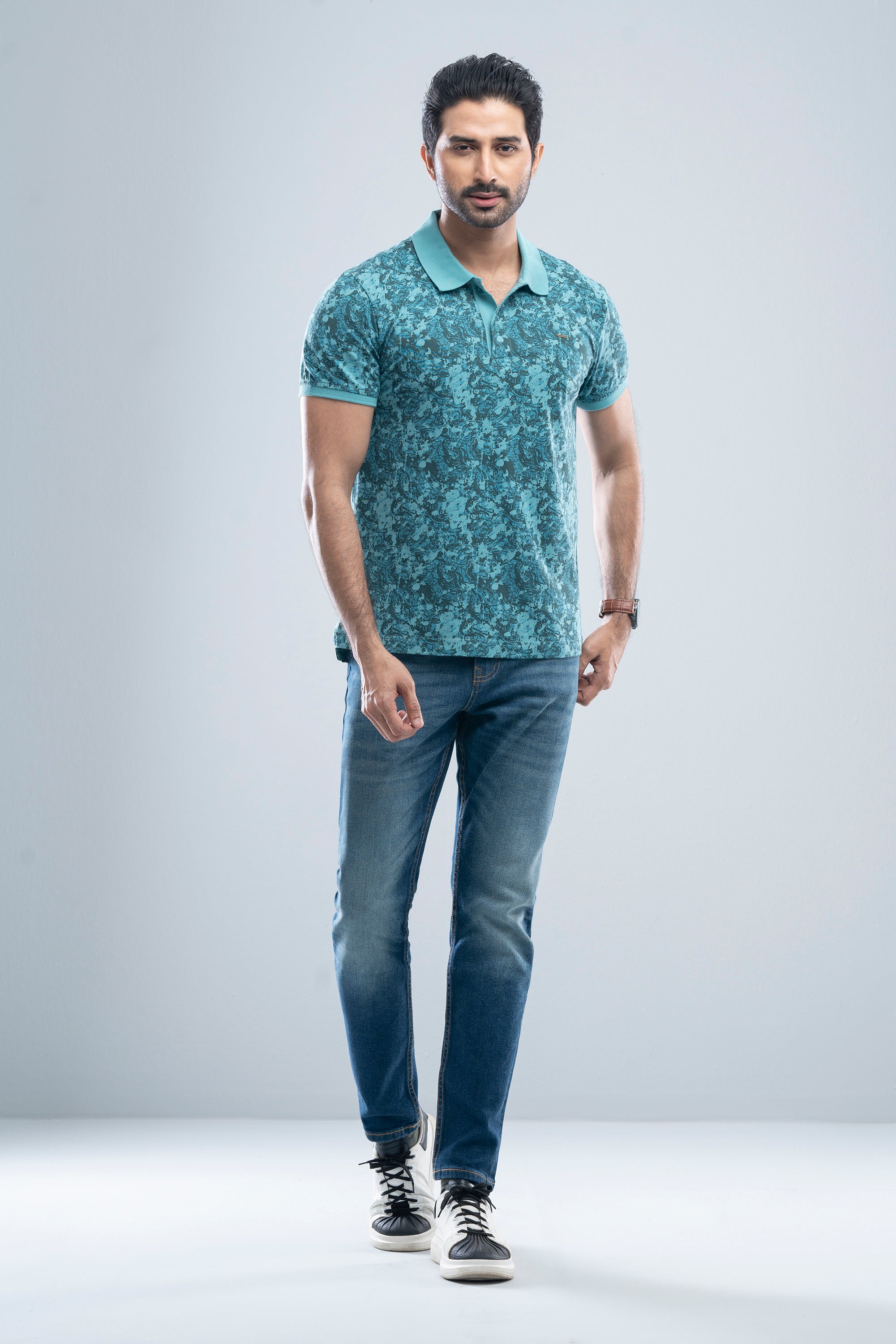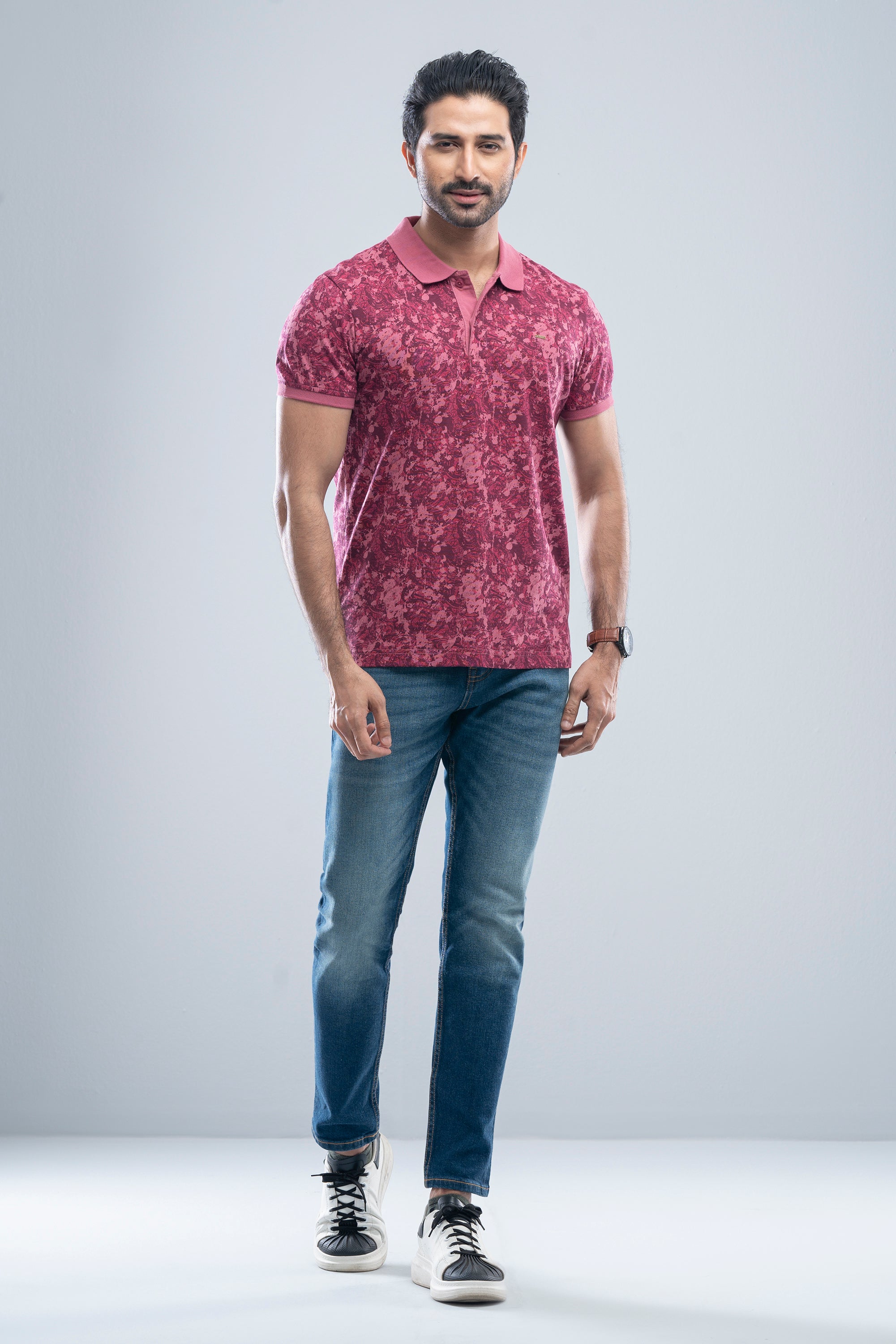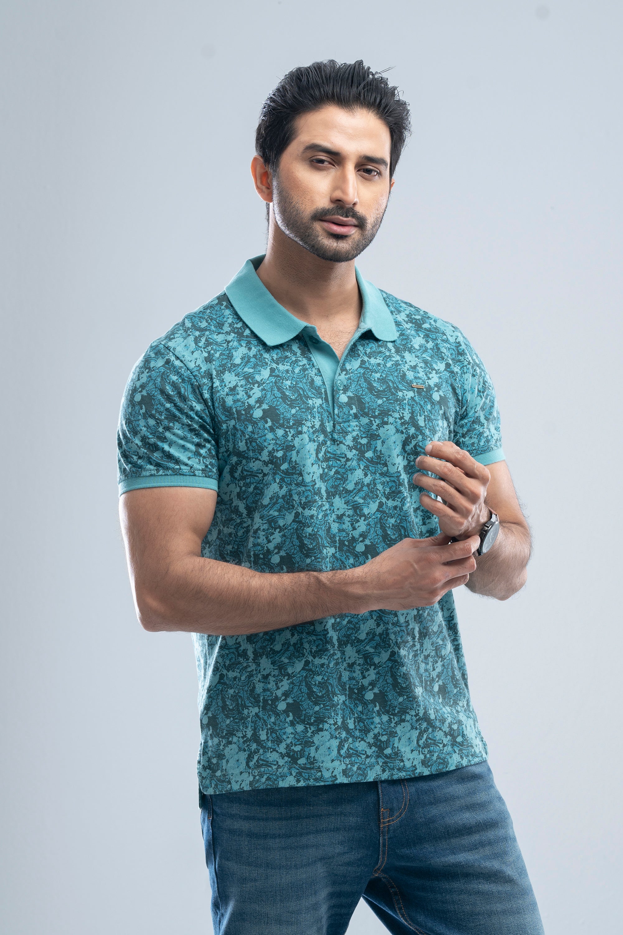 Yellow polo shirt with all over print and classic polok collar in a regular fit. A must-have for the summer - perfectly combinable to chino or jeans.