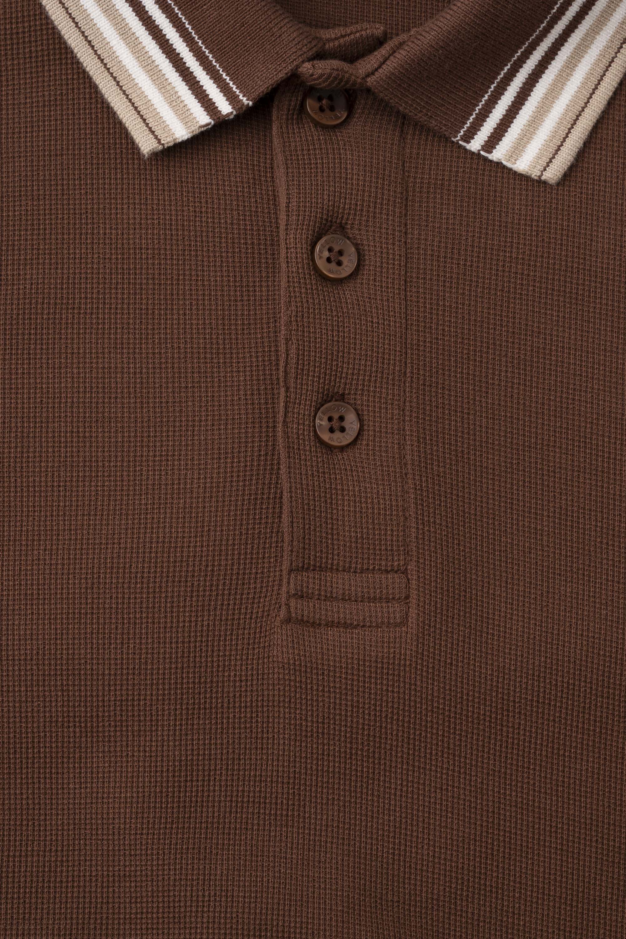 Upgrade your winterday look with this full sleeve polo shirt, made from soft and breathable cotton mini waffle fabric. The textured knit gives the shirt a cool, modern feel, while the contrast collar tipping adds a stylish touch.