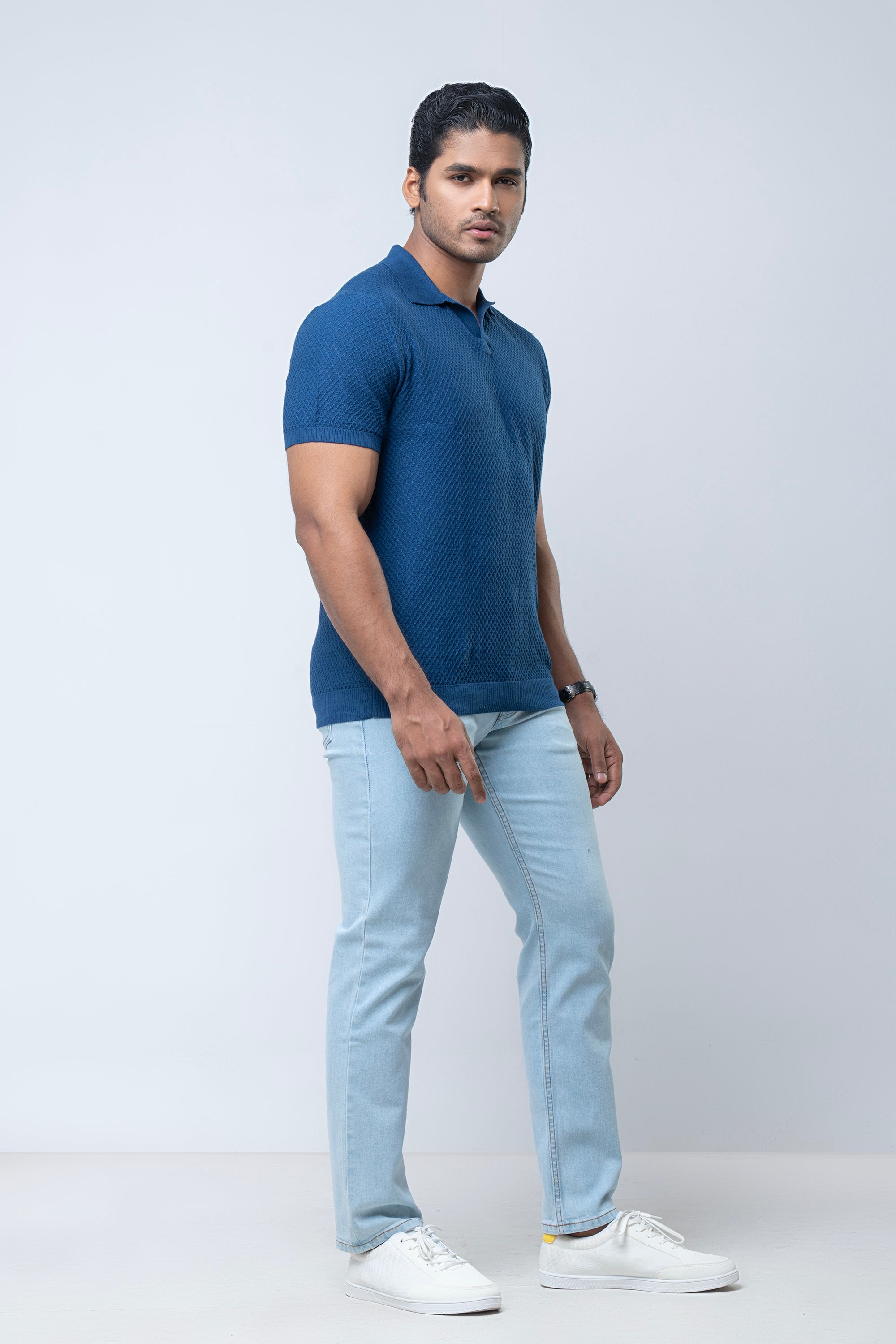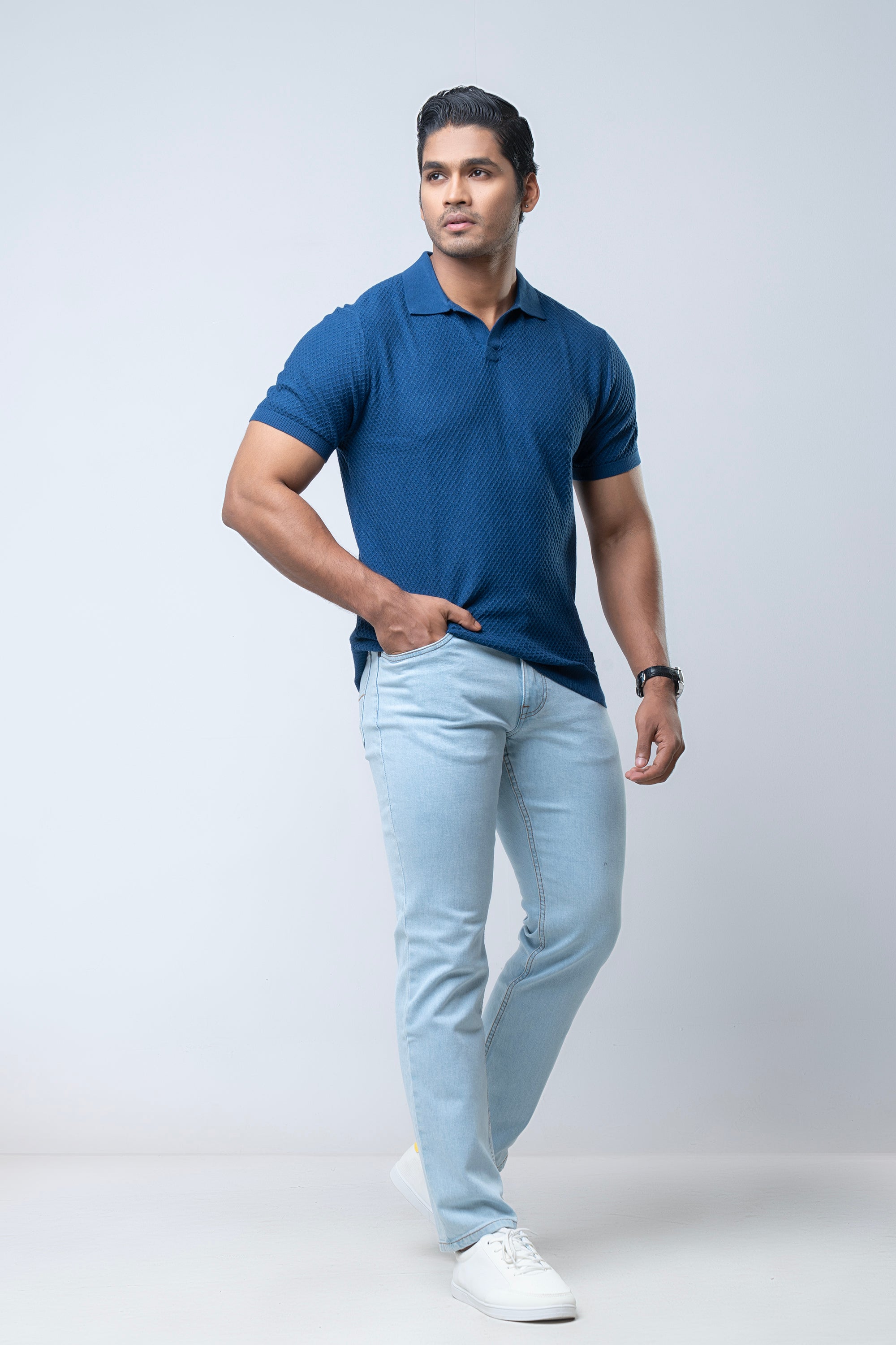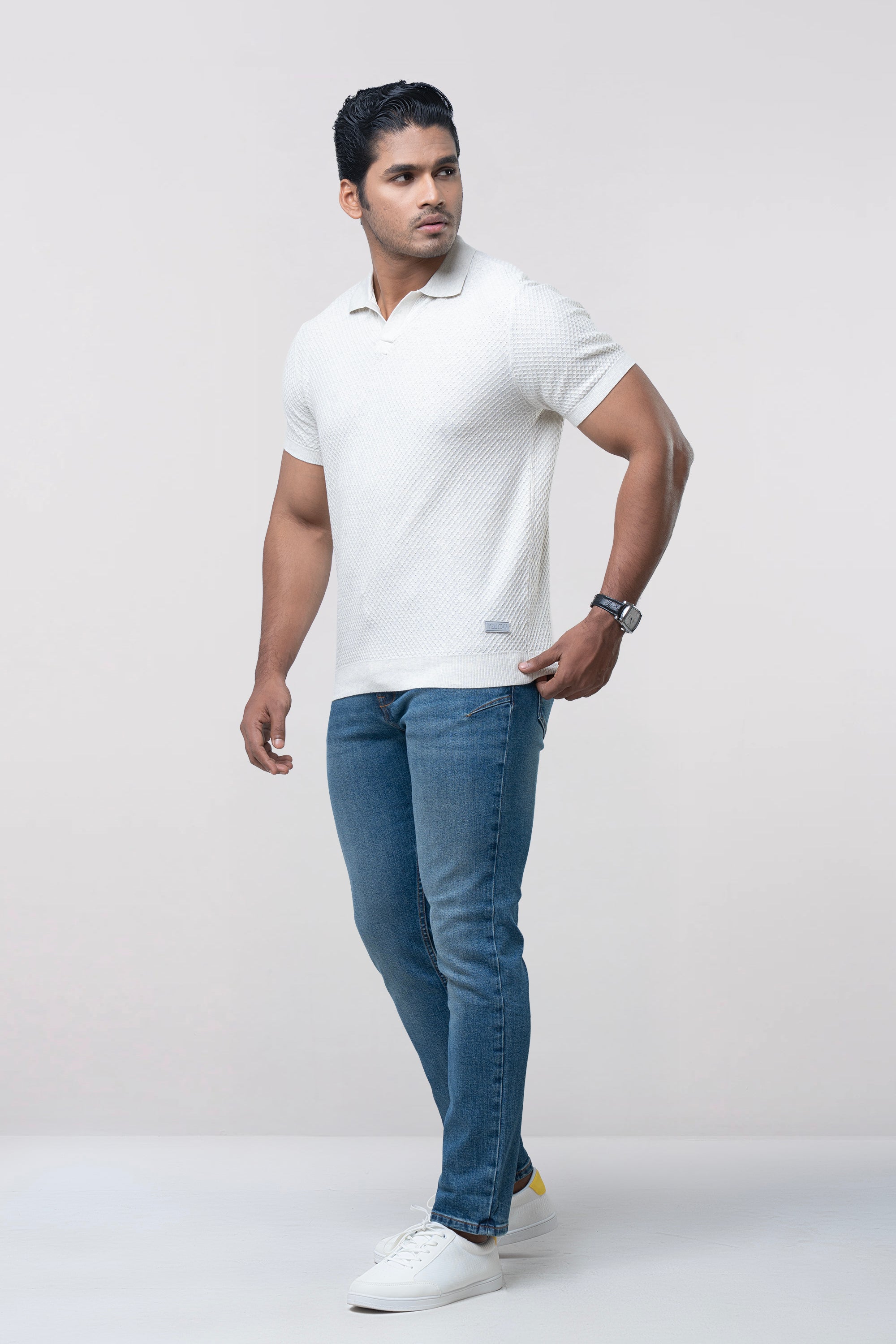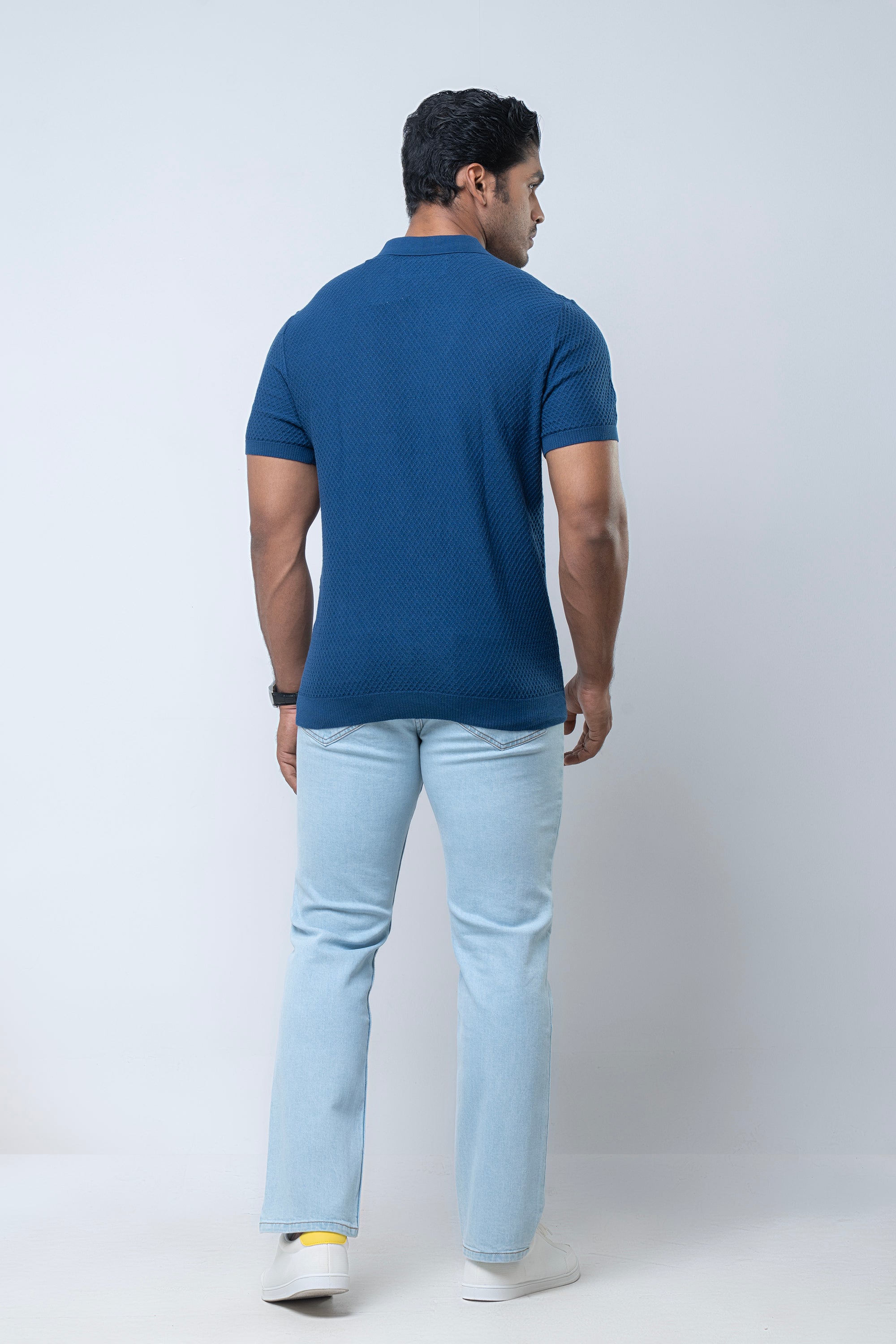 Discover refined comfort with this Men’s Sweater Polo, crafted from premium cotton jacquard knit fabric in a clean, solid-color finish. The subtle jacquard texture adds a layer of quiet sophistication, elevating the classic polo into a modern, polished essential.