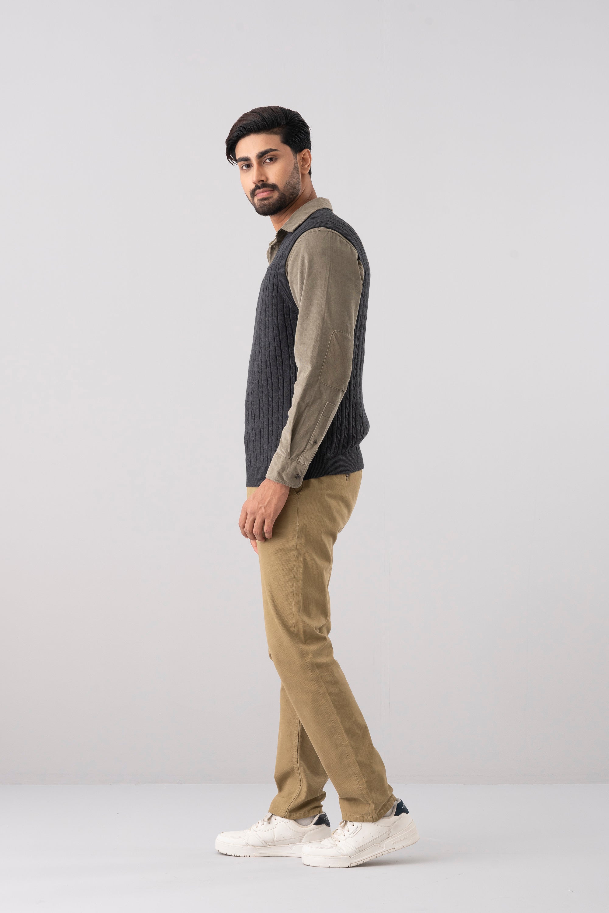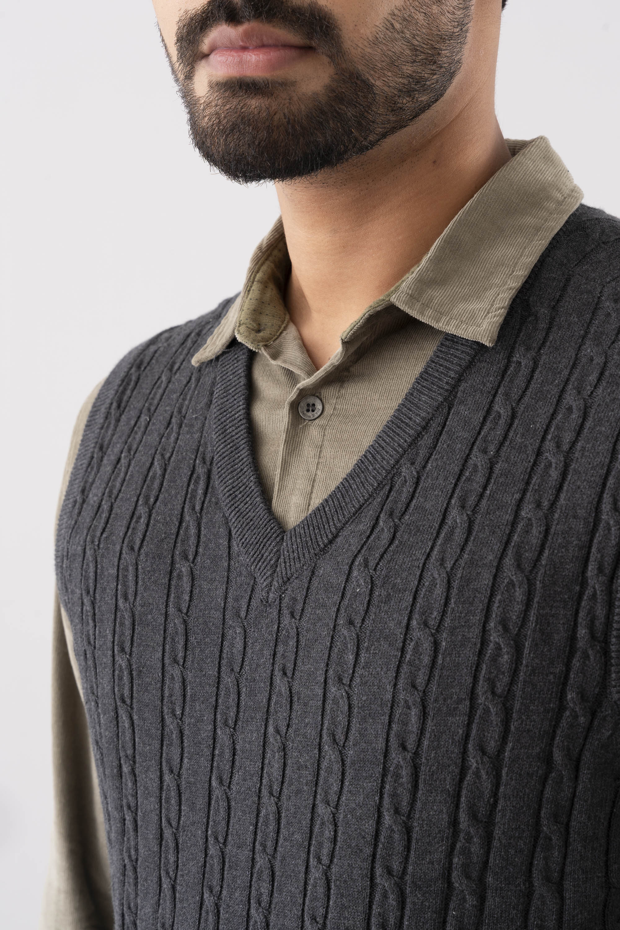 Classic meets contemporary in this men’s cable-knit sweater vest, designed to bring timeless sophistication to your wardrobe. Crafted from premium soft yarn, the intricate cable-knit texture adds depth, warmth, and refined style.