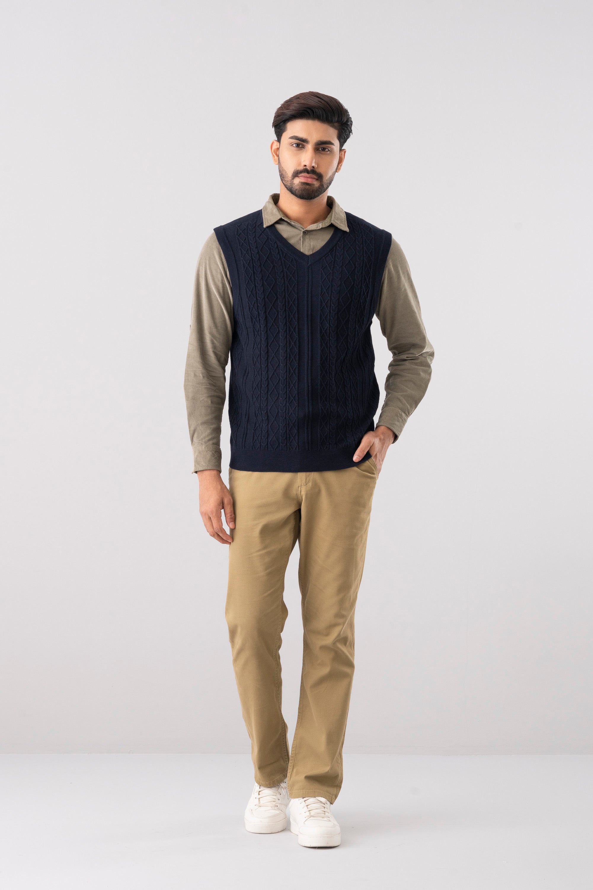 Classic meets contemporary in this men’s cable-knit sweater vest, designed to bring timeless sophistication to your wardrobe. Crafted from premium soft yarn, the intricate cable-knit texture adds depth, warmth, and refined style.
