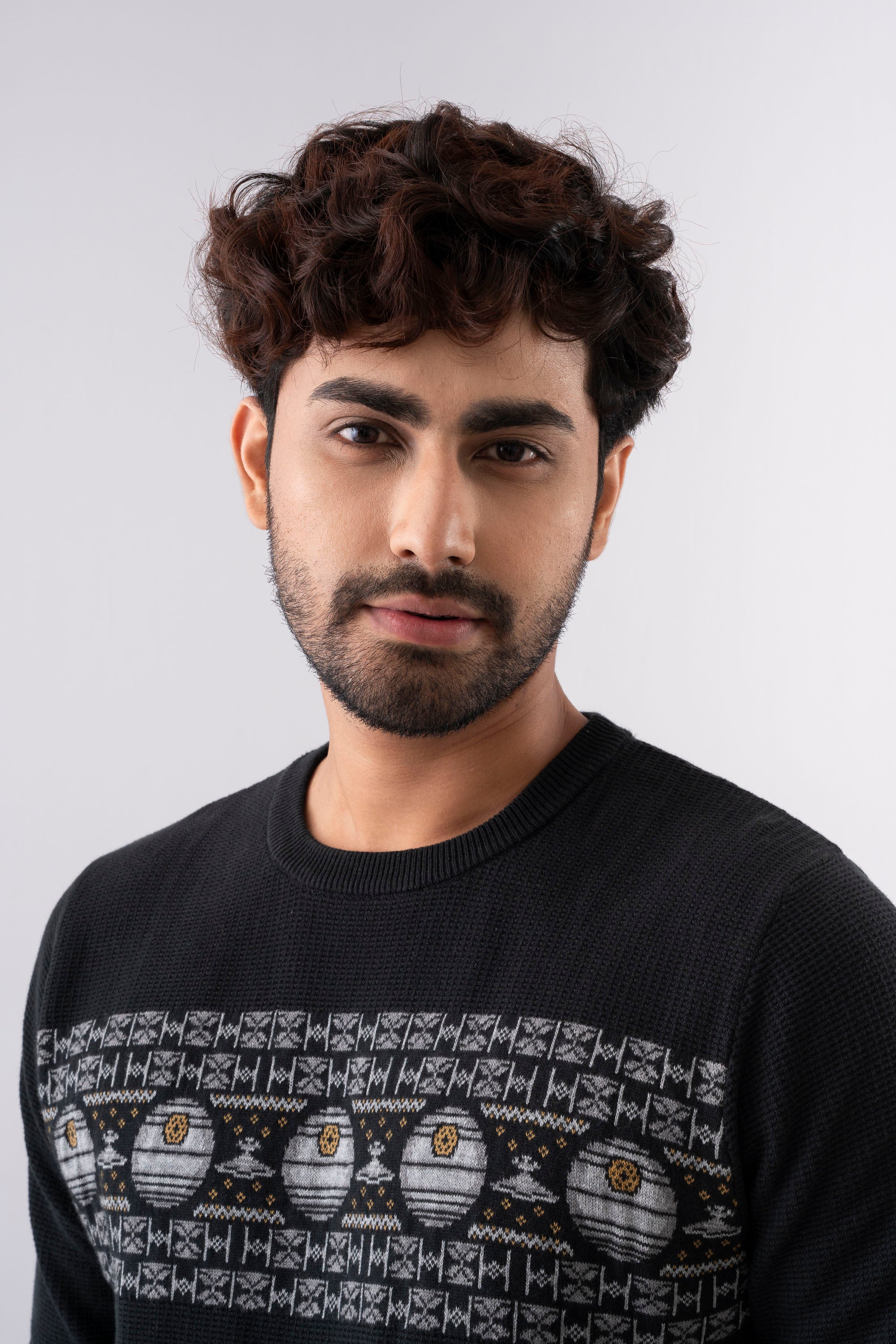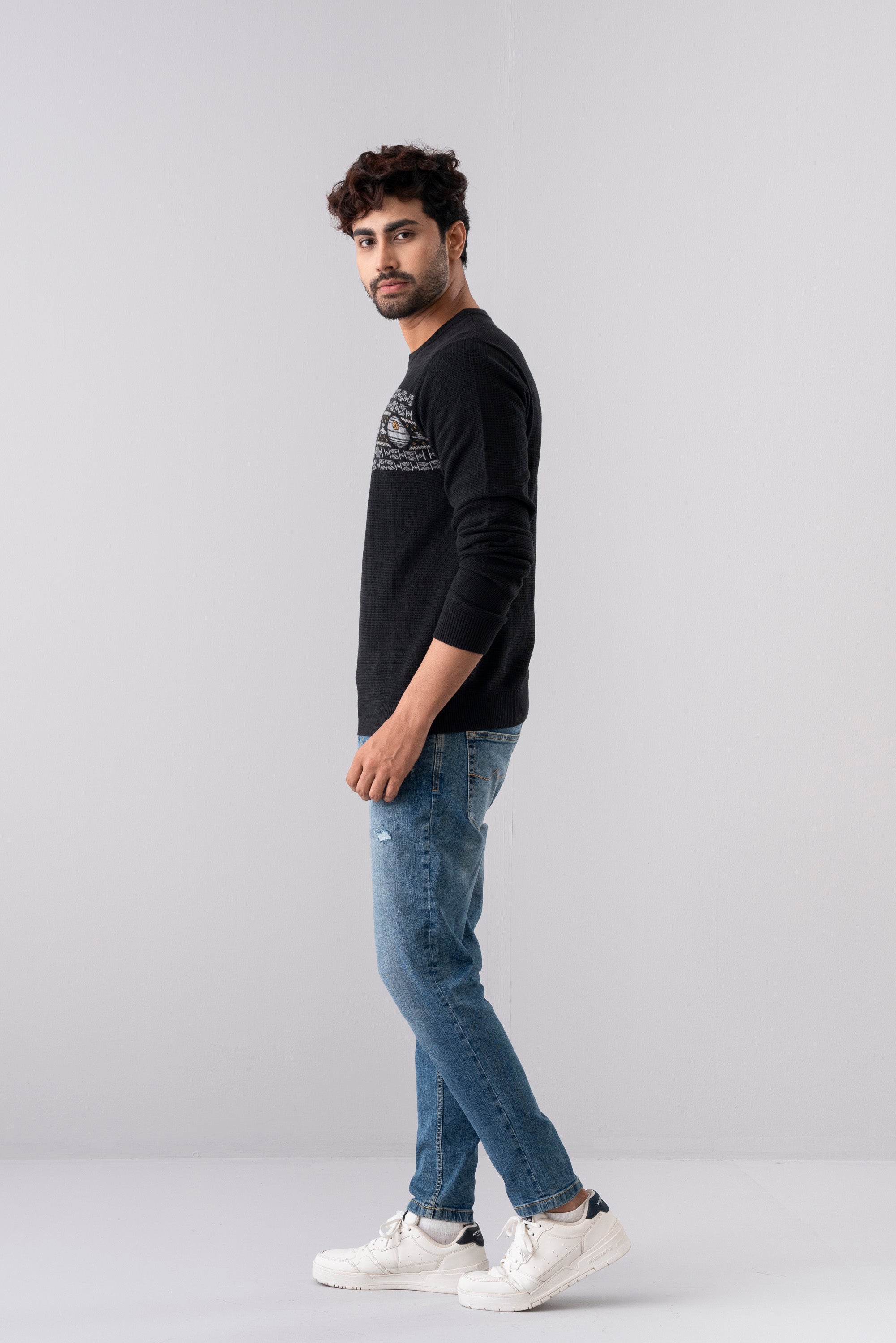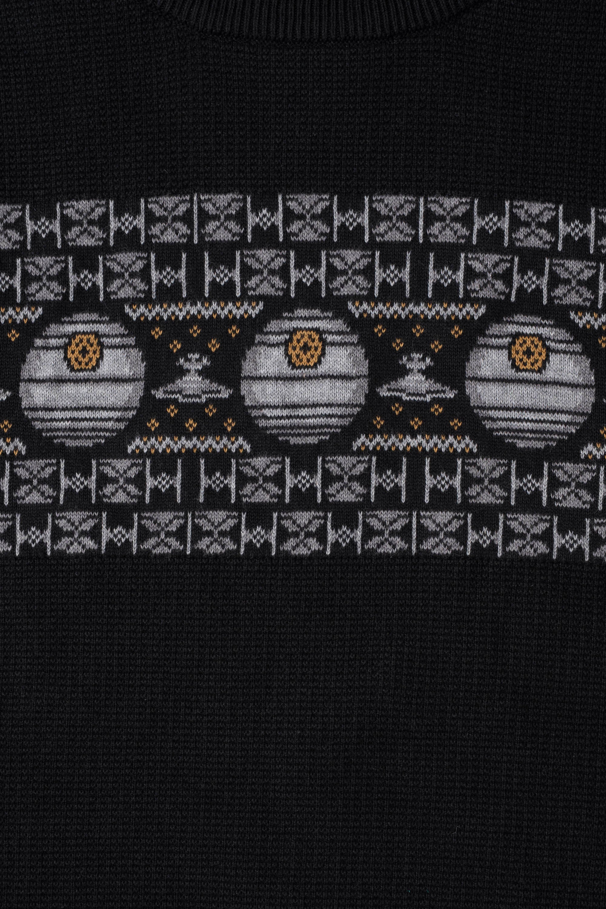 Show your fandom in style with this Star Wars motif sweater, made from 100% soft cotton yarn. The yarn-dyed knit keeps the colors looking fresh, while the regular fit makes it easy and comfortable for winter wear.