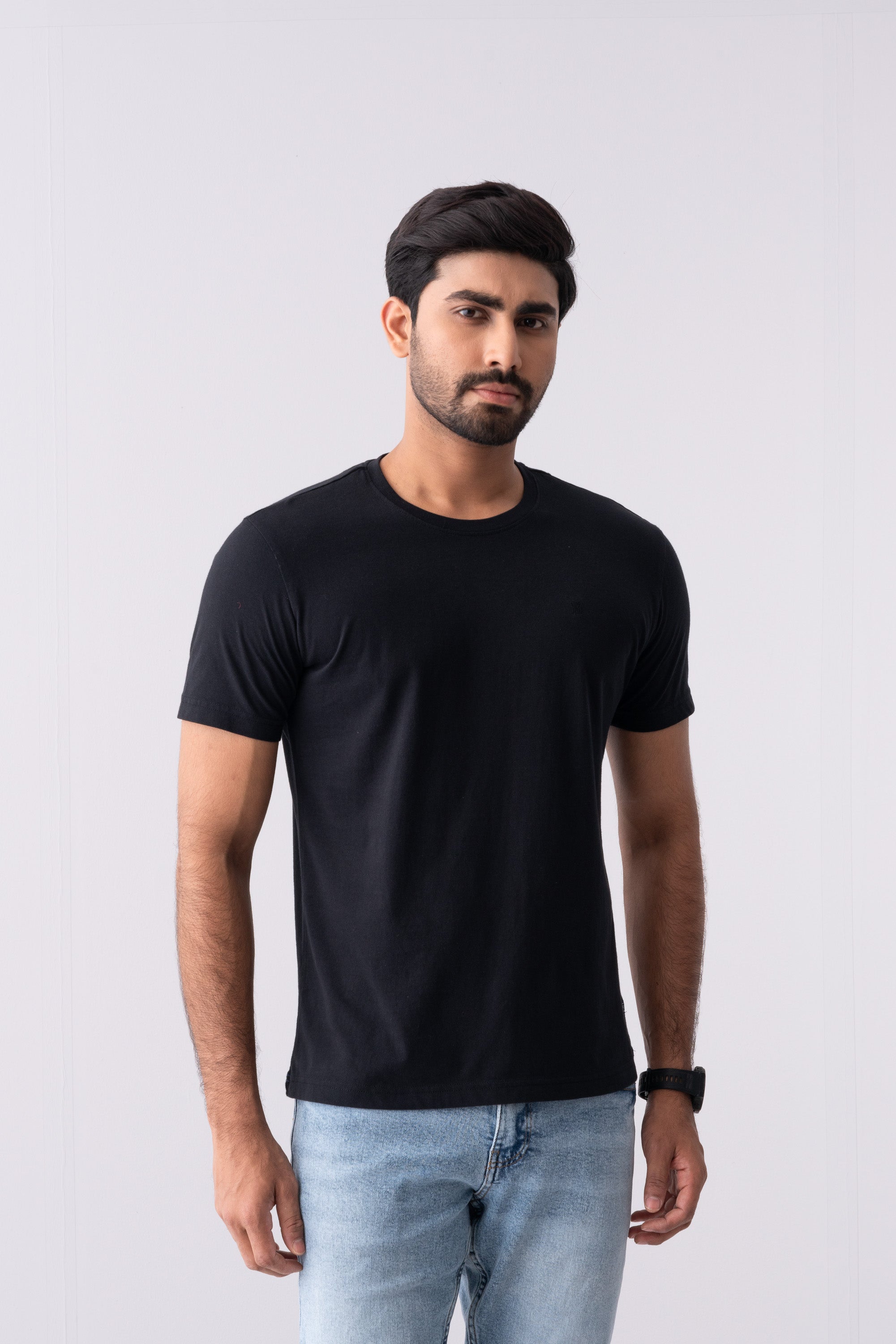 Stay comfortable and stylish with our Basic Solid Men's T-Shirt, designed for everyday wear. Crafted from soft, breathable cotton, this t-shirt offers a regular fit with crew neck short sleeves that ensure all-day comfort. The classic solid color makes it versatile, easily pairing with jeans, shorts, or casual pants for a timeless look. A little embellishment has been added at left chest of the brand logo. Brand label and contrast bartack added at the bottom for more detailing.