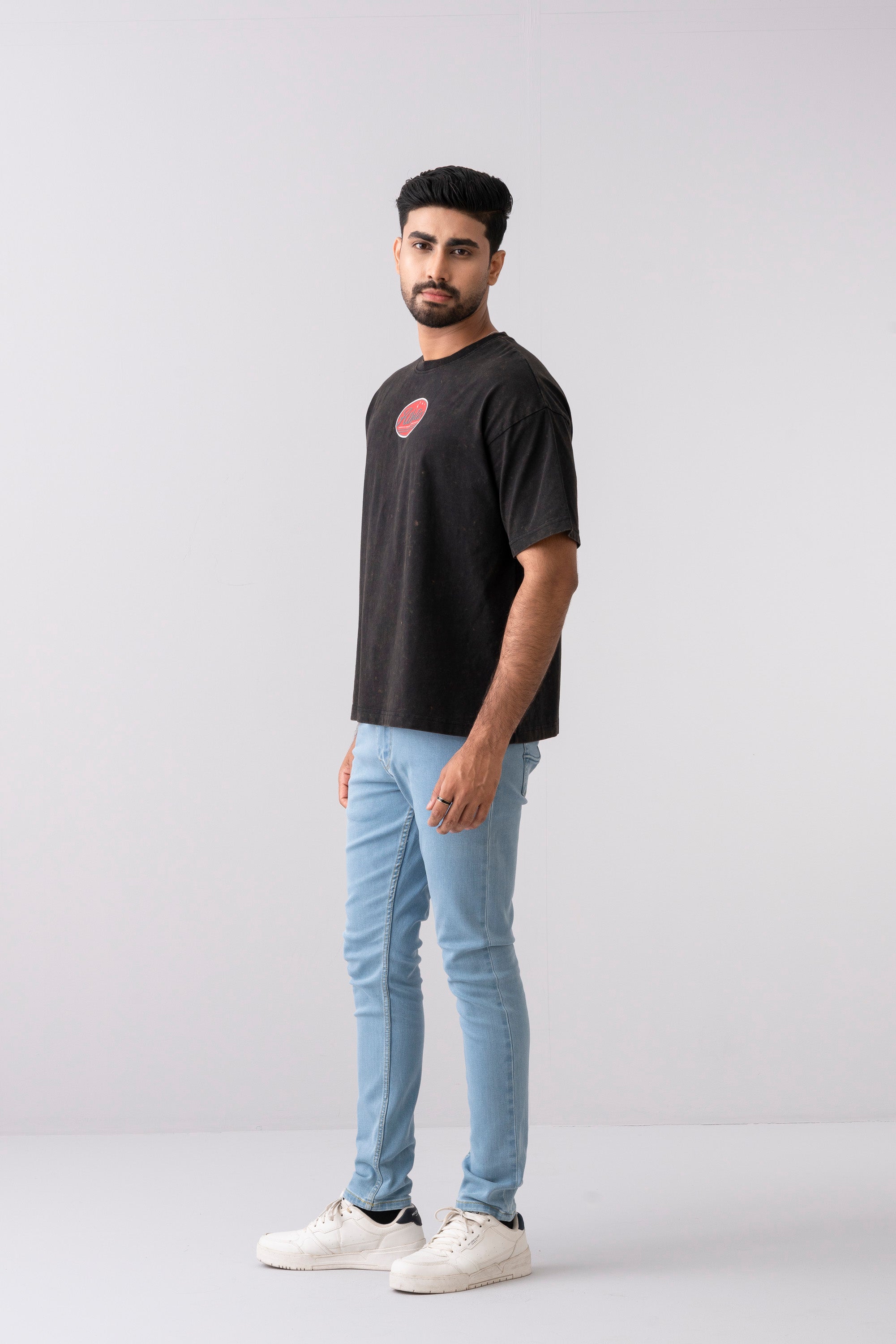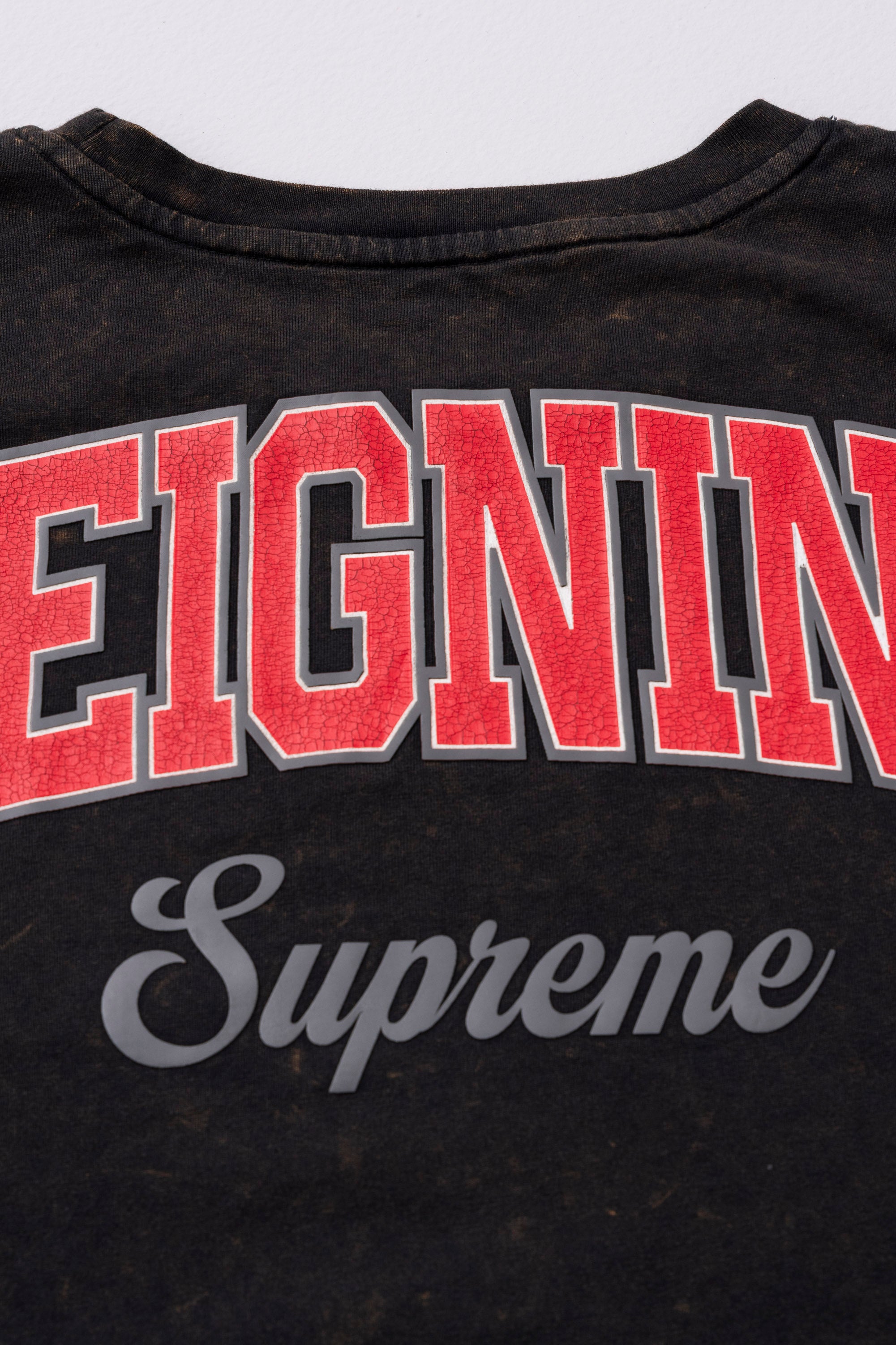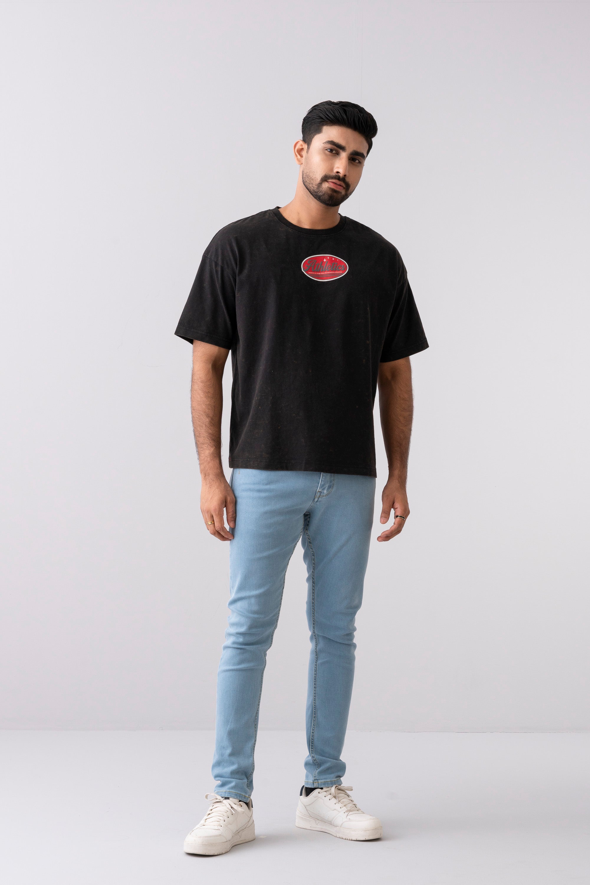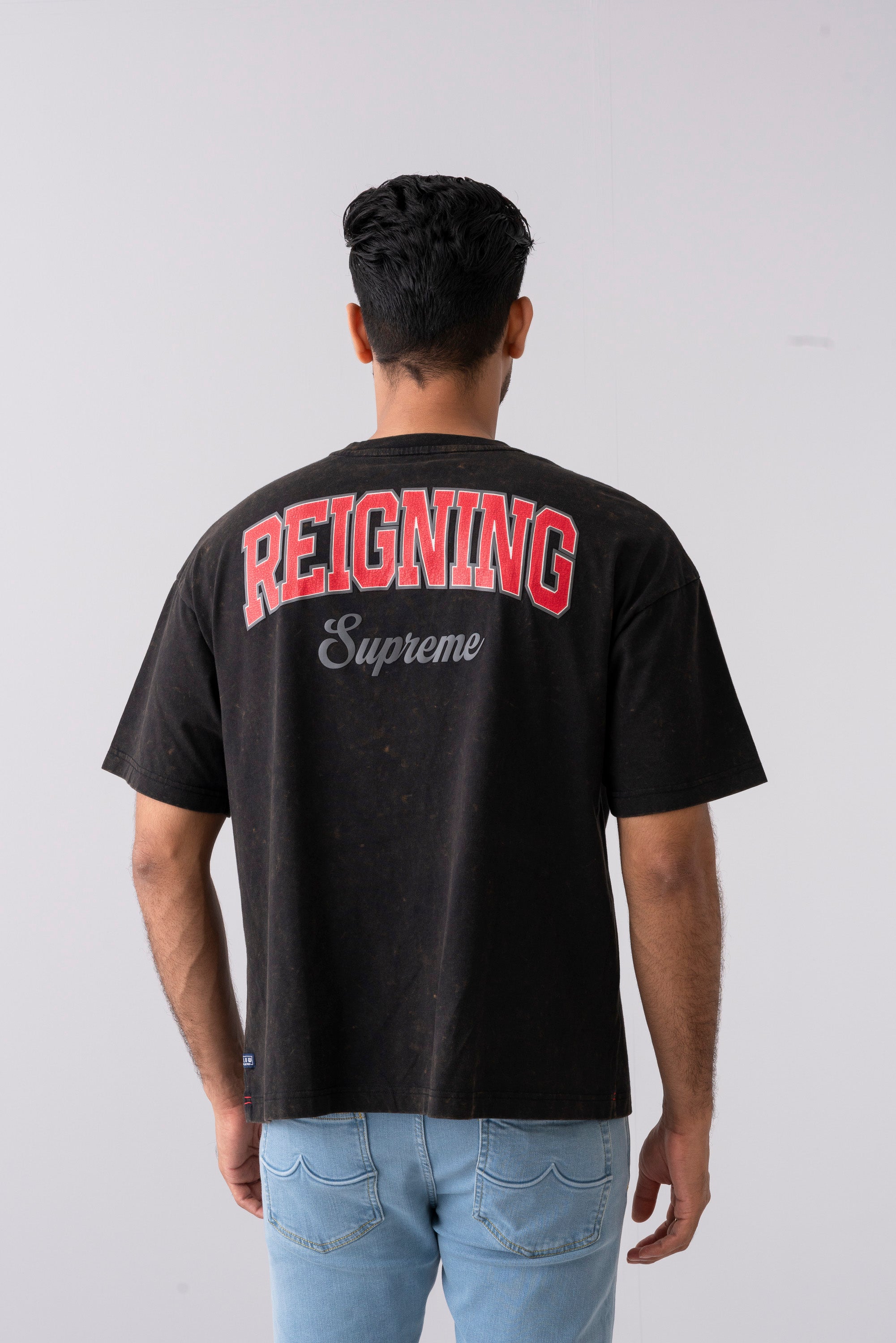 Herewith a bold statement of a striking cracked pattern print at front and back & vintage wash that adds texture and visual interest, this shirt exudes an urban, rebellious vibe. Crafted from soft, high-quality cotton. The high fashion oversized-fit silhouette and classic crew-neck design keep it rocking a casual, street-style look. Ideal for those who appreciate unconventional style.