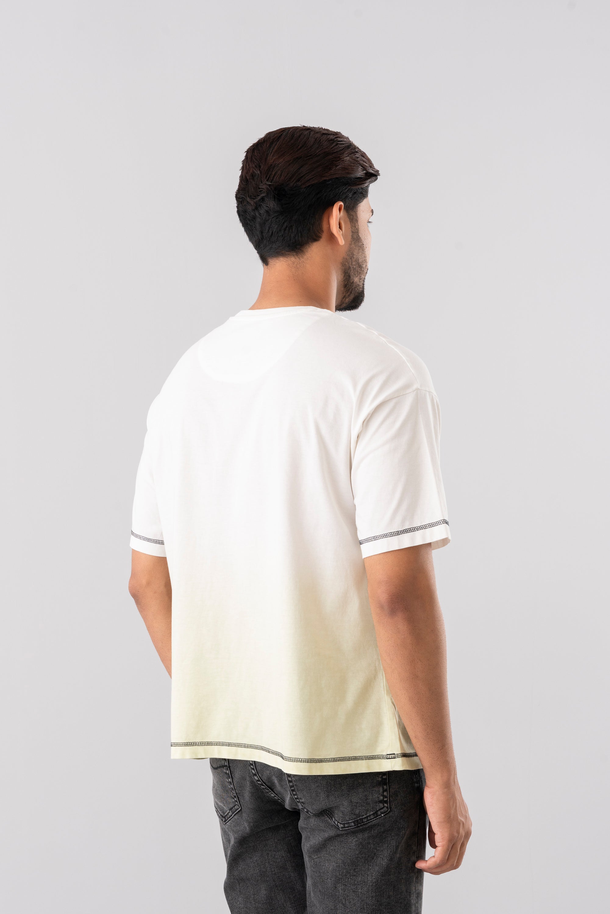 Elevate everyday look with the Crafted Ombre Men's T-shirt, where style meets sophistication. This shirt features an ombre effect that blends rich colors seamlessly, creating a bold yet refined statement through detailing stitching. Made from soft cotton fabric, which offers a regular-fit cut, crew neck, and short sleeves. Also, classy placement print on the front chest. Brand label and bartack added at the bottom for more detailing.