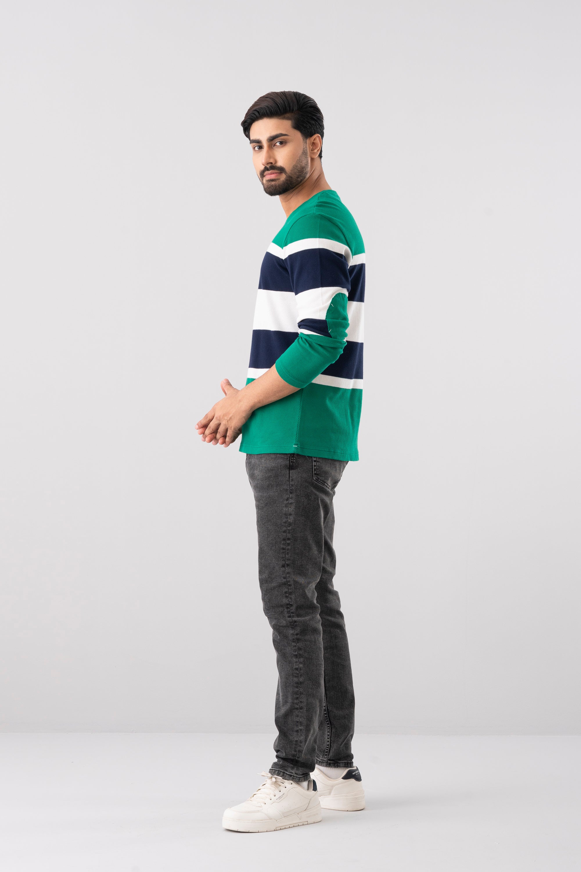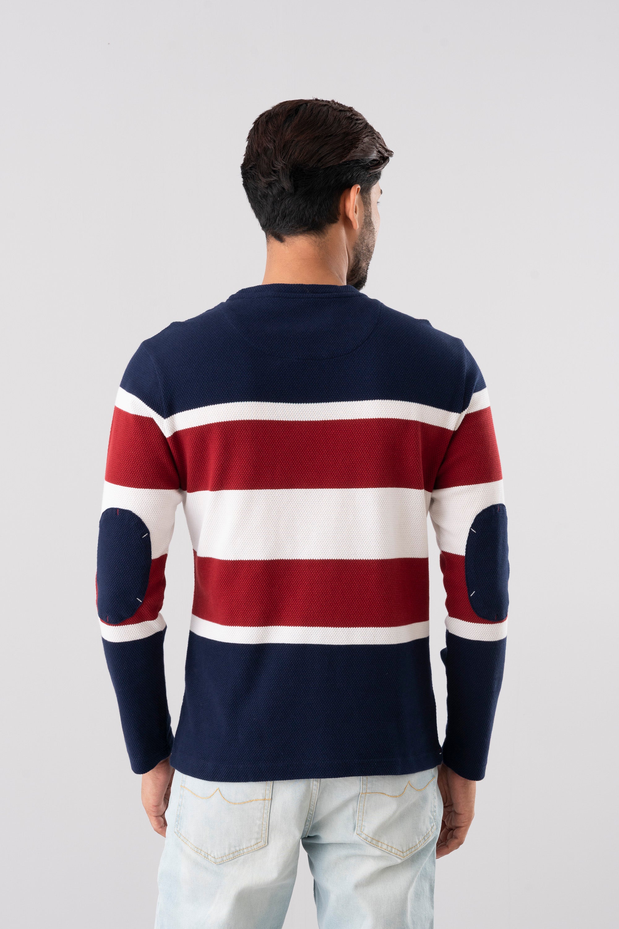 Stay cool and stylish with this engineered stripe T-shirt, made from soft cotton honeycomb fabric for a comfortable, textured feel. The structured knit keeps you breathable while adding a modern twist to a classic striped look. Perfect for any casual occasion, this tee pairs easily with jeans, shorts, or chinos