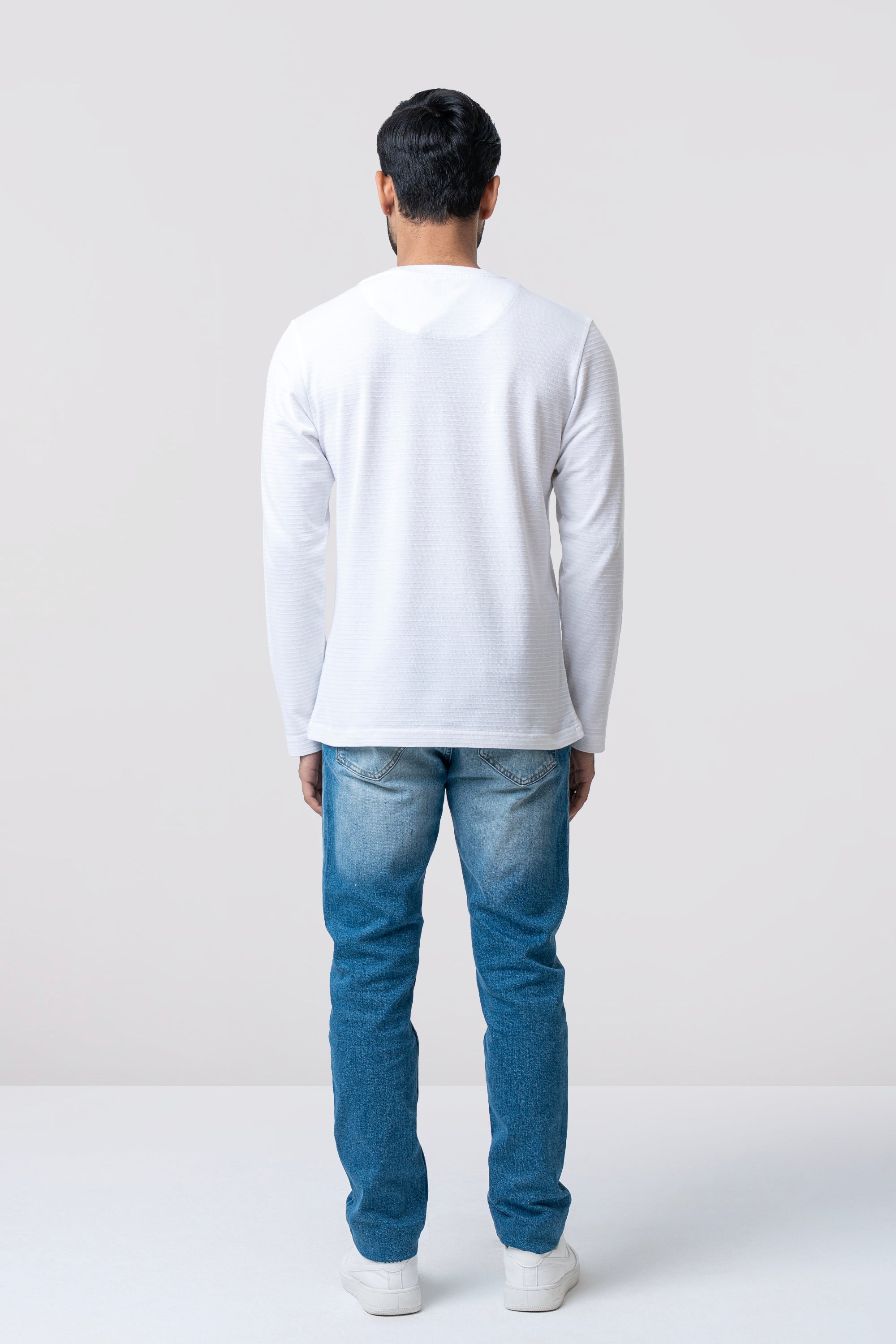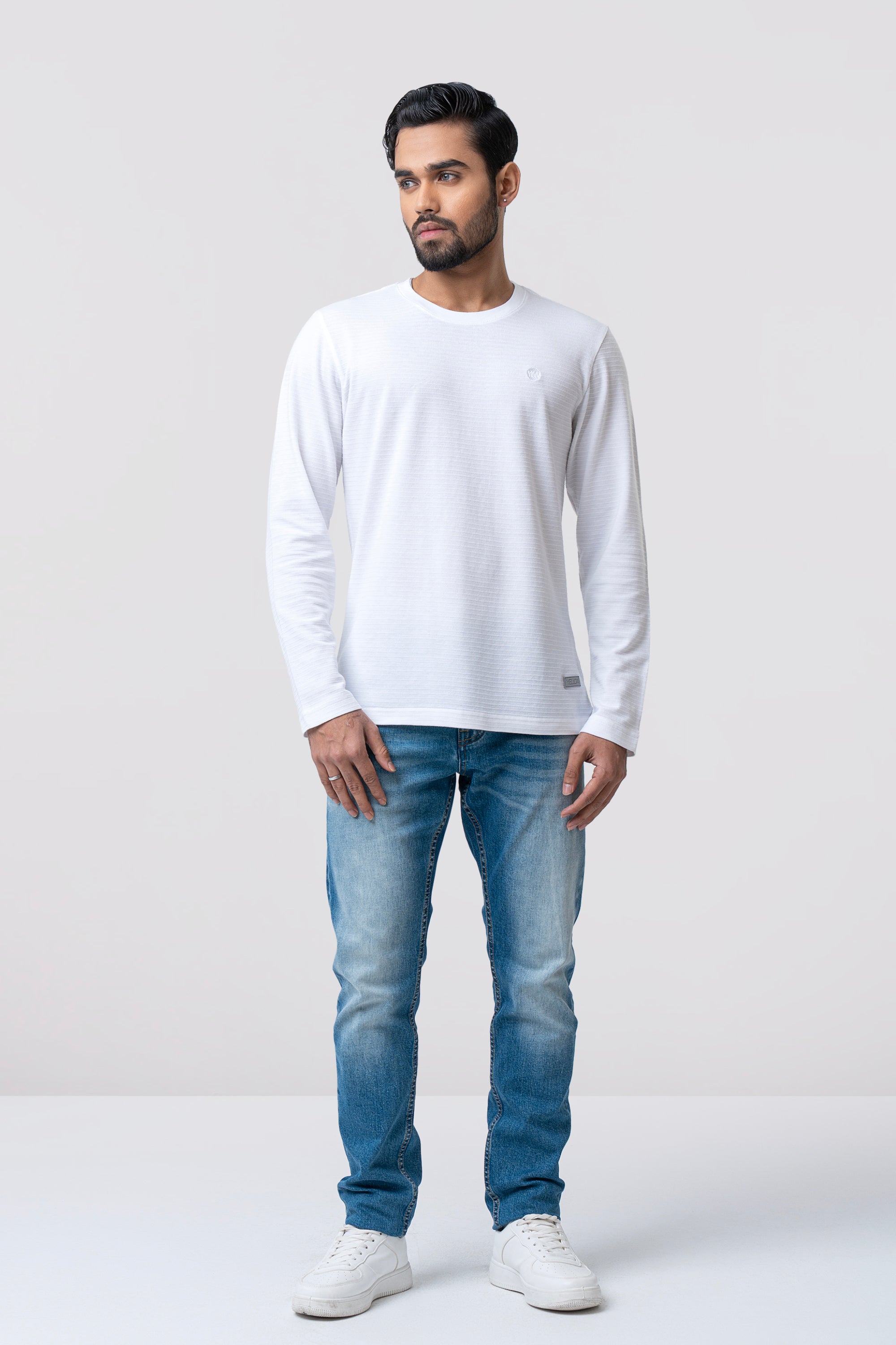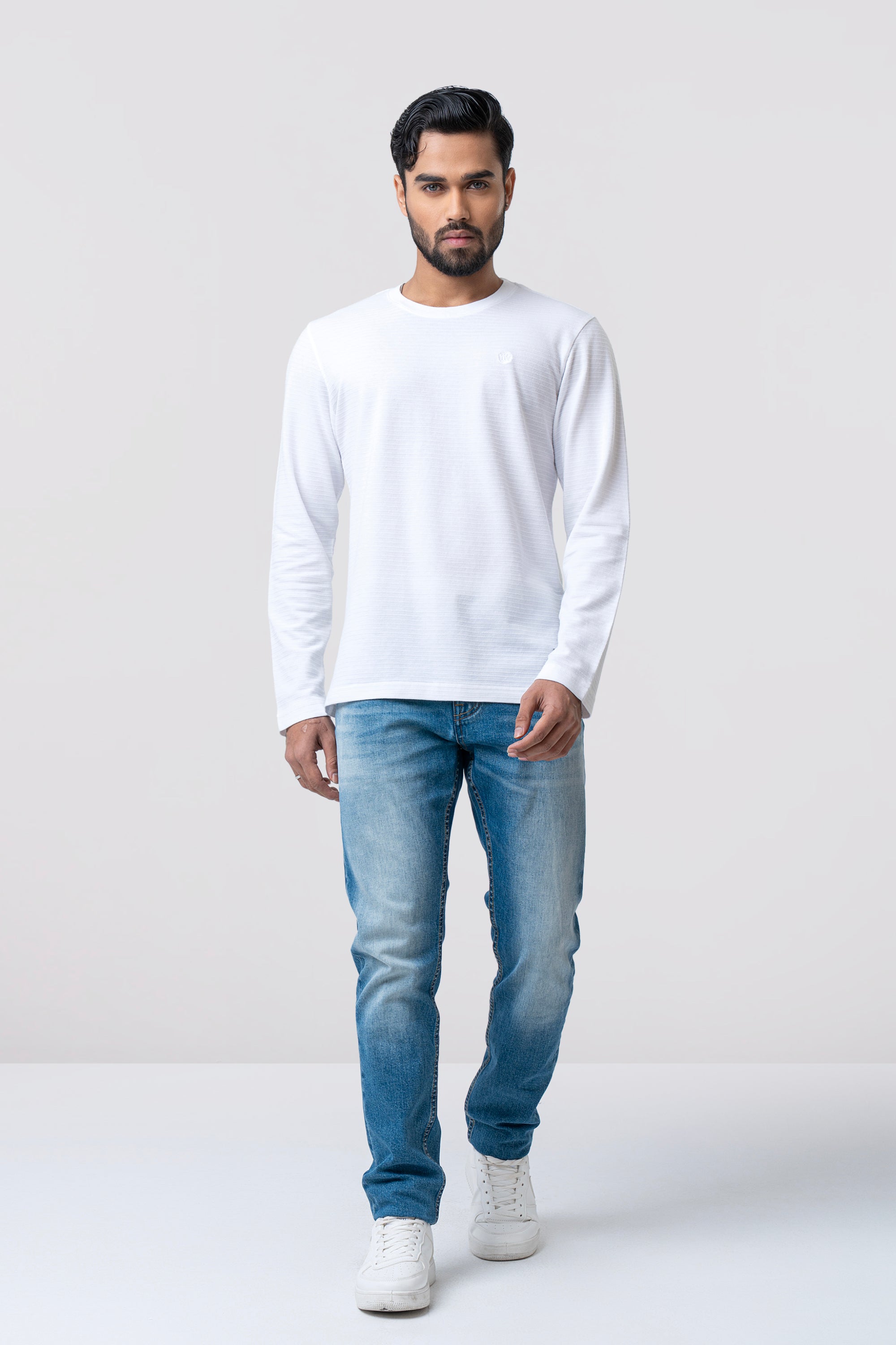 Defined by texture and timeless appeal, this long-sleeve T-shirt is crafted from Ottoman pique stripe structured fabric for a refined yet relaxed look. The raised stripe construction adds depth and character, while the breathable knit ensures lasting comfort throughout the day. Subtle shoulder detailing and a minimal chest logo add a quiet signature touch. Designed with a clean crew neckline and a streamlined silhouette, this piece balances casual ease with a premium, elevated finish—ideal for modern everyday wear.