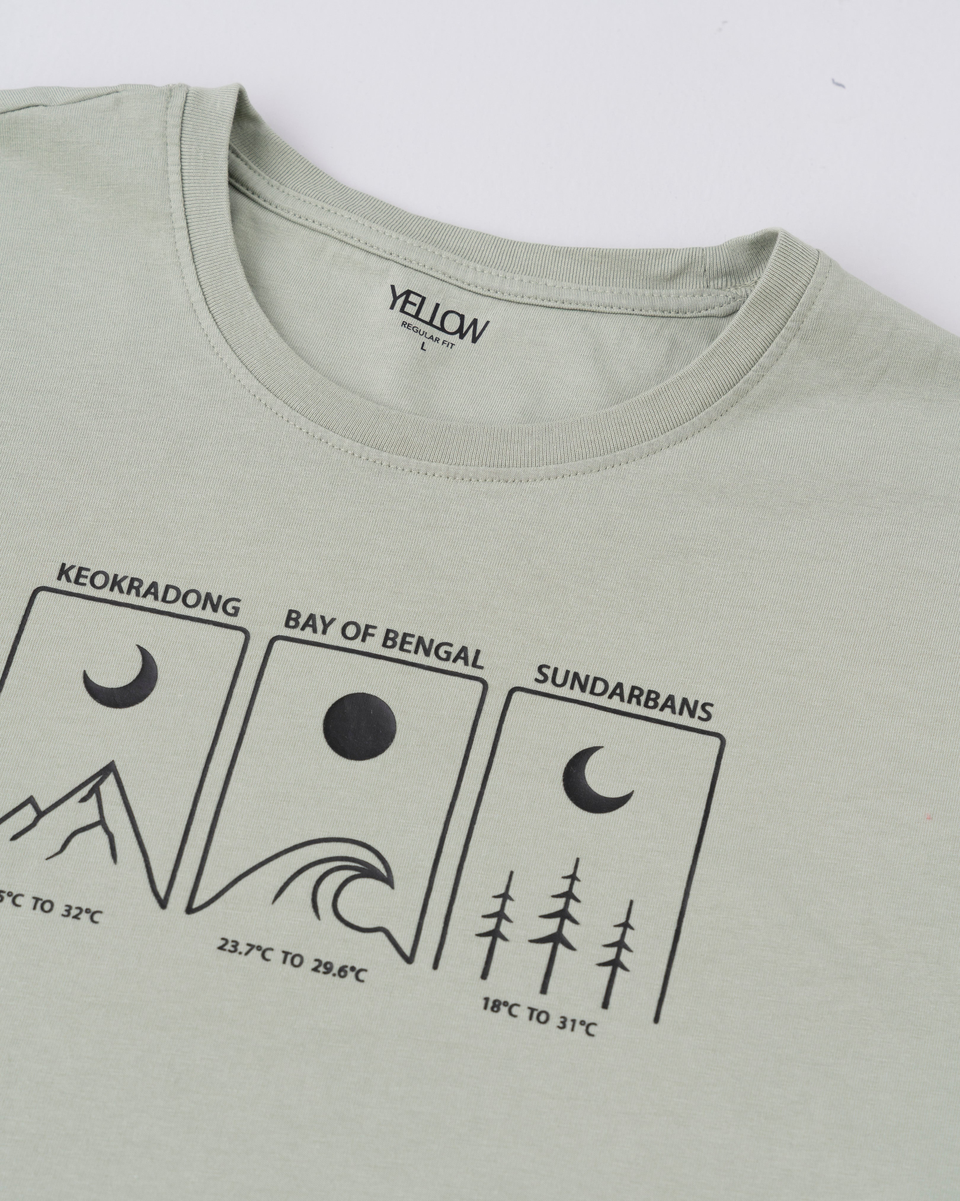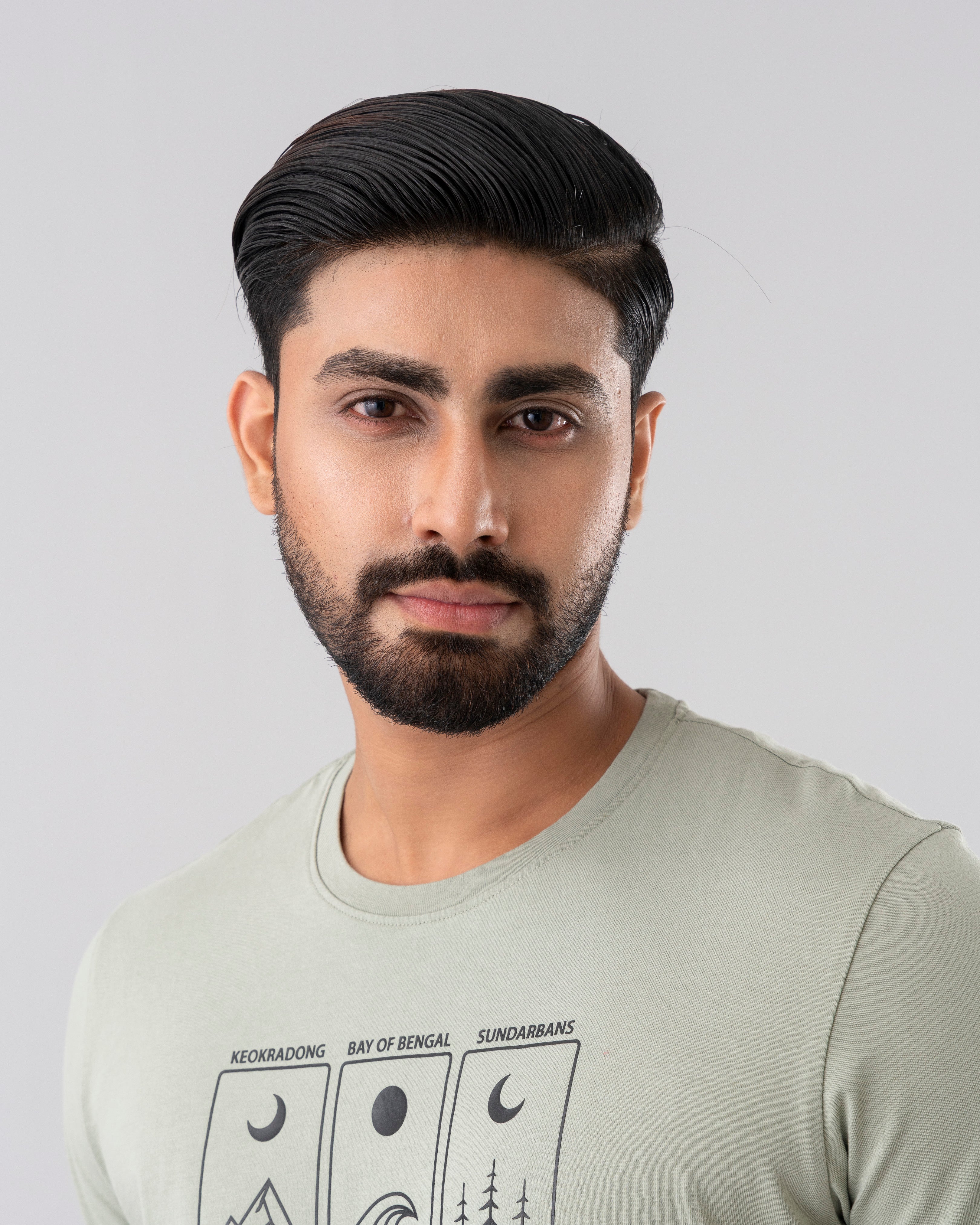 Celebrate the beauty of Bangladesh’s iconic landscapes with this stylish high-density print graphic T-shirt. Designed for both comfort and visual impact, this tee features a clean, minimalist illustration panel highlighting three remarkable natural locations: Keokradong, Bay of Bengal, and Sundarbans. Made for daily wear on muted sage tone with a classic crew neck and regular silhouette that suits casual outings, travel, or outdoor adventures. Contrast bar tack for more detailing.