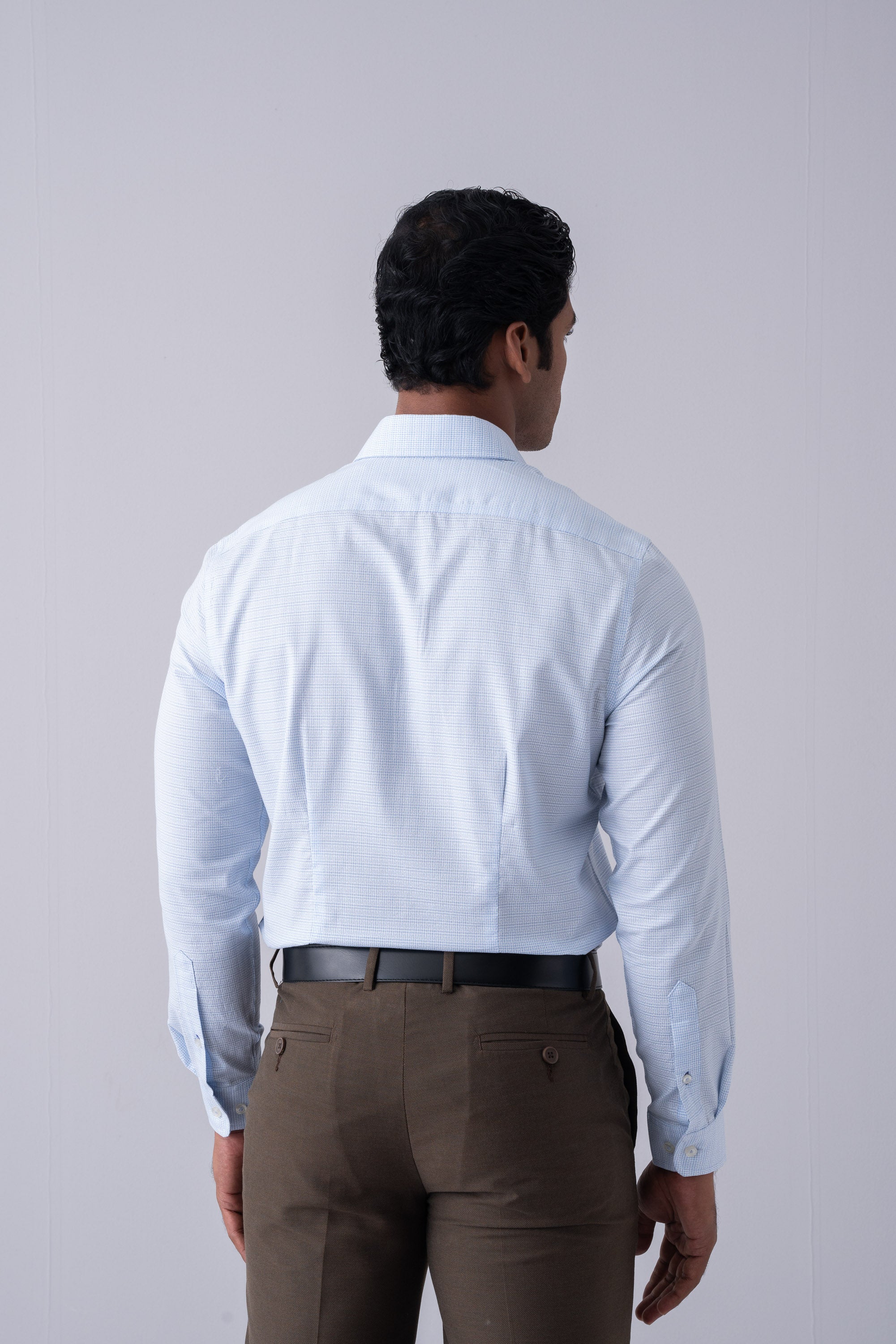 Slim Fit Dobby Check Formal Shirt combines classic elegance with modern detailing. Crafted from premium yarn in a dobby check weave, it offers a refined textured surface for a sophisticated look. The cutaway collar adds a contemporary touch, while the piping detail at the button placket enhances its stylish appeal. Designed with an easy-care finish, this shirt ensures both comfort and effortless maintenance, making it a perfect choice for formal occasions.
