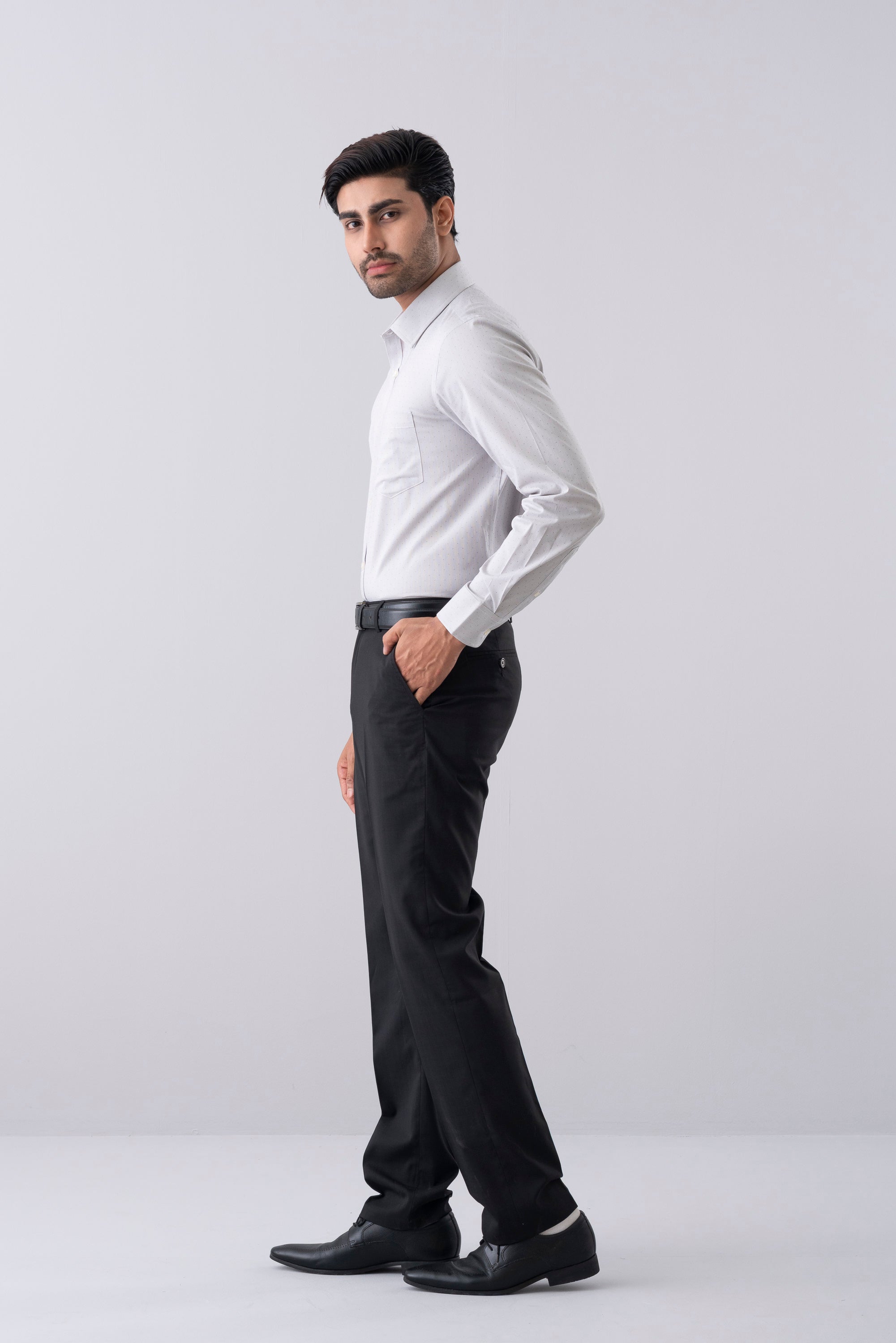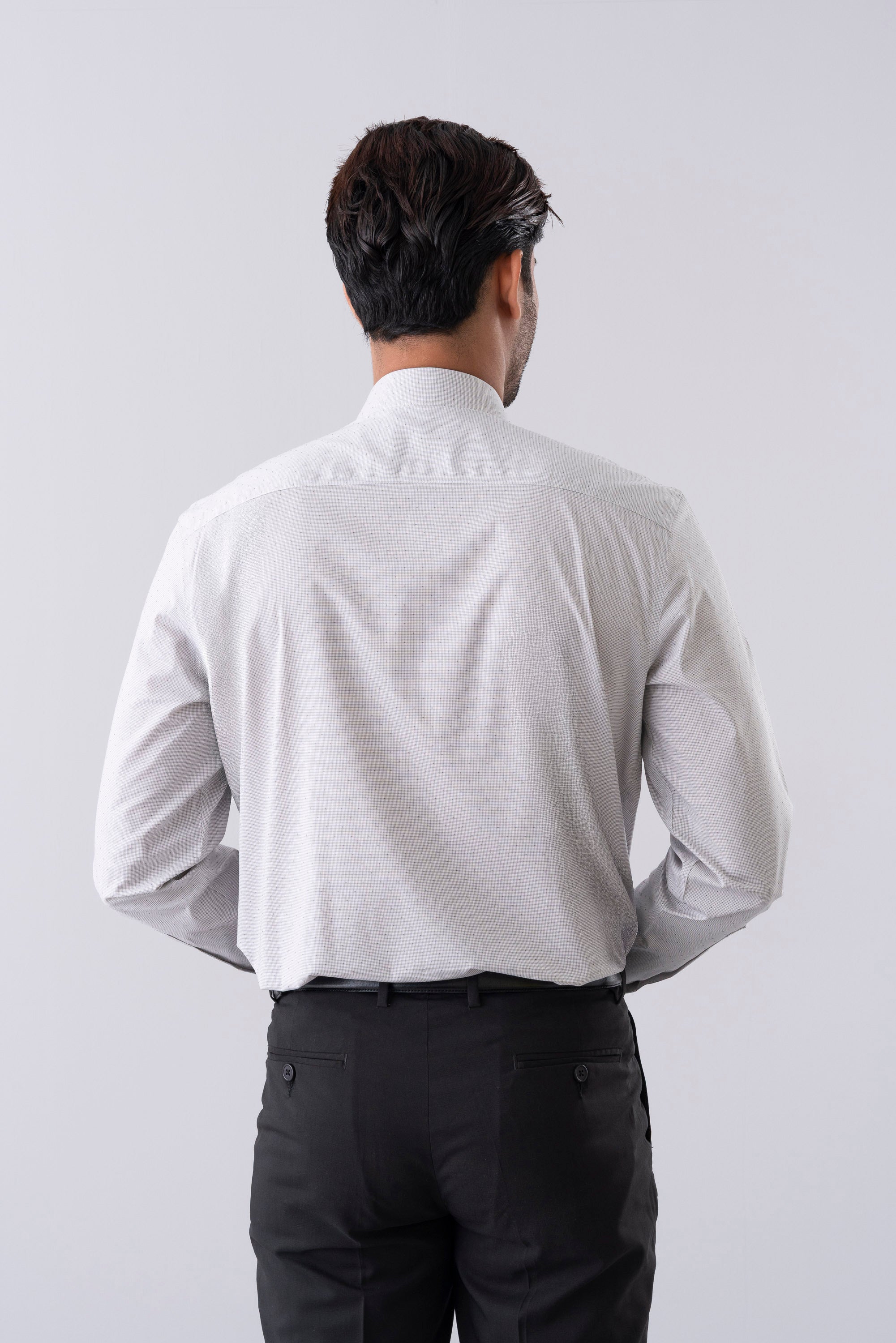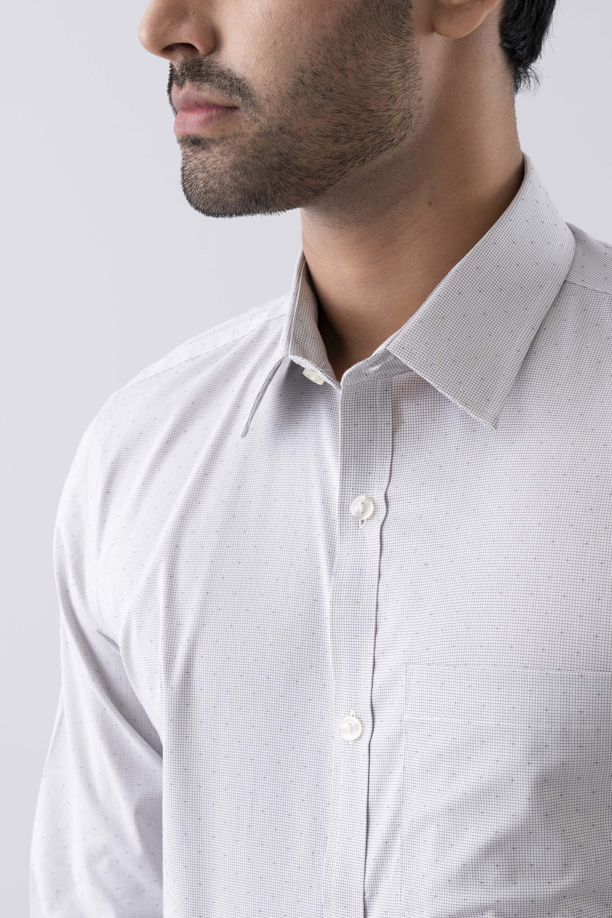 This shirt offers comfort with a bit more room in the torso and arms, creating a classic yet relaxed silhouette. Designed with long sleeves and buttoned cuffs, it features a button-up front and a classic collar for a timeless look. Crafted in a fine dobby fabric with a thin micro check pattern for subtle texture and sophistication, it’s finished with a practical patch pocket for everyday ease. Perfect for both office wear and smart casual settings.