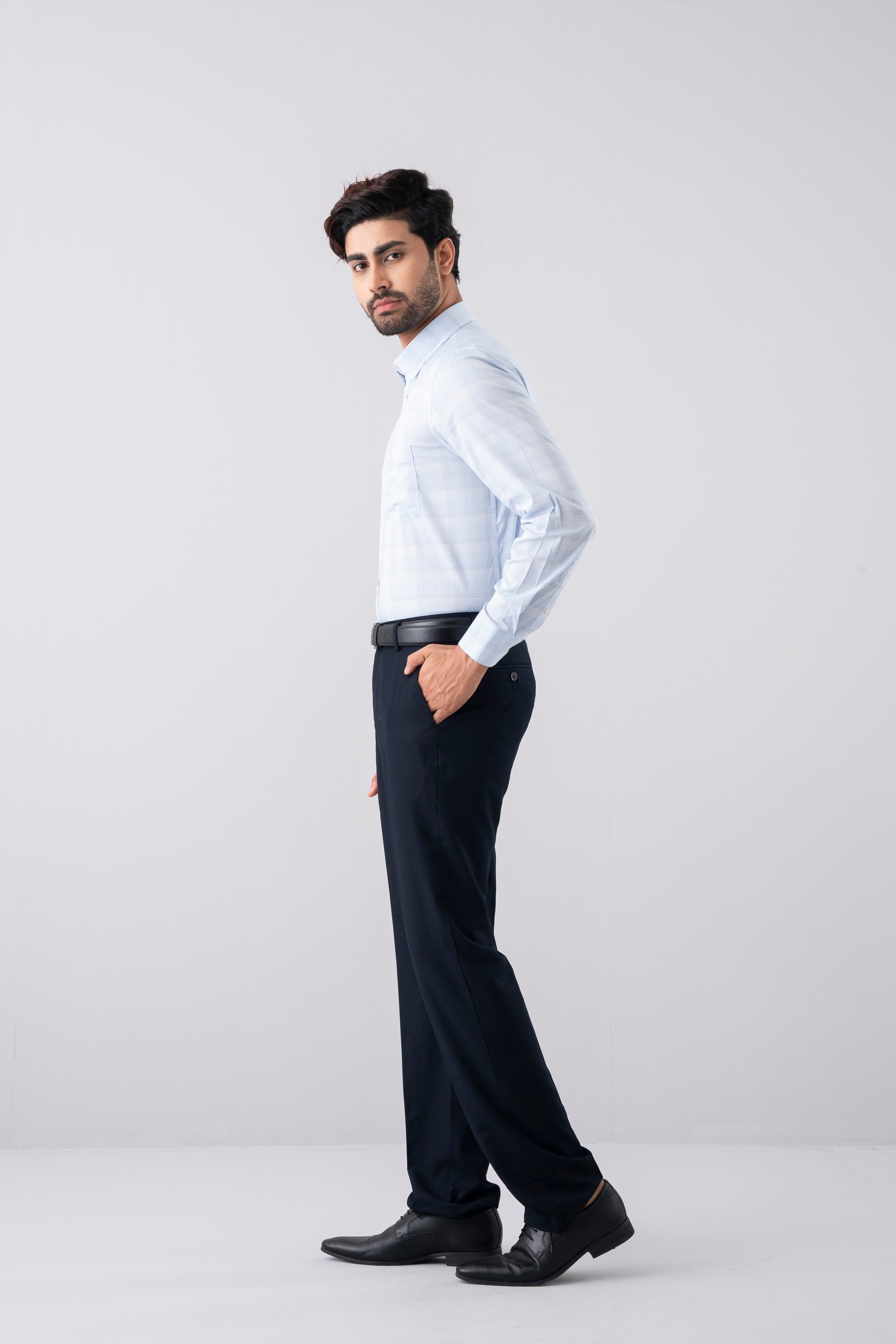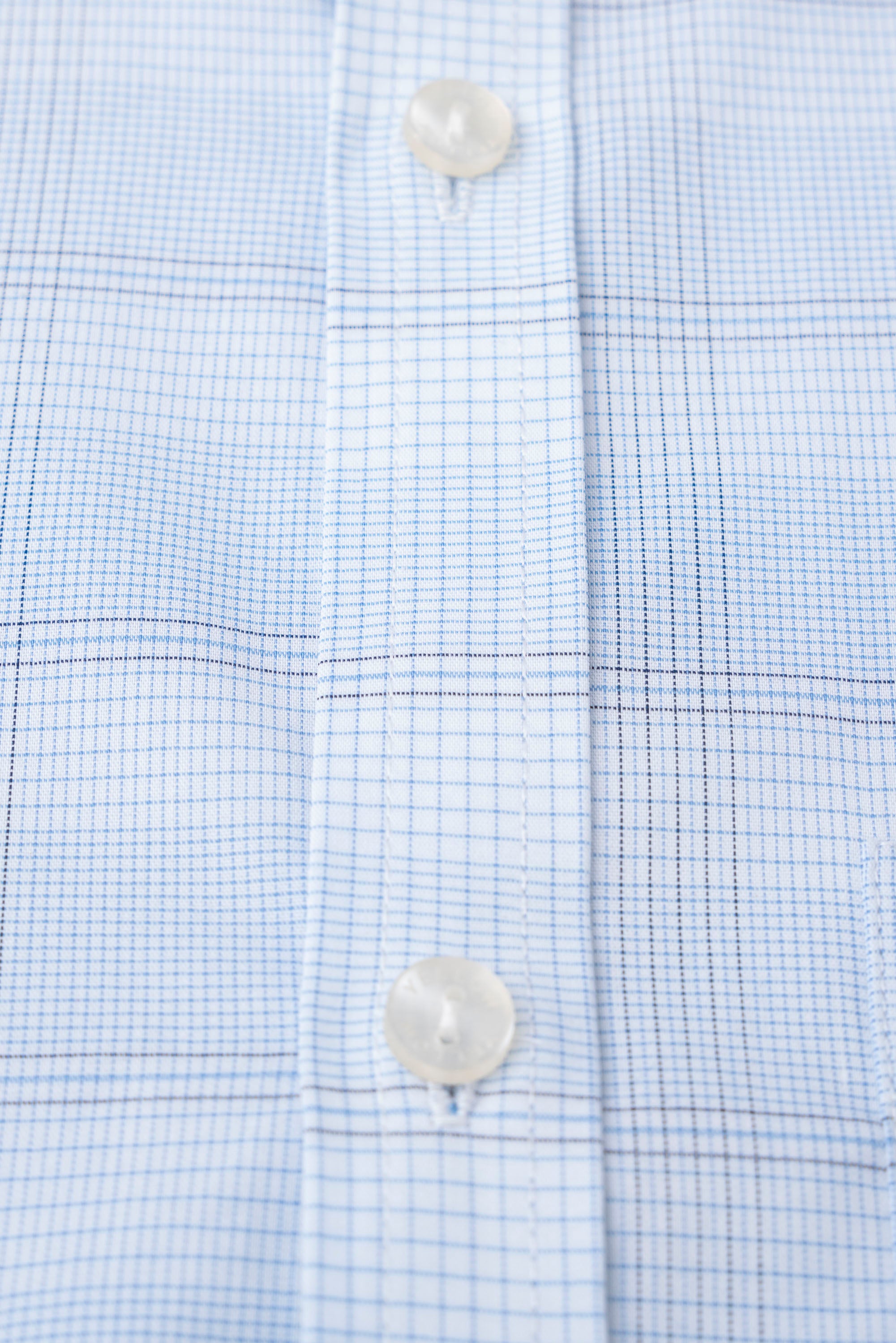 Crafted from super fine yarn for a smooth and refined finish, this regular-fit shirt offers a comfortable yet polished look. It features a classic thin check pattern, a button-down collar for a neat appearance, and elegant pearl button detailing. Finished with rounded cuffs for a touch of sophistication, this shirt is perfect for both professional and smart-casual occasions.