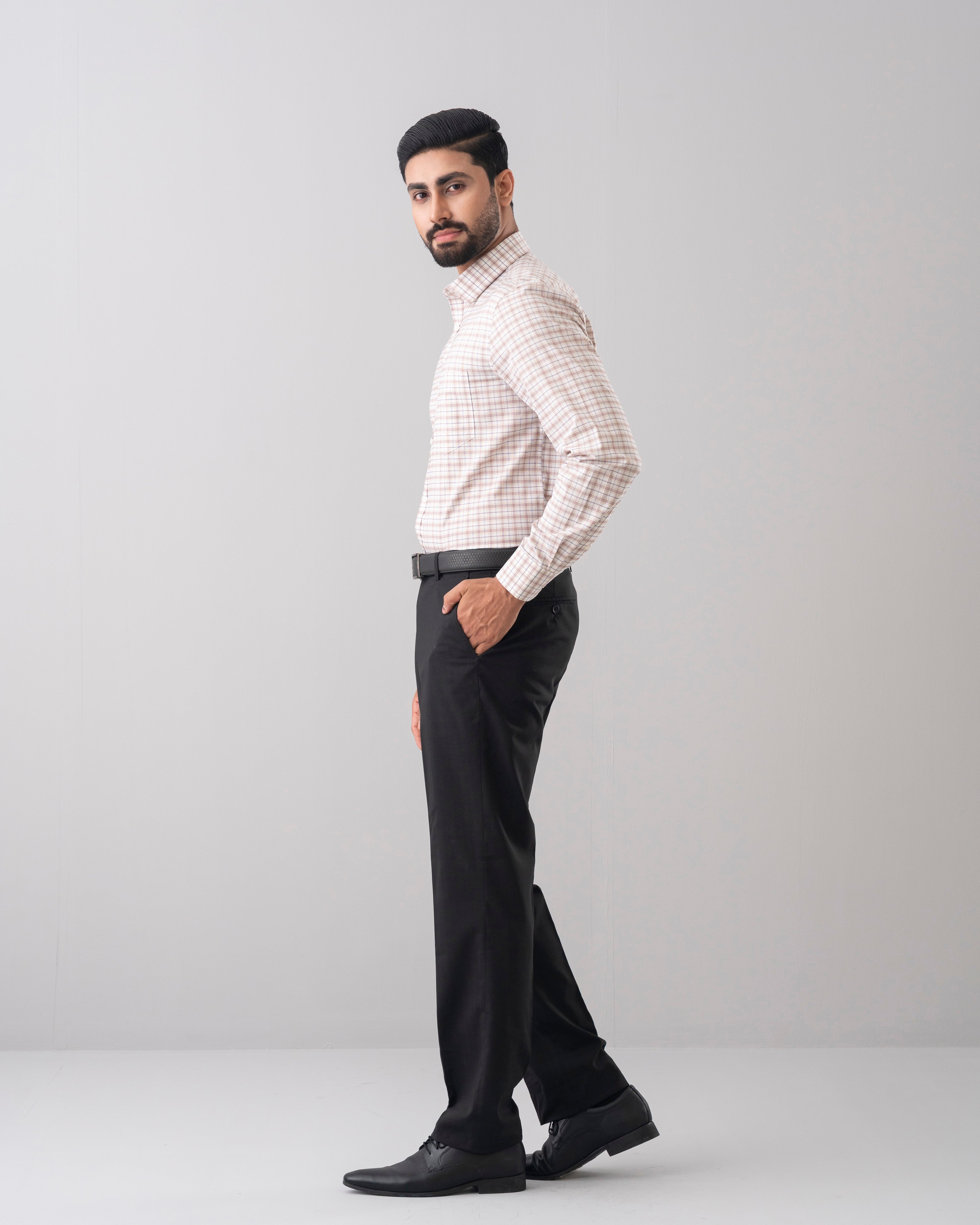 Crafted from micro yarn-dyed check fabric, this regular fit formal shirt offers subtle pattern definition with lasting color clarity. Designed with a loop button-down collar, it ensures a neat and structured appearance throughout the day. The easy-care finish provides convenience and long-lasting crispness, making it ideal for professional settings. Finished with rounded cuffs and a classic box button placket, this shirt delivers a timeless and well-balanced formal look.