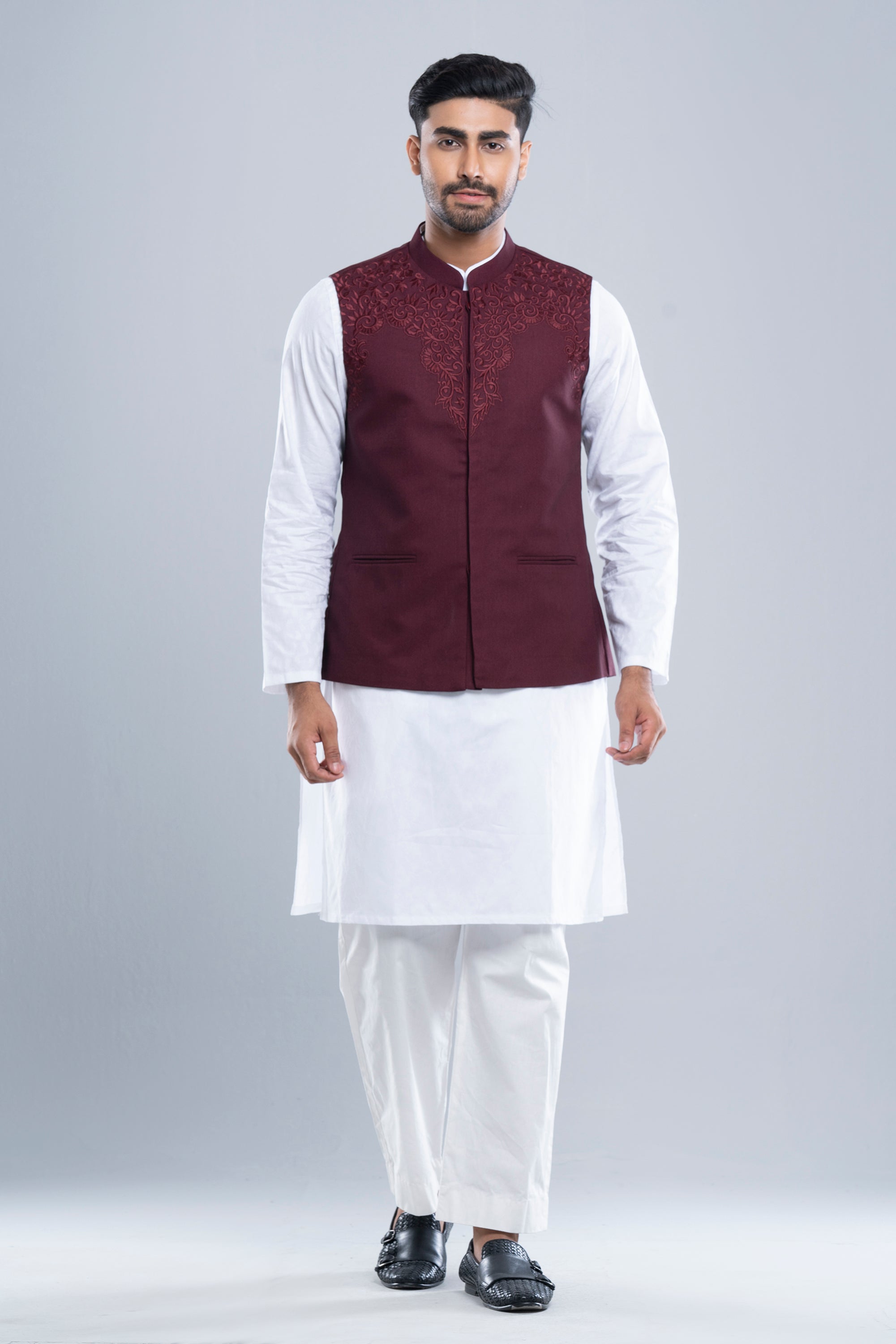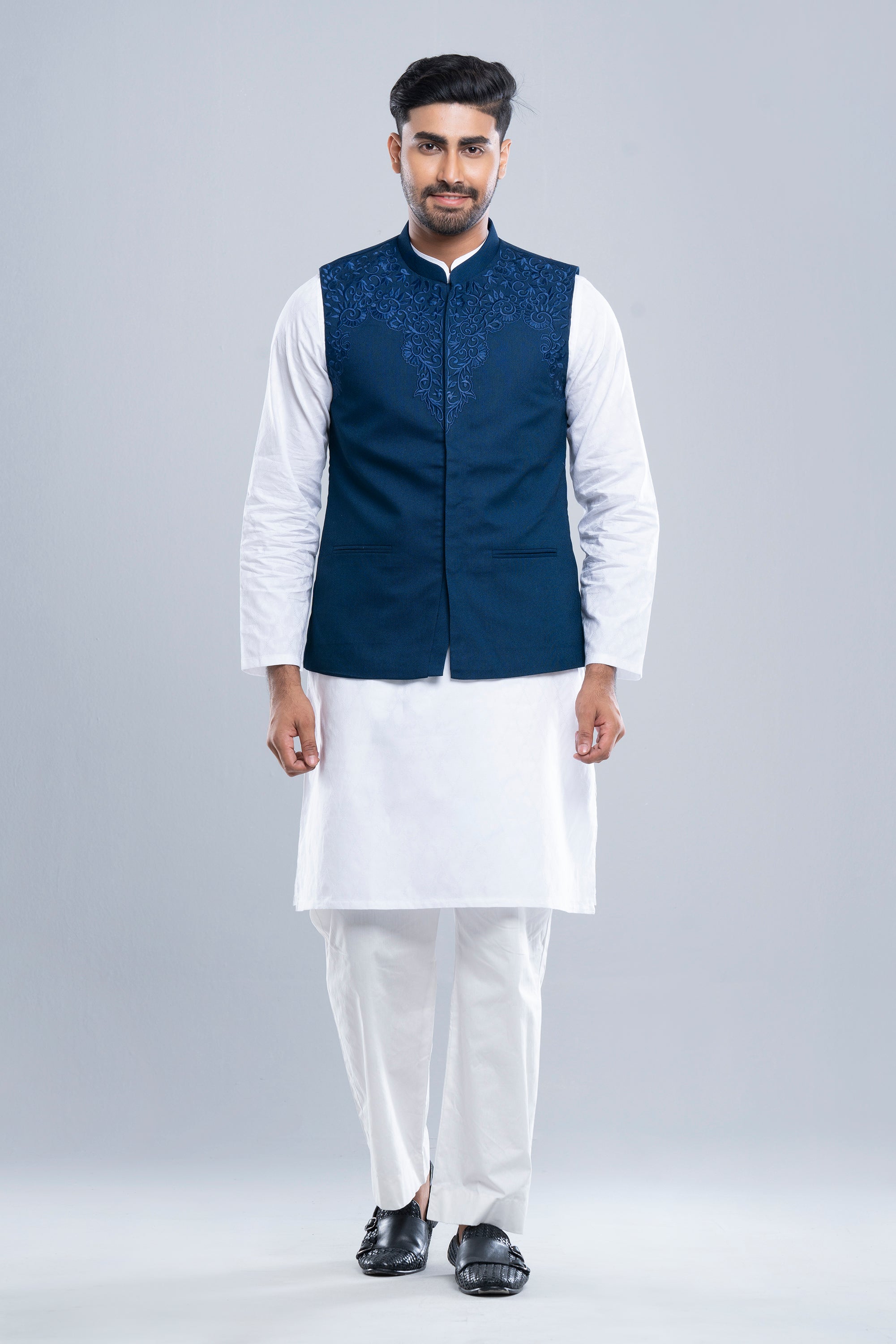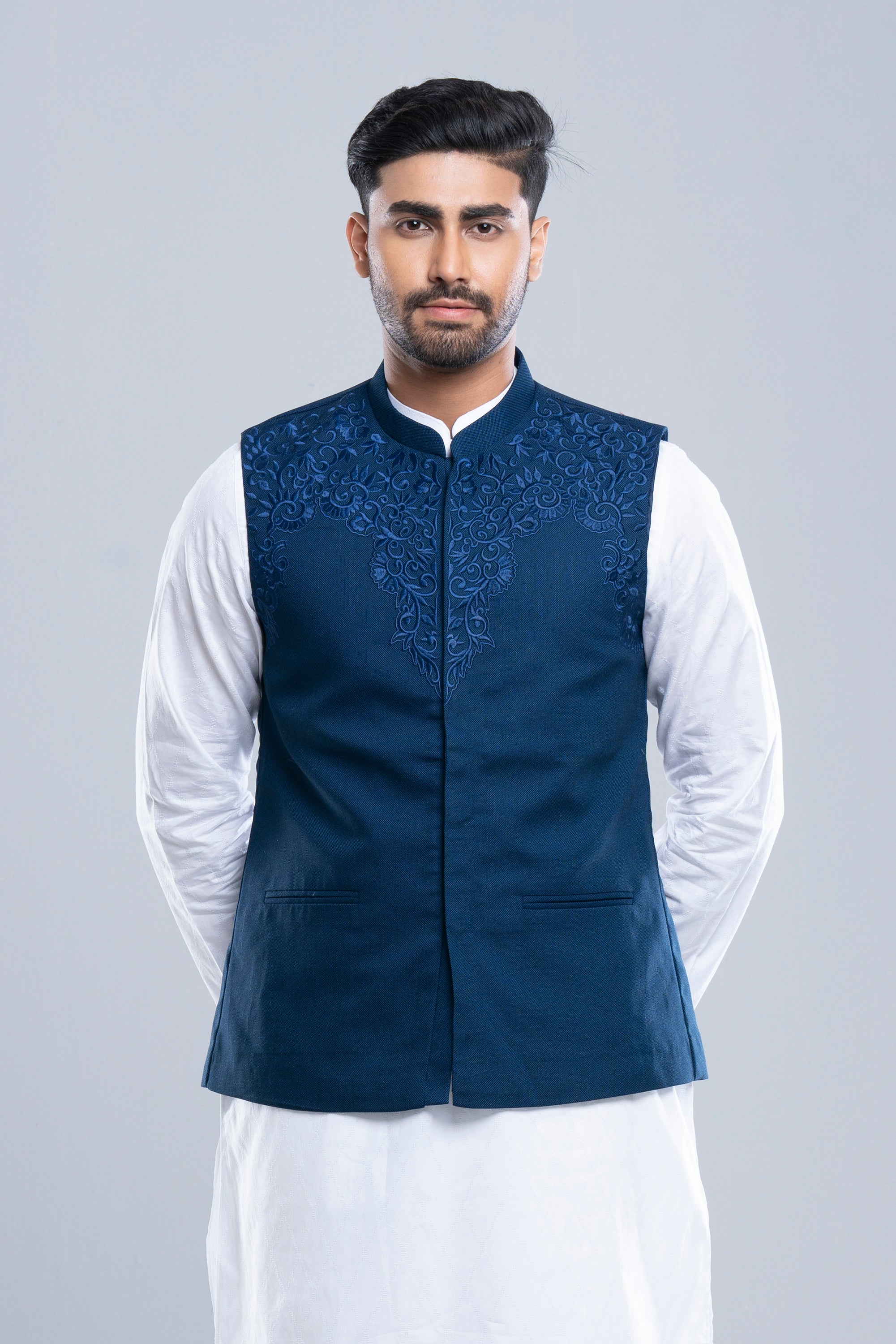 This semi-formal waistcoat offers a sophisticated blend of style and comfort, tailored in a regular fit for a polished look. Crafted from a premium fabric mix—68% Tencel, 30% Rayon, and 2% Spandex—it provides a smooth, breathable feel with a hint of stretch for added ease. The design features hidden placket and embroidery on the top portion adds a touch of distinguished craftsmanship. Ideal for layering at special events.