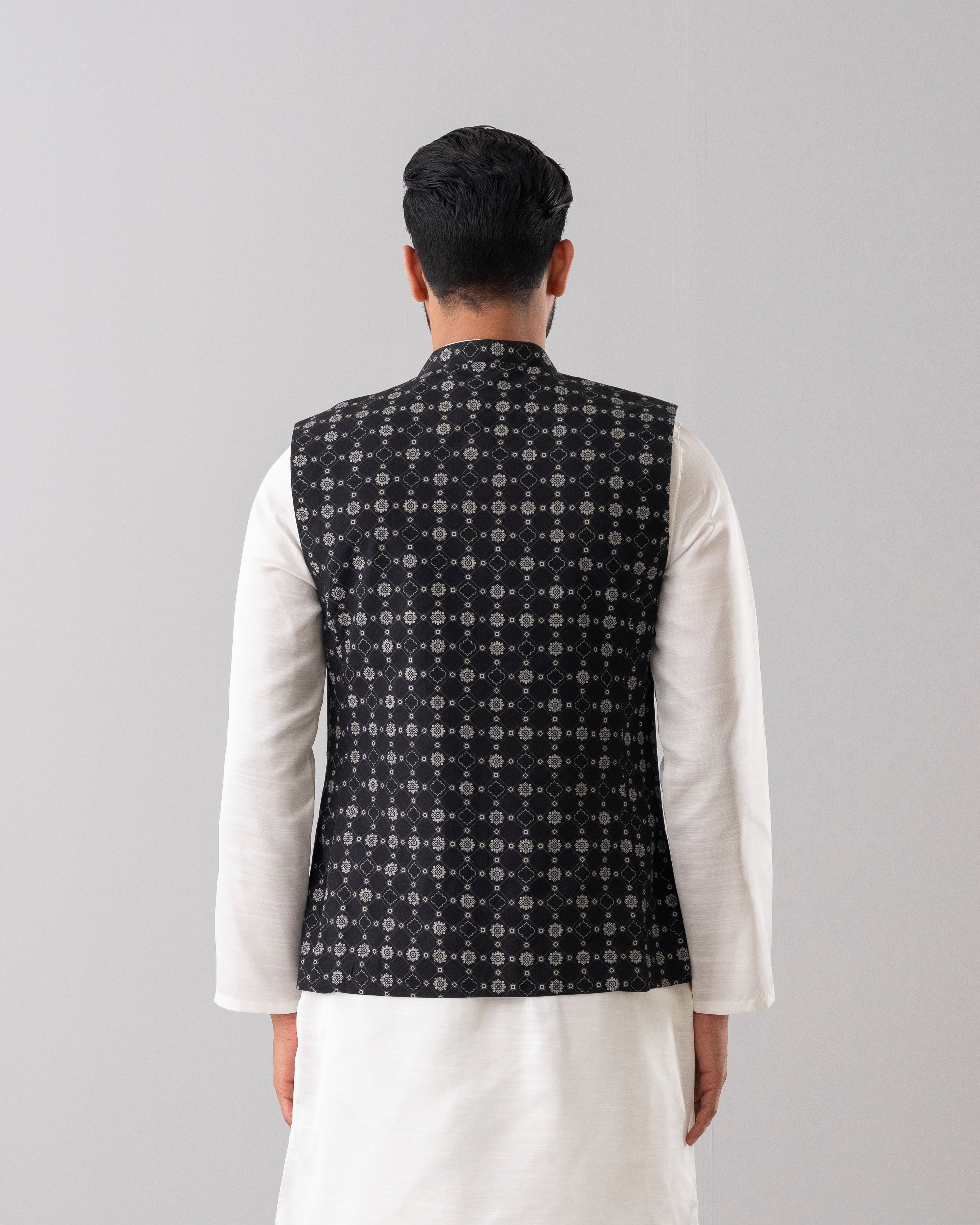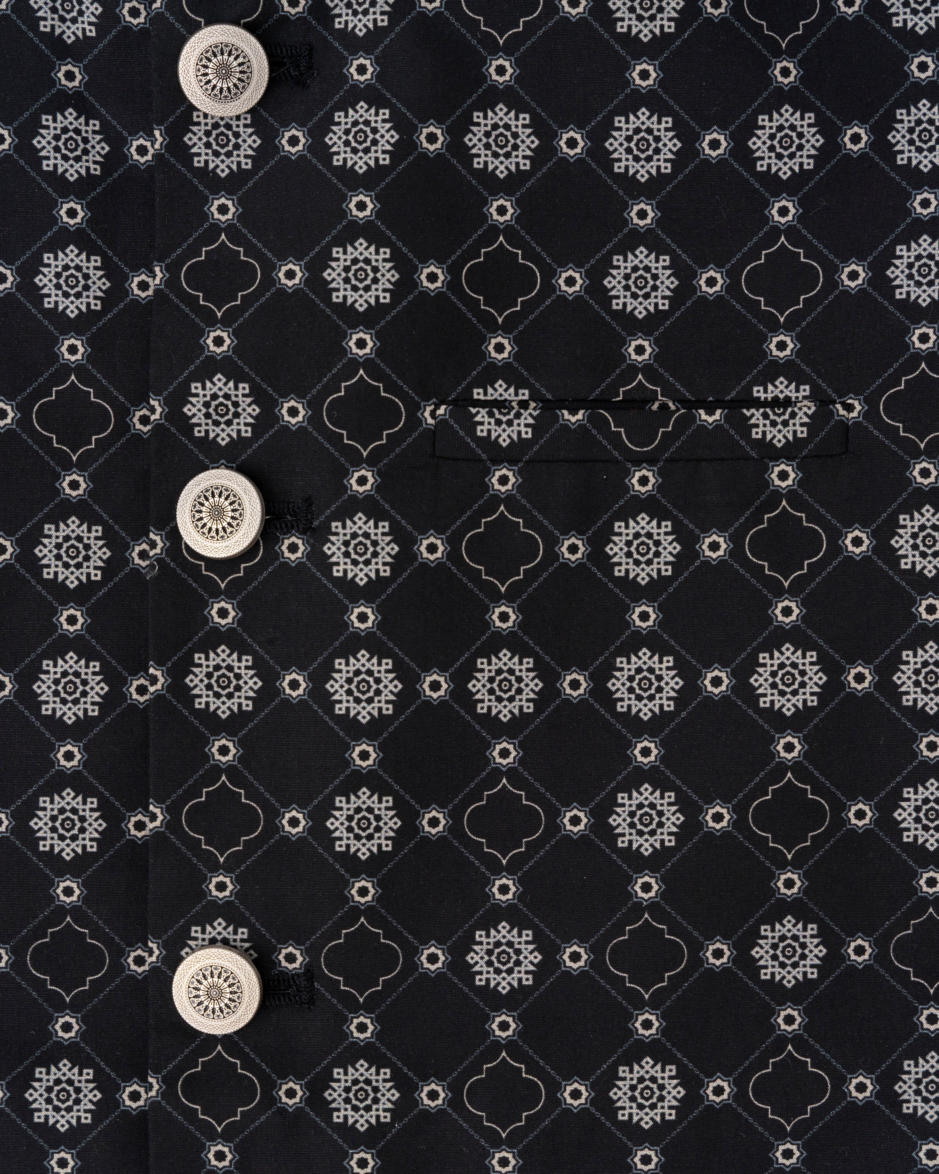 ease. The design features exclusive decorative buttons, elegant print and contrast with double welt pocket adds a touch of distinguished craftsmanship. Ideal for layering at special events.