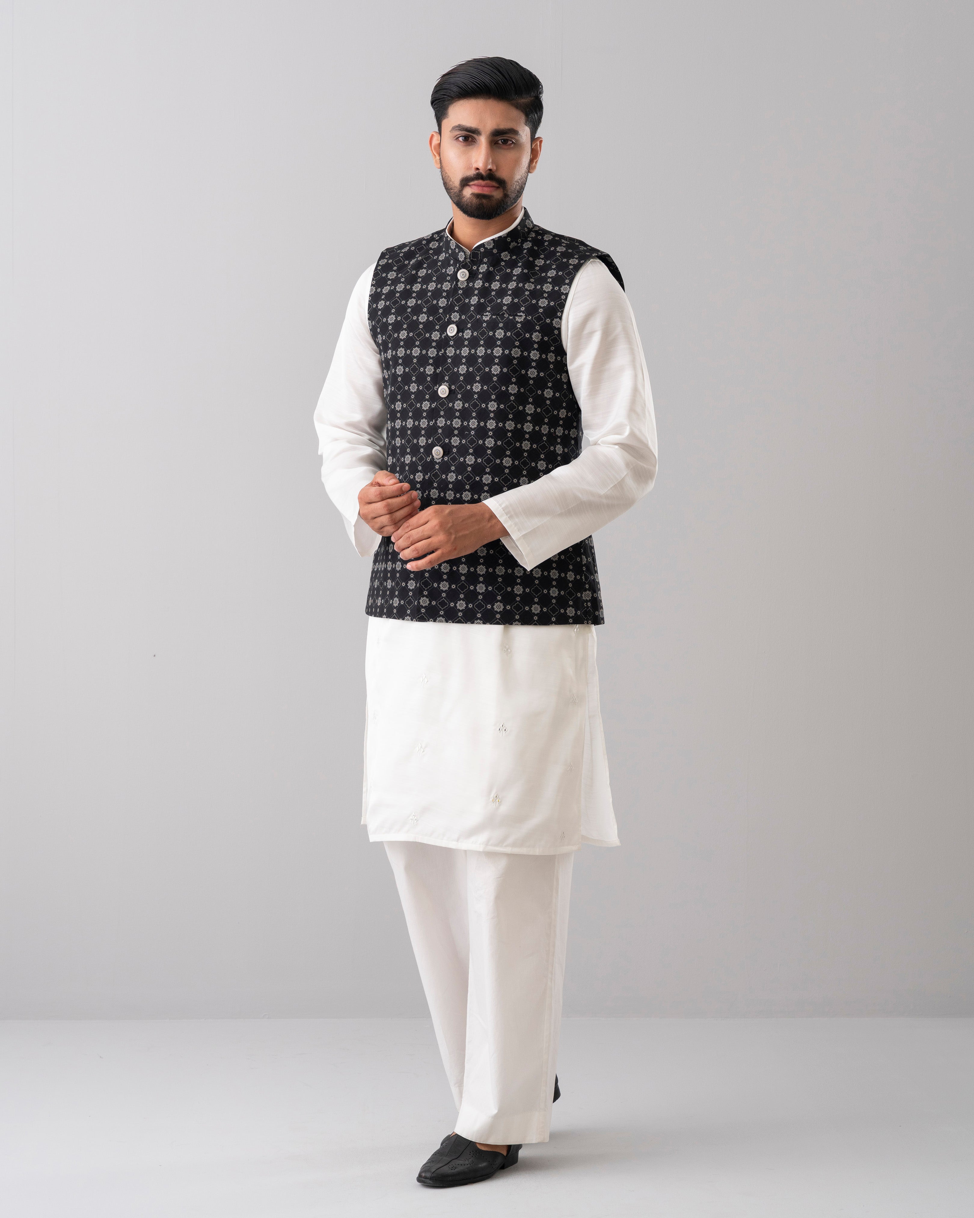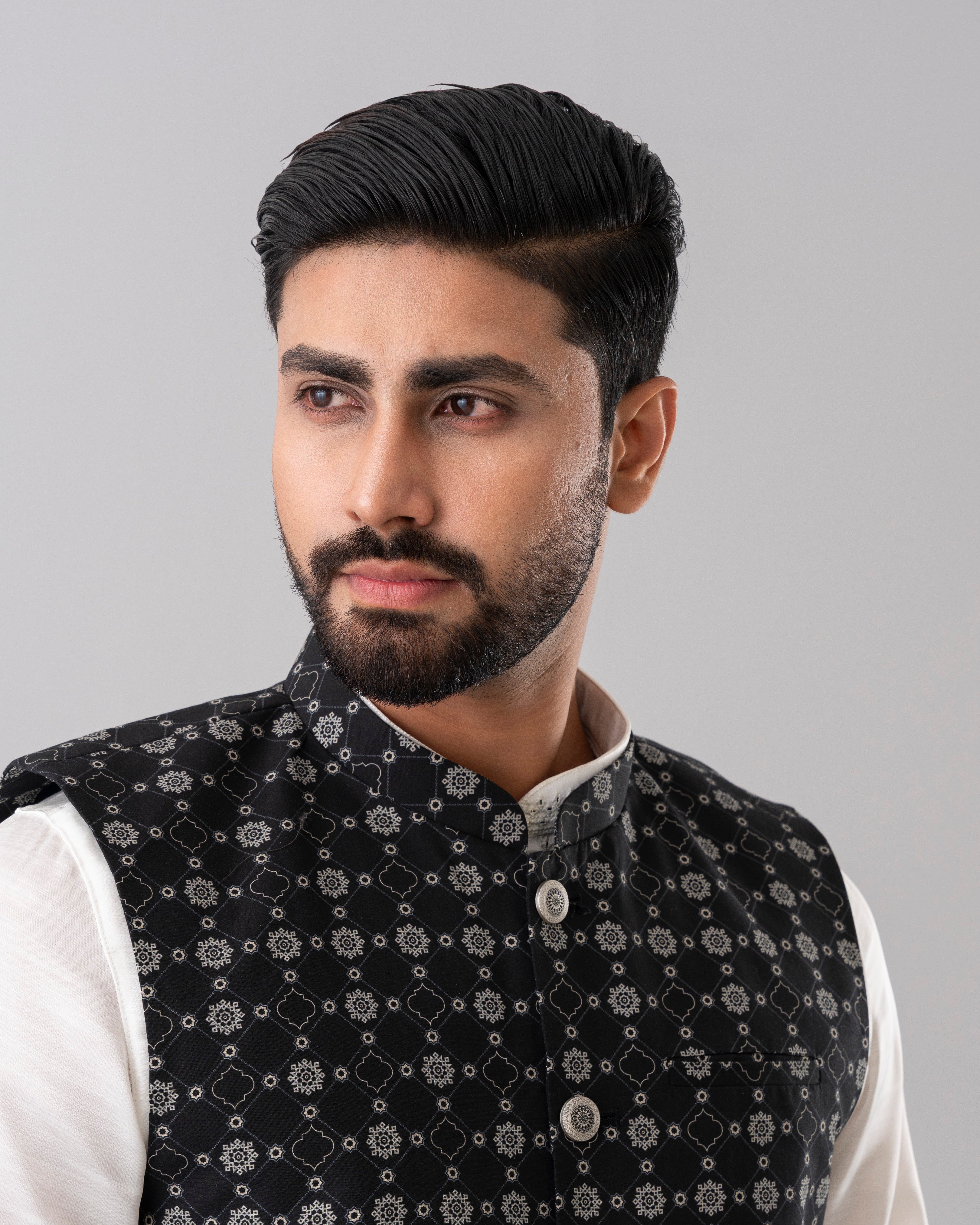 This daily wear waistcoat offers a sophisticated blend of style and comfort, tailored in a regular fit for a polished look. Crafted from a premium fabric of 100% cotton—it provides a smooth, breathable feel with a hint of stretch for added