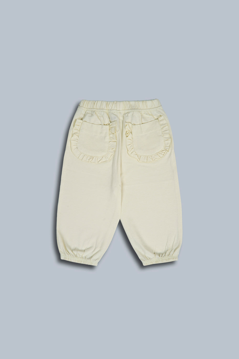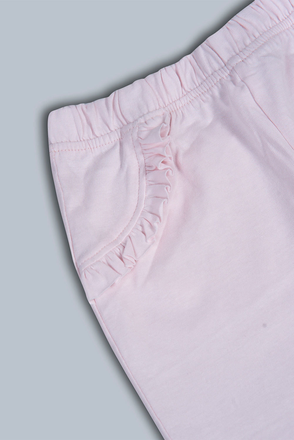 • 100% cotton light weight single Jersey Baby girl's bottom with non functional frill pocket on front and back.The leg opening made with comfort elastic.