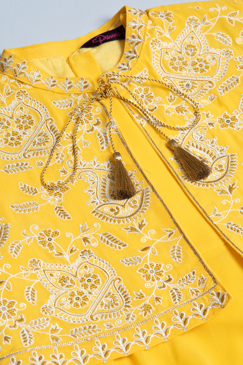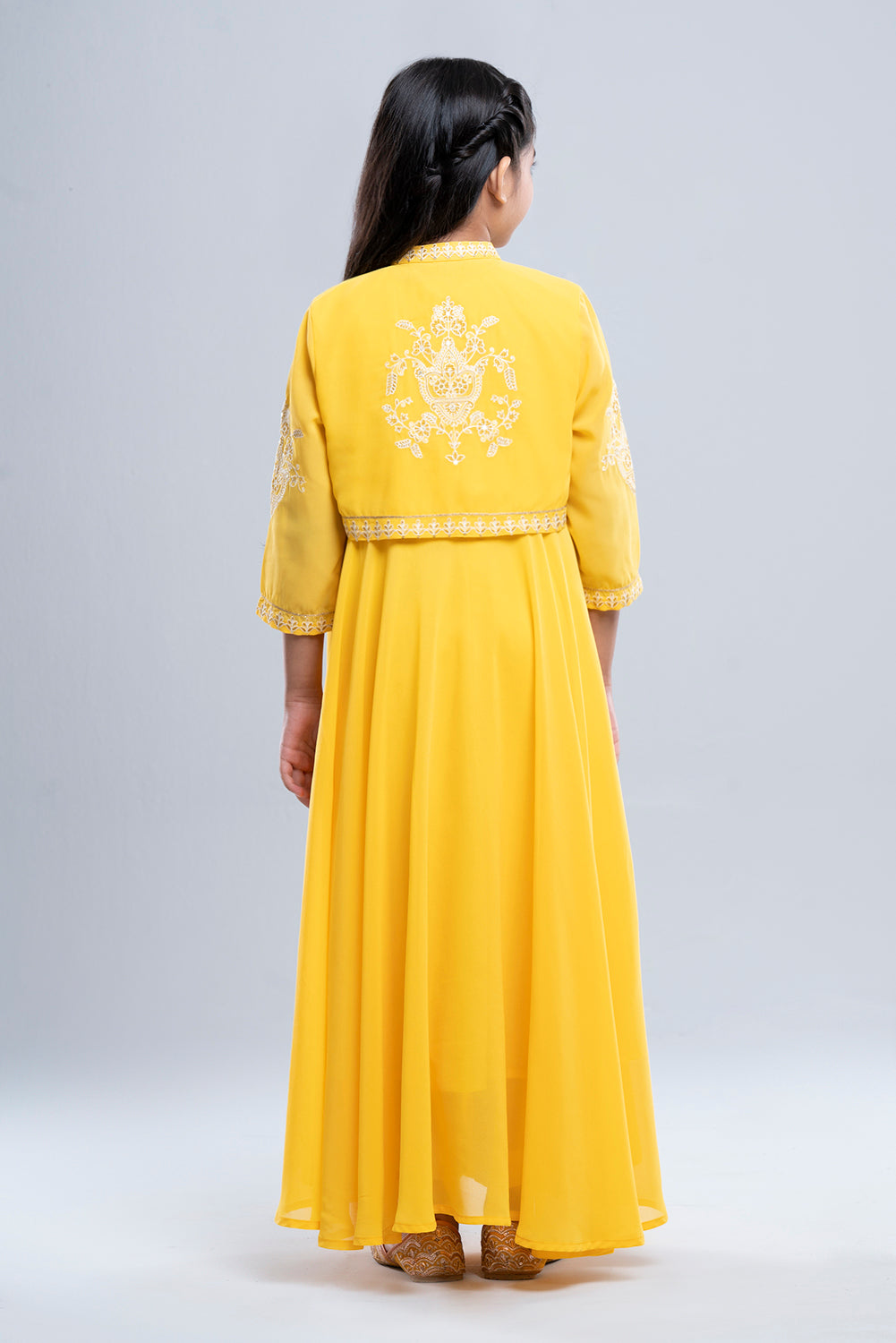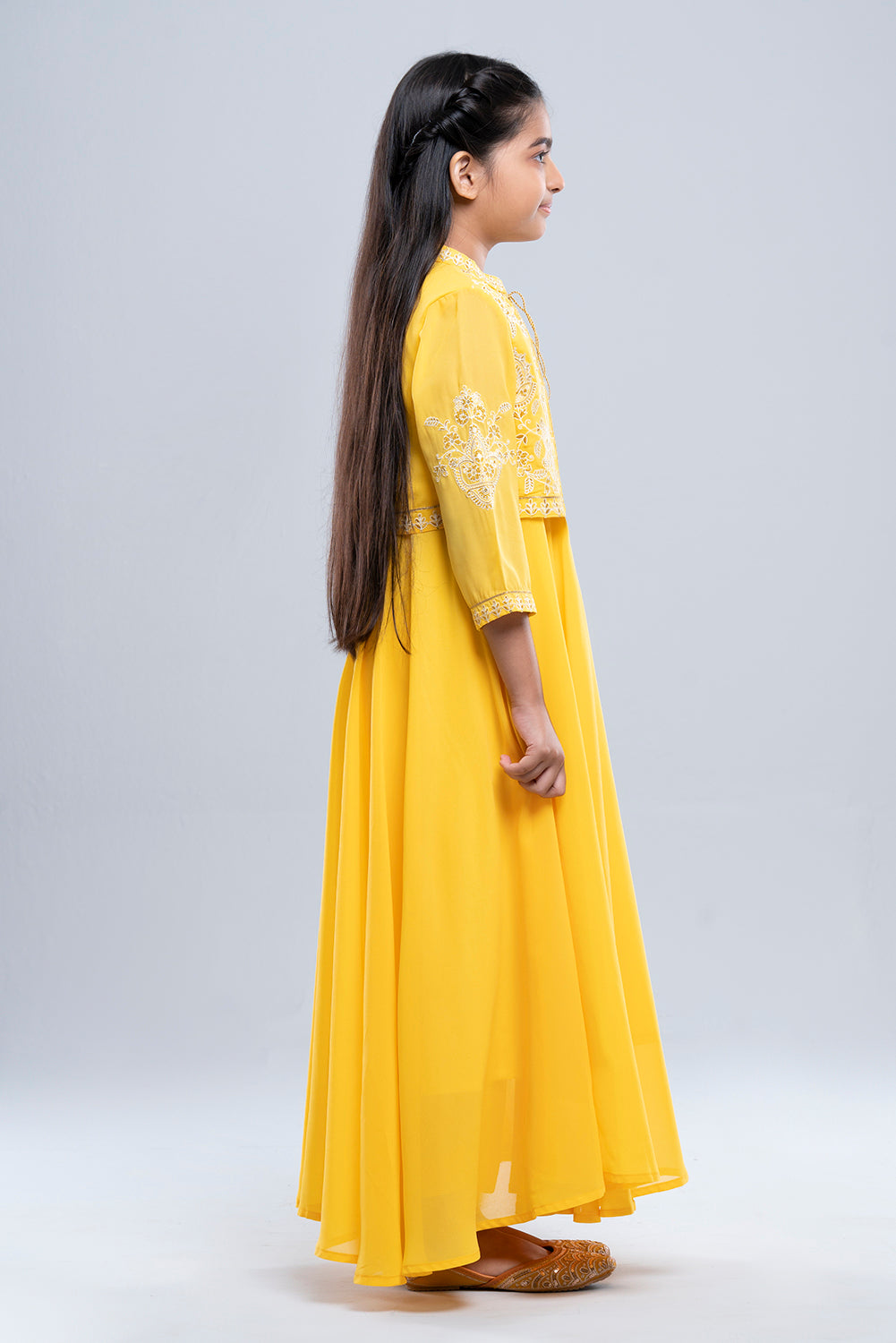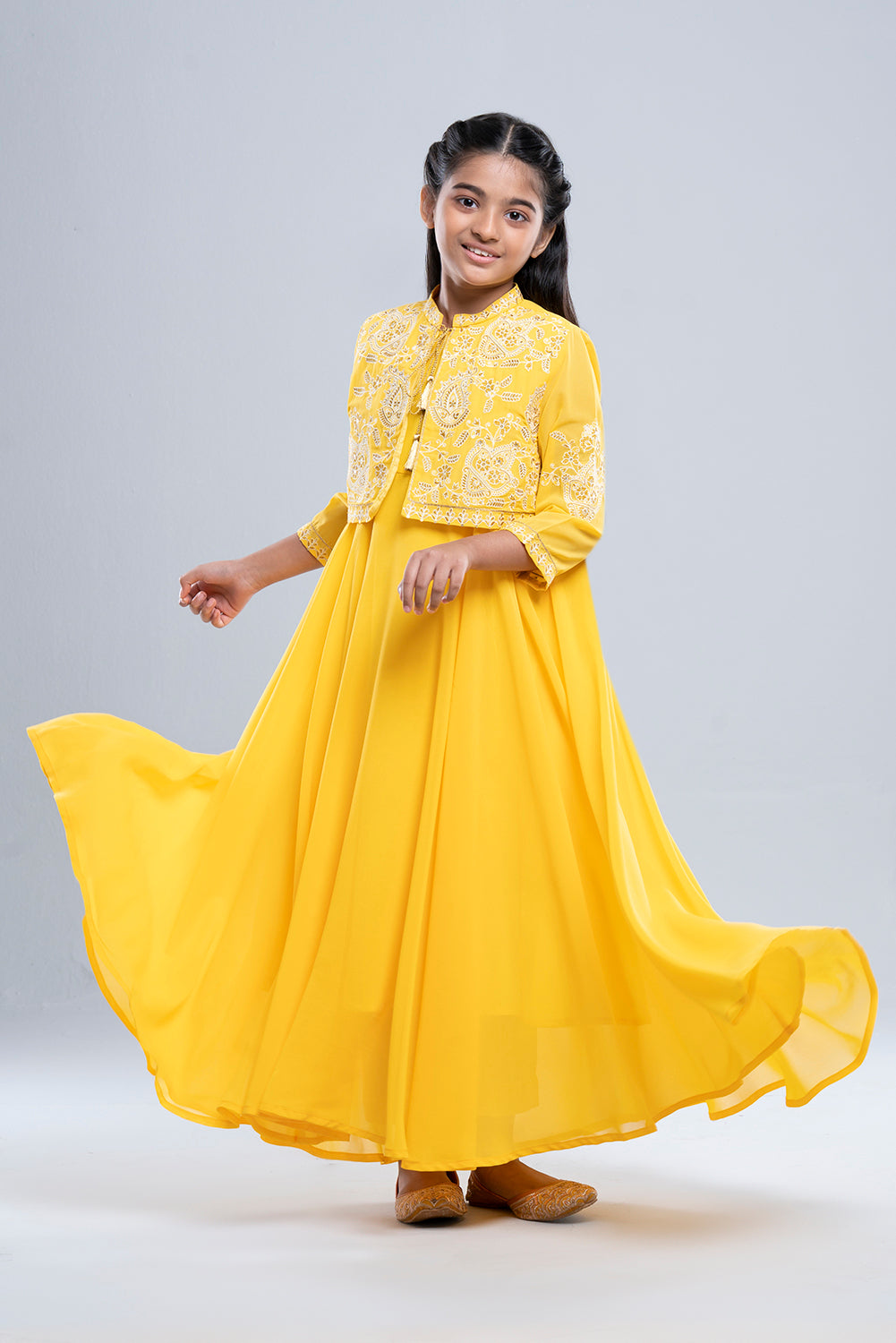 • 3 pieces - first one part is a waist coat with exclusive embroidery and the second part is a flared kurta with long length and a pajama.