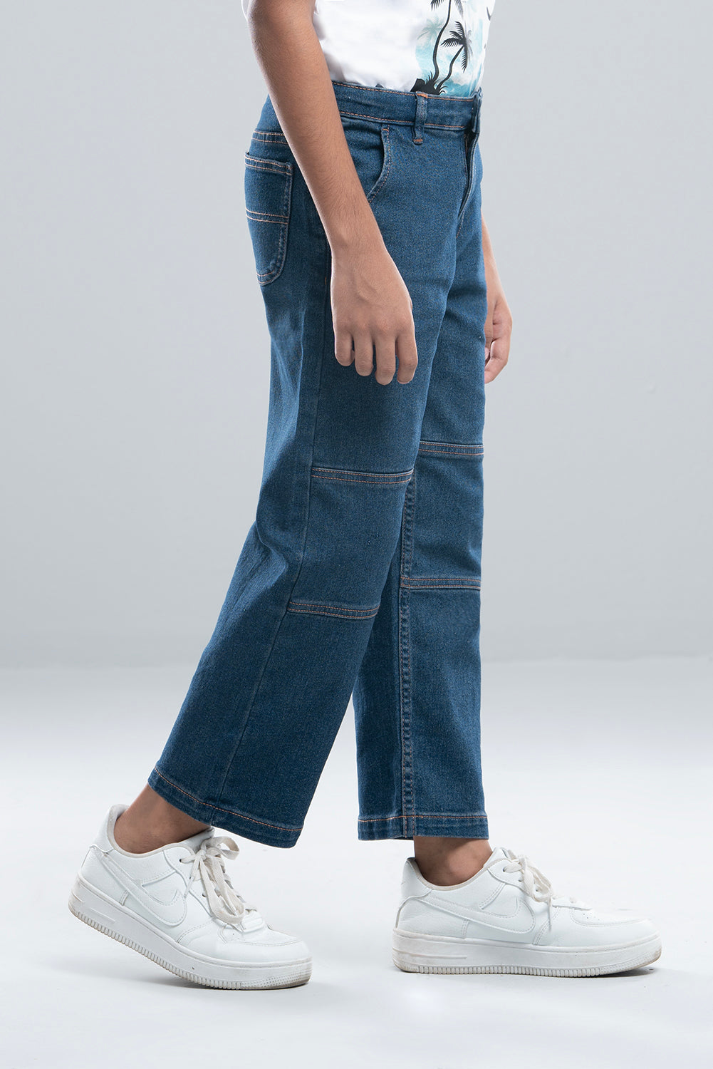 • Double-stitched paneling across the knees, accented with contrasting tan thread.