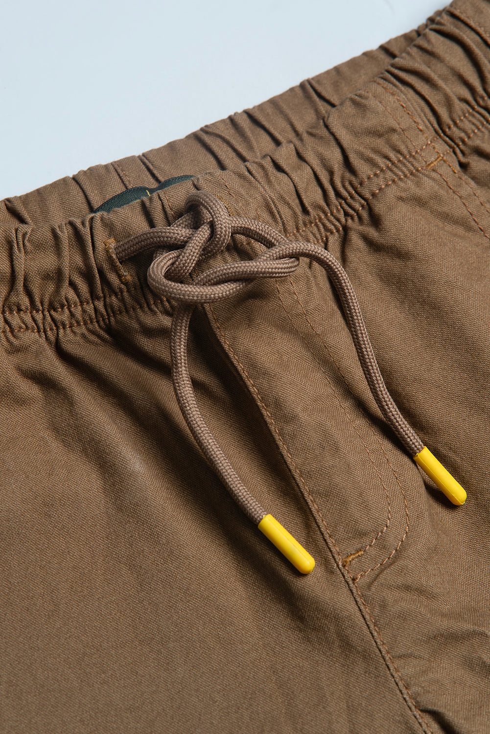 • Relaxed fit with covered elastication and a drawstring at the waistband with contrasting colored tips.