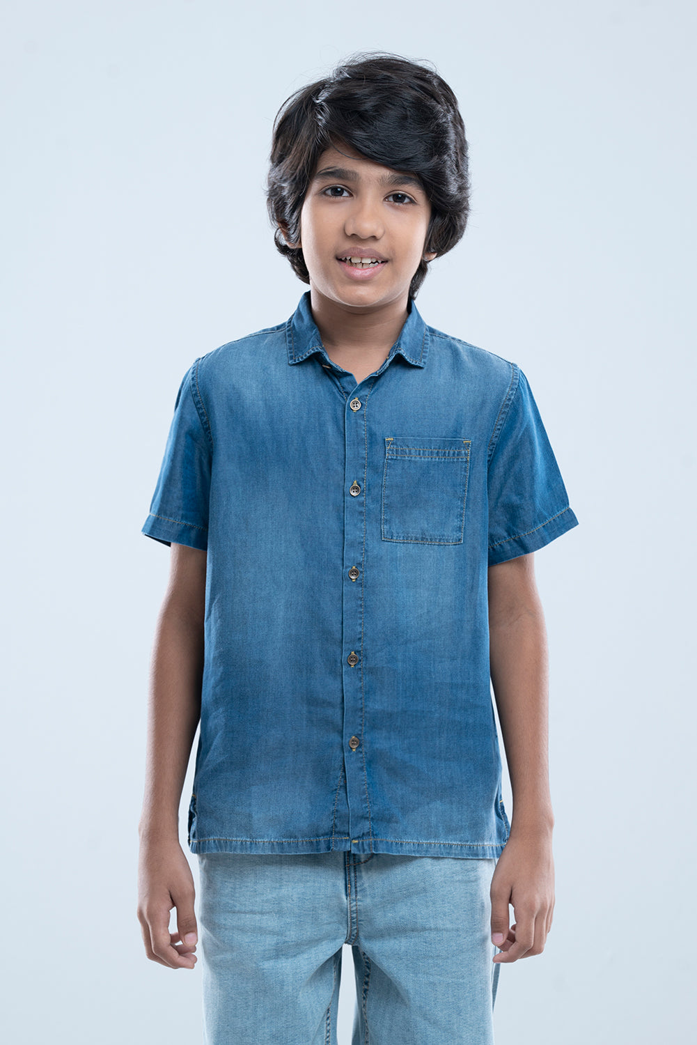 • Prince Tencel Short-Sleeve Casual Shirt with Wash Look, a perfect blend of style and sustainability. Enhanced with stylish metal buttons and contrast thread stitch details, it offers a modern twist.