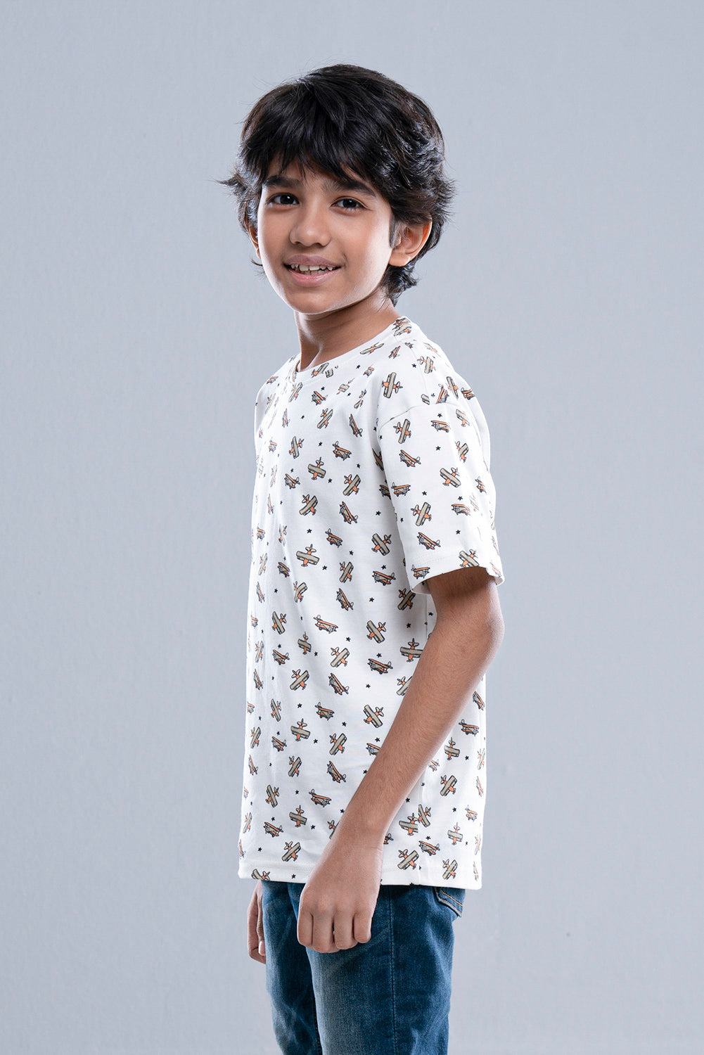 • All over digital Biplane printed short sleeve knit tee shirt for Prince boys