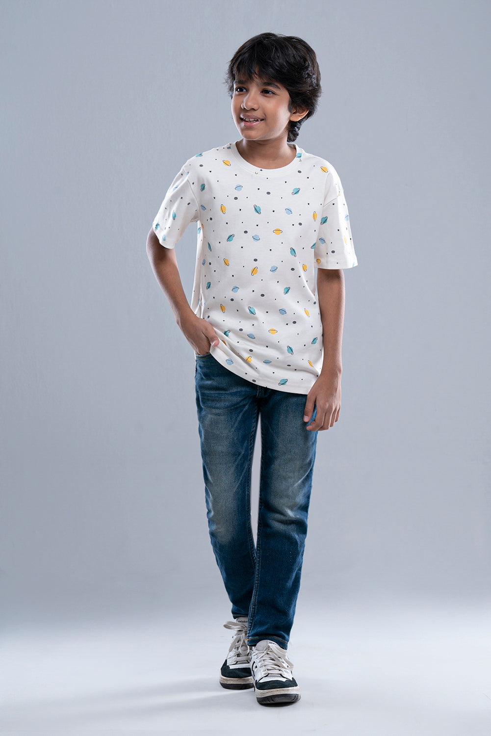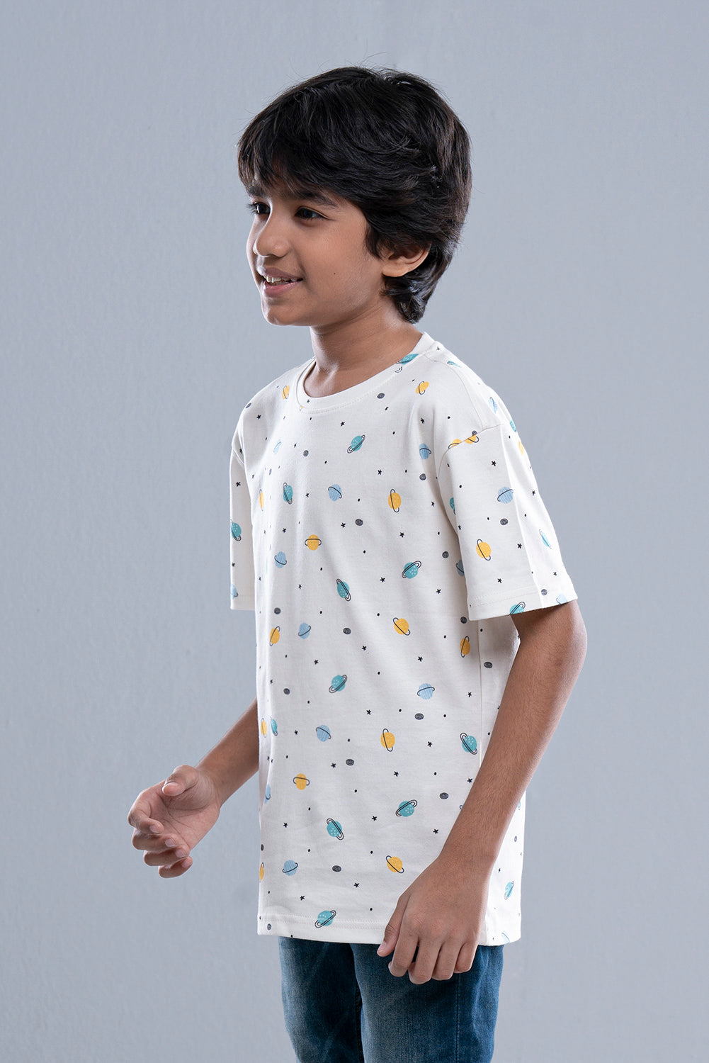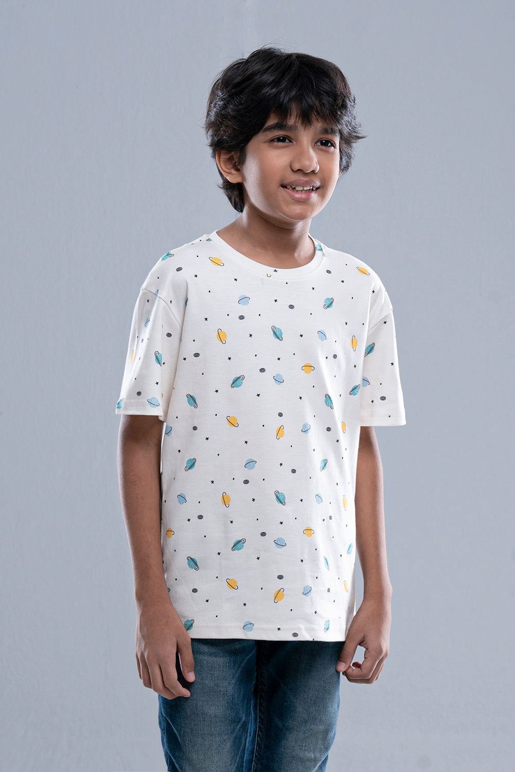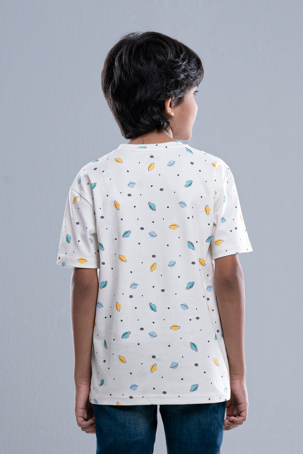 • All over digital Planet printed short sleeve knit tee shirt for Prince boys