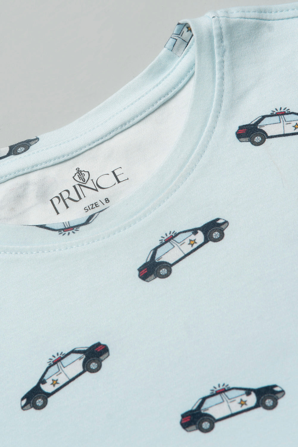 • Features a striking all-over digital print of police cars for a playful, dynamic look.