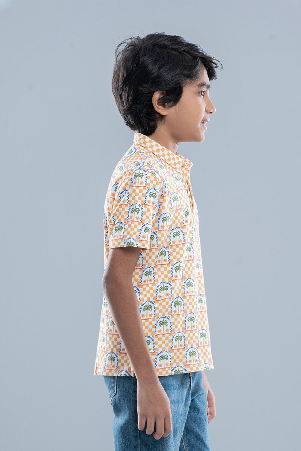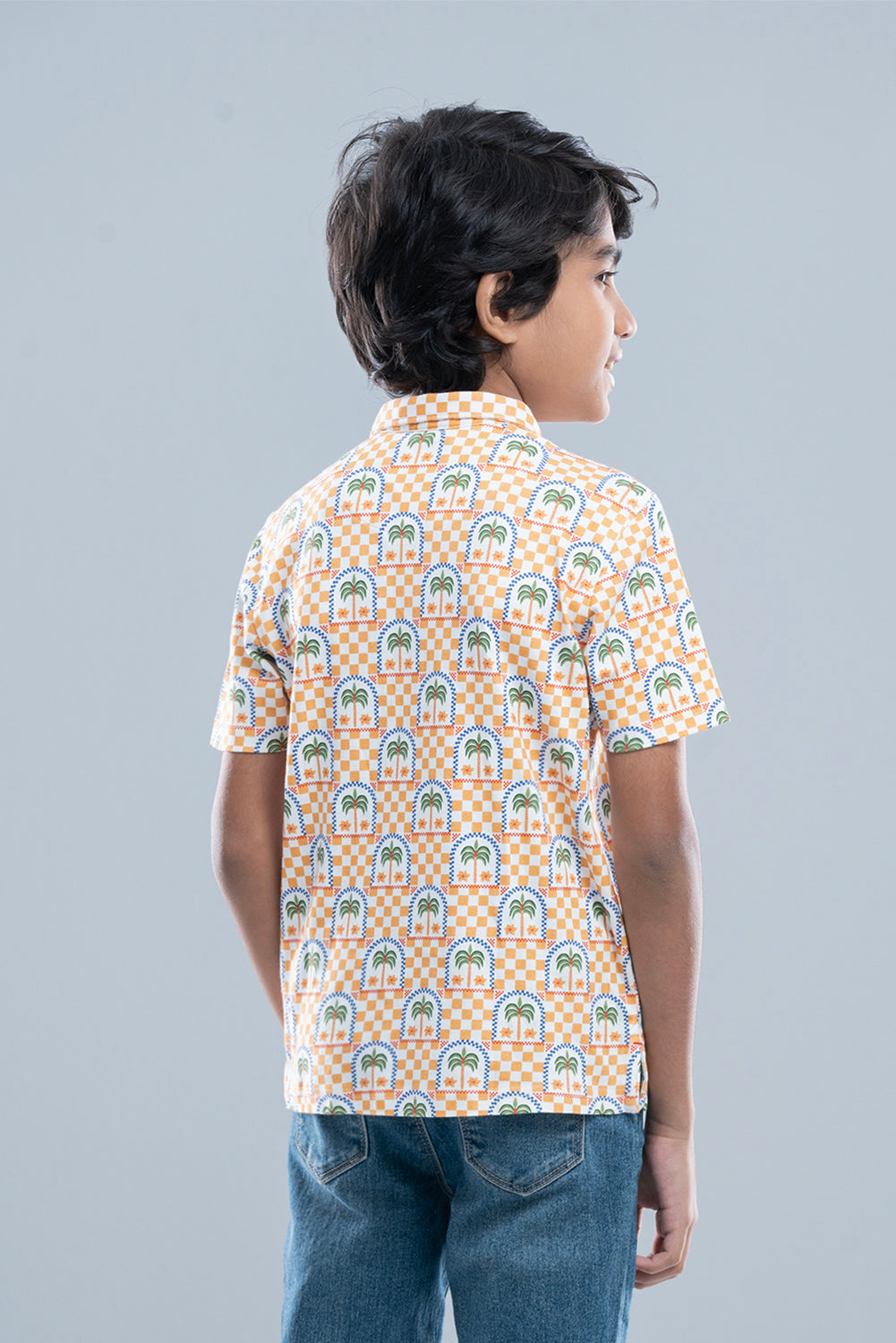 Brighten up their day with this all-over Digital printed polo. The colorful geometric pattern brings cheerful energy, while the soft interlock fabric ensures easy comfort wherever they go.