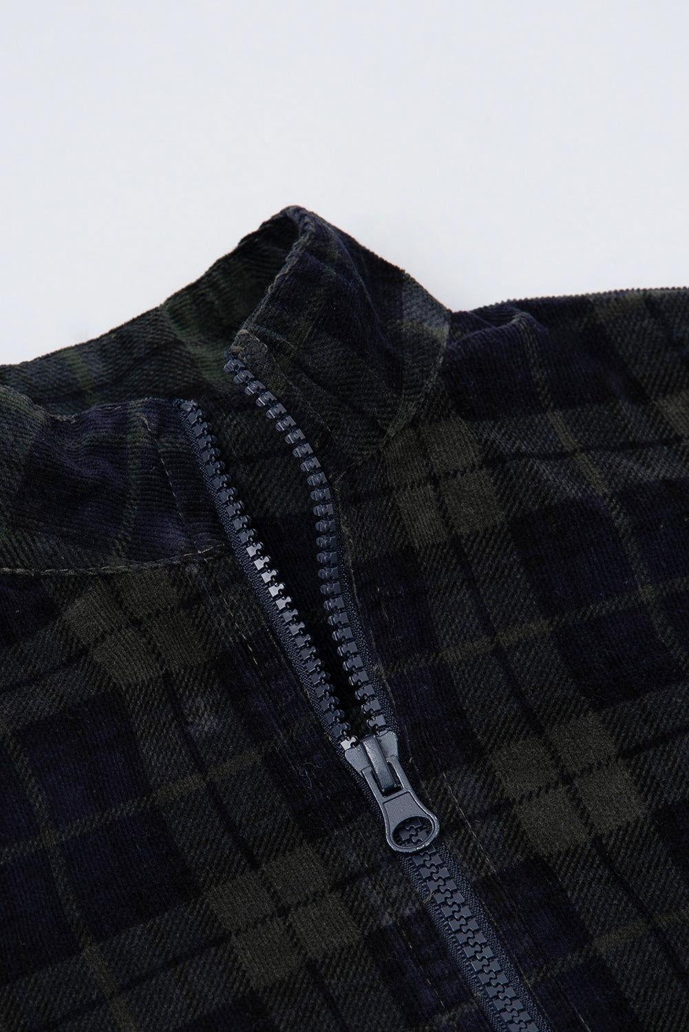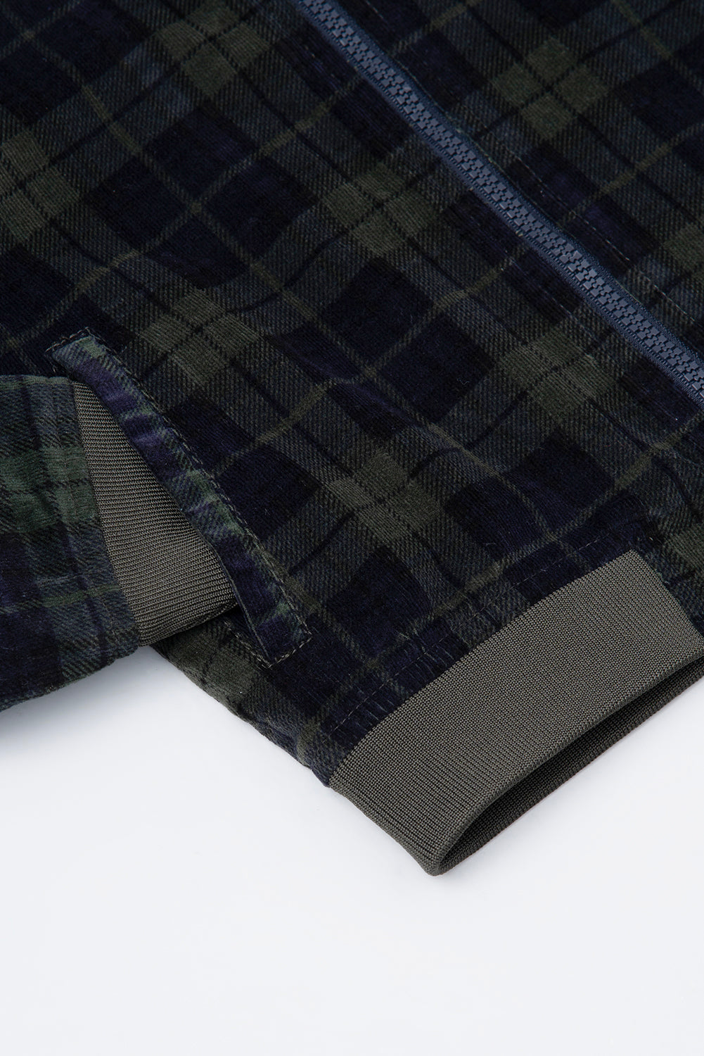 This stylish and comfortable zip-up jacket for boys features a classic plaid pattern in a sophisticated mix of dark green/olive and navy blue.