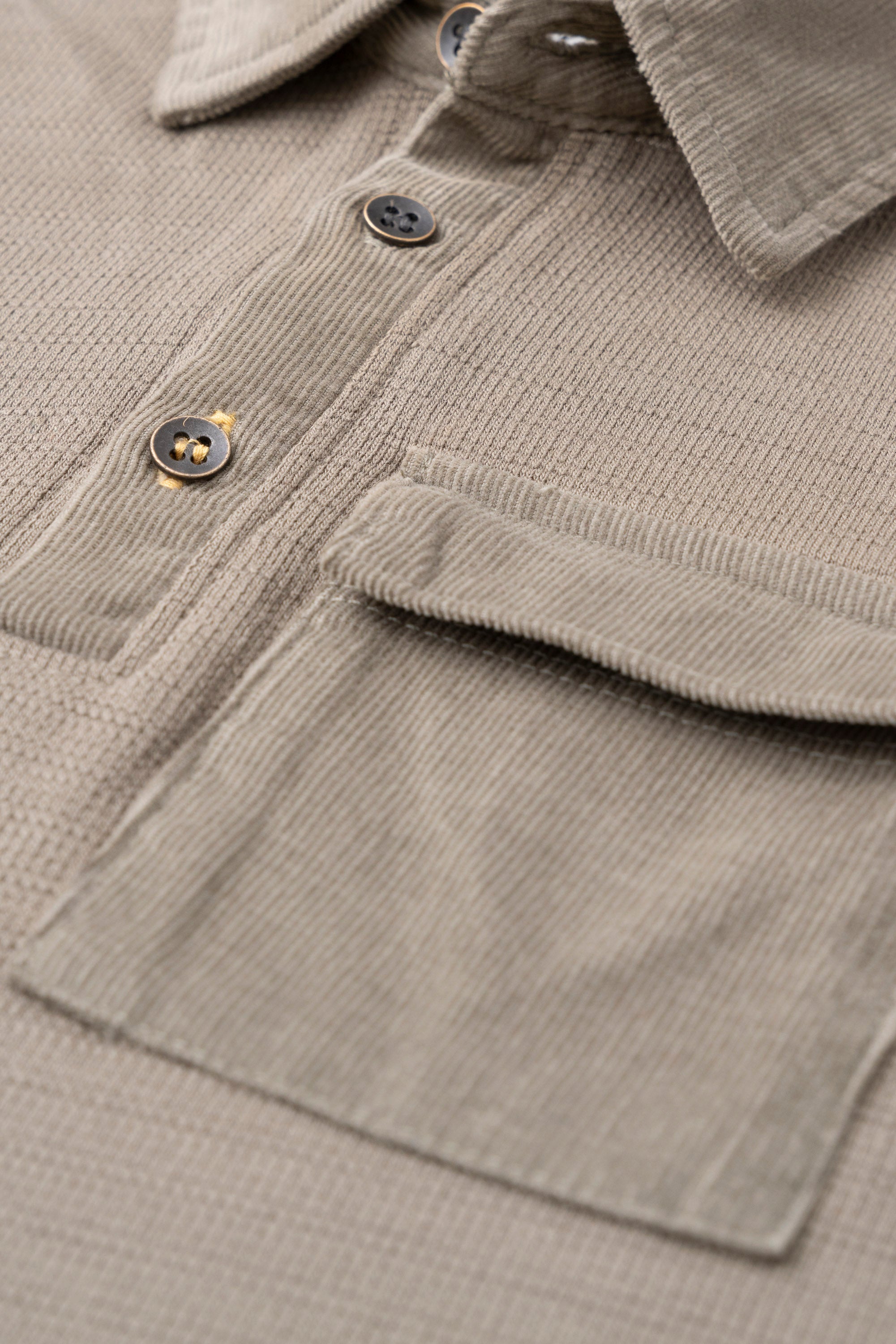 • Corduroy fabric collar and placket.