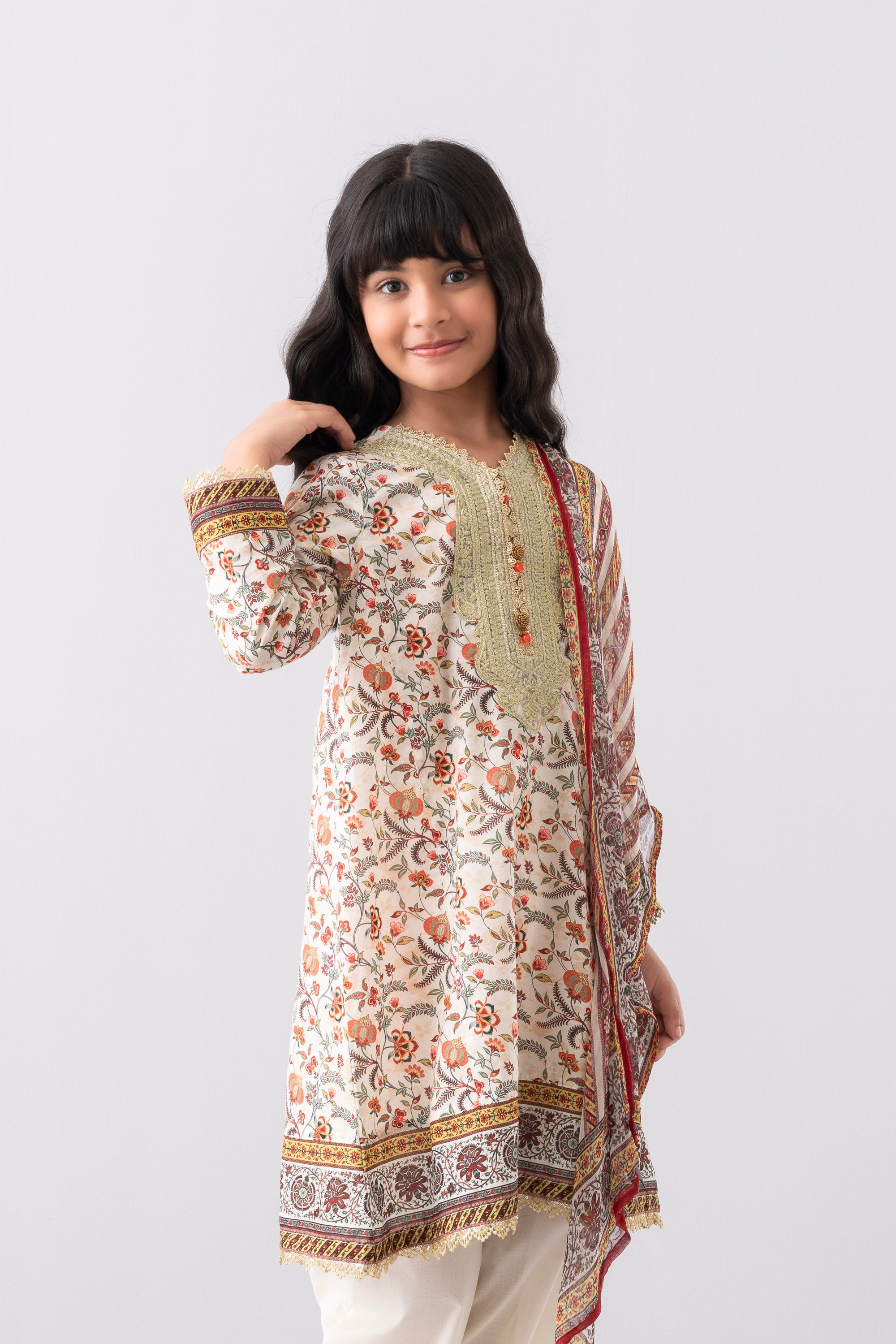 Relaxed Fit Printed Three-Piece Princess Lawn with Chiffon Dupatta (2-4 Years)