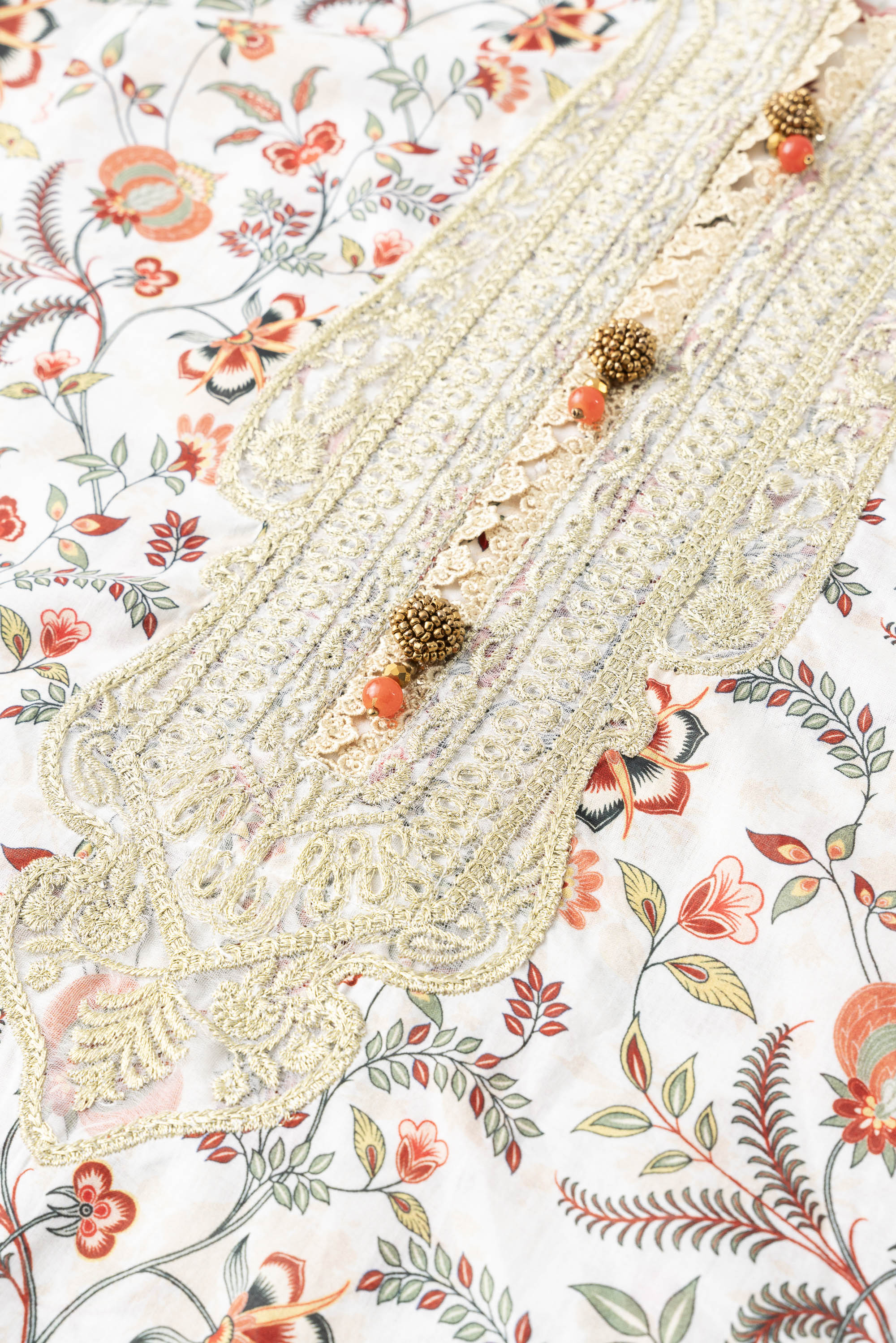 Elevate your elegance with our stunning ready-to-wear 3-Piece Lawn Salwar Kameez Suit, paired with a chiffon dupatta and matching printed trouser. The ensemble is beautifully adorned with decorative lace and pearls detailing creating a refined and elegant look. Perfect for special occasions or for adding luxury to your everyday wardrobe.