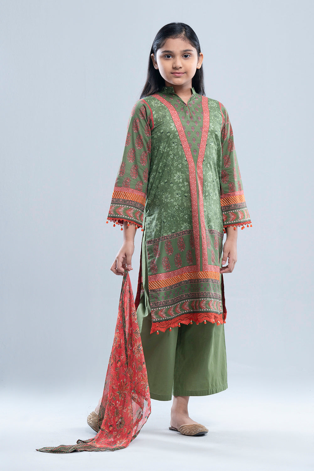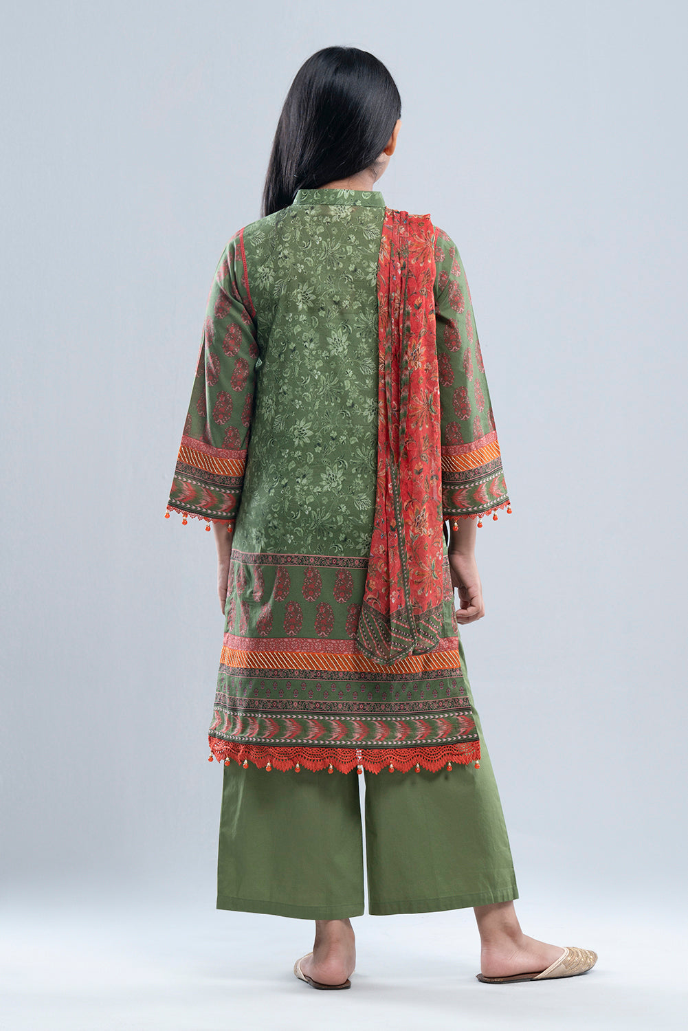 Elevate your elegance with our stunning ready-to-wear 3 Piece Lawn Salwar Kameez Suit with chiffon dupatta and solid dyed palazzo. Embellished with decorative lace, beaded tassels and organza with lurex embroidery that exudes elegance and sophistication,perfect for special occasions or adds luxury to your everyday wardrobe.