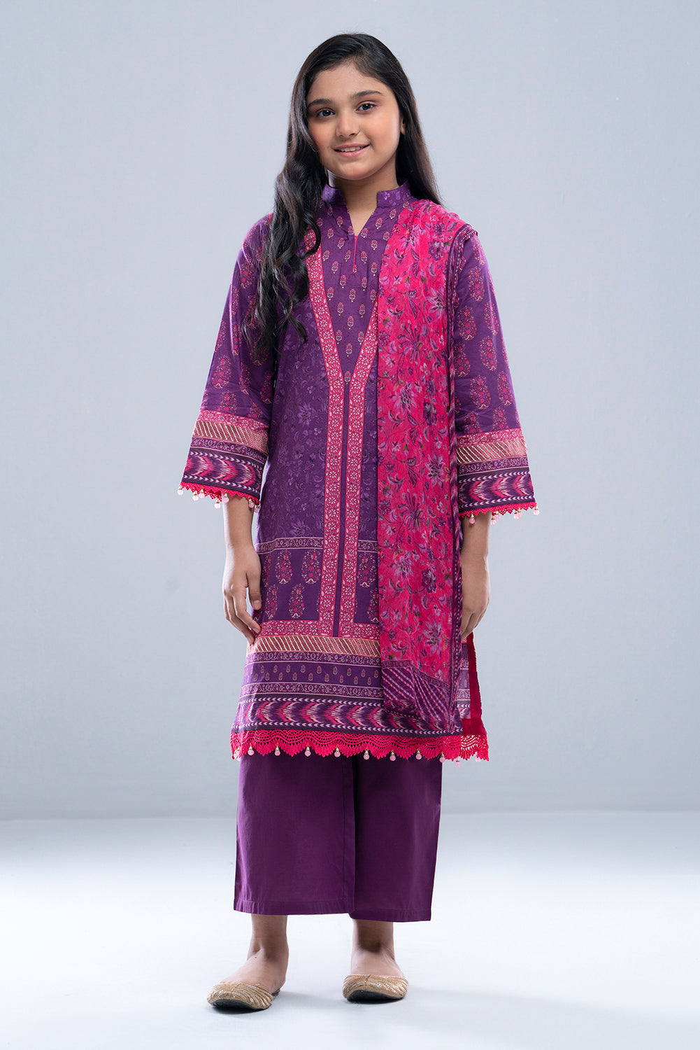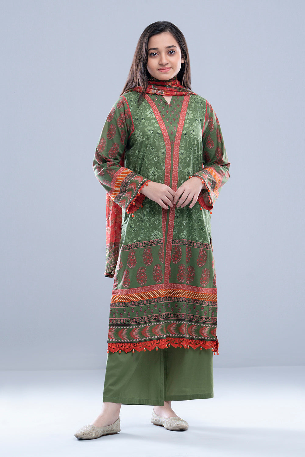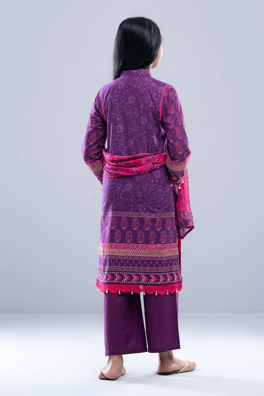 Elevate your elegance with our stunning ready-to-wear 3 Piece Lawn Salwar Kameez Suit with chiffon dupatta and solid dyed palazzo. Embellished with decorative lace, beaded tassels and organza with lurex embroidery that exudes elegance and sophistication,perfect for special occasions or adds luxury to your everyday wardrobe.