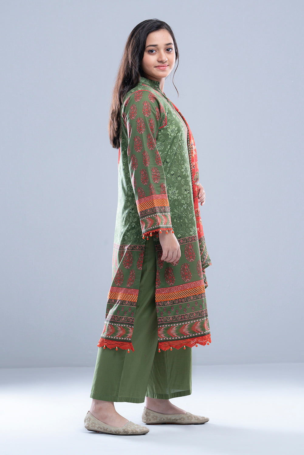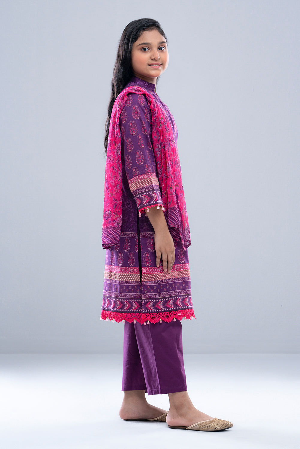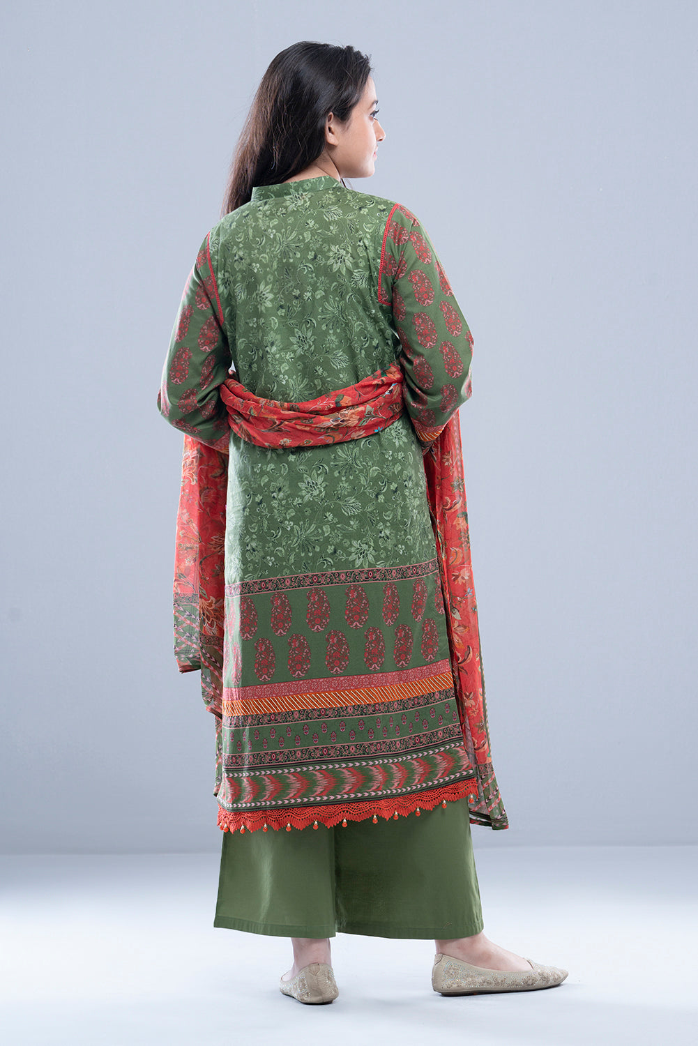 Elevate your elegance with our stunning ready-to-wear 3 Piece Lawn Salwar Kameez Suit with chiffon dupatta and solid dyed palazzo. Embellished with decorative lace, beaded tassels and organza with lurex embroidery that exudes elegance and sophistication,perfect for special occasions or adds luxury to your everyday wardrobe.