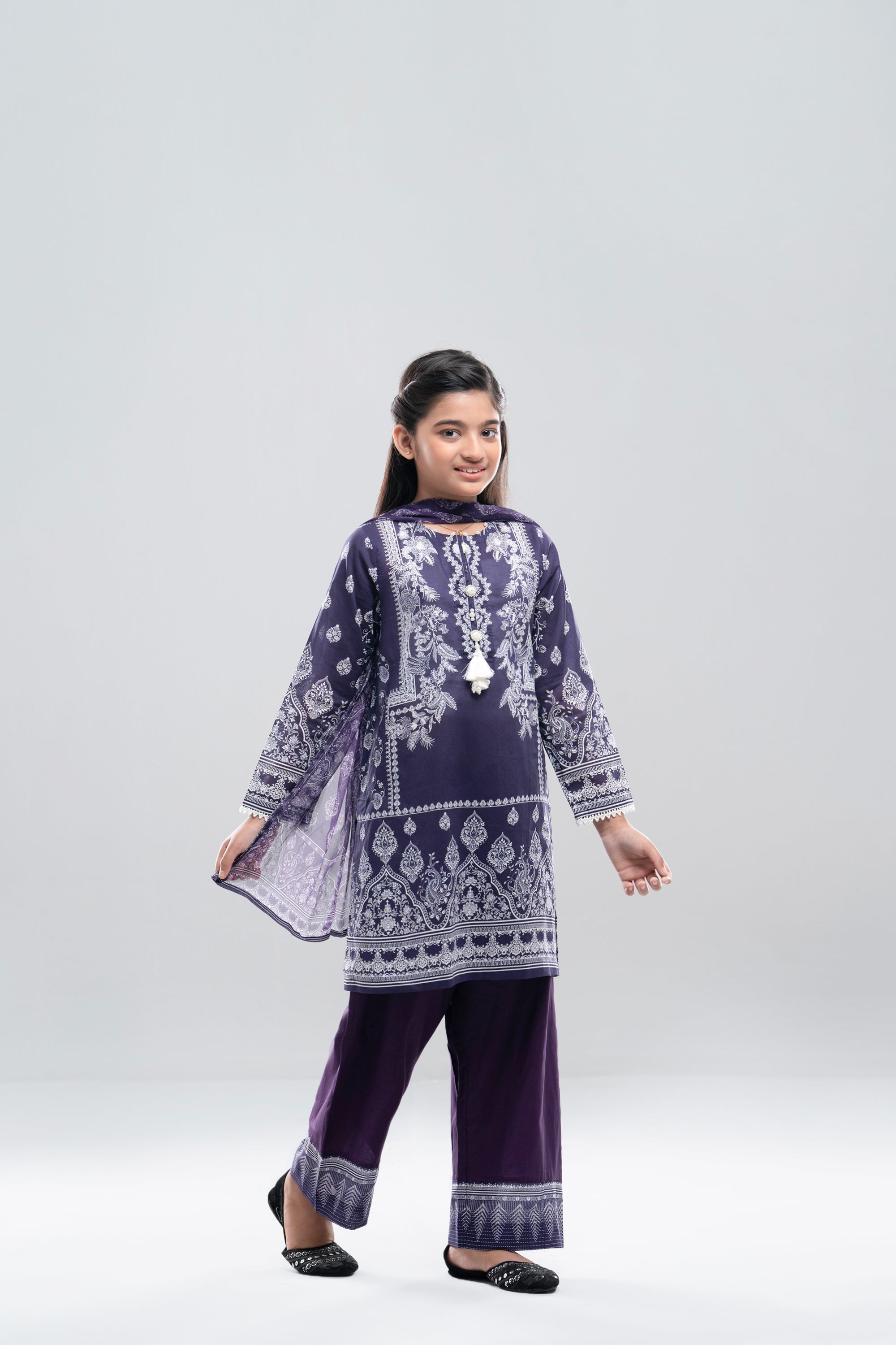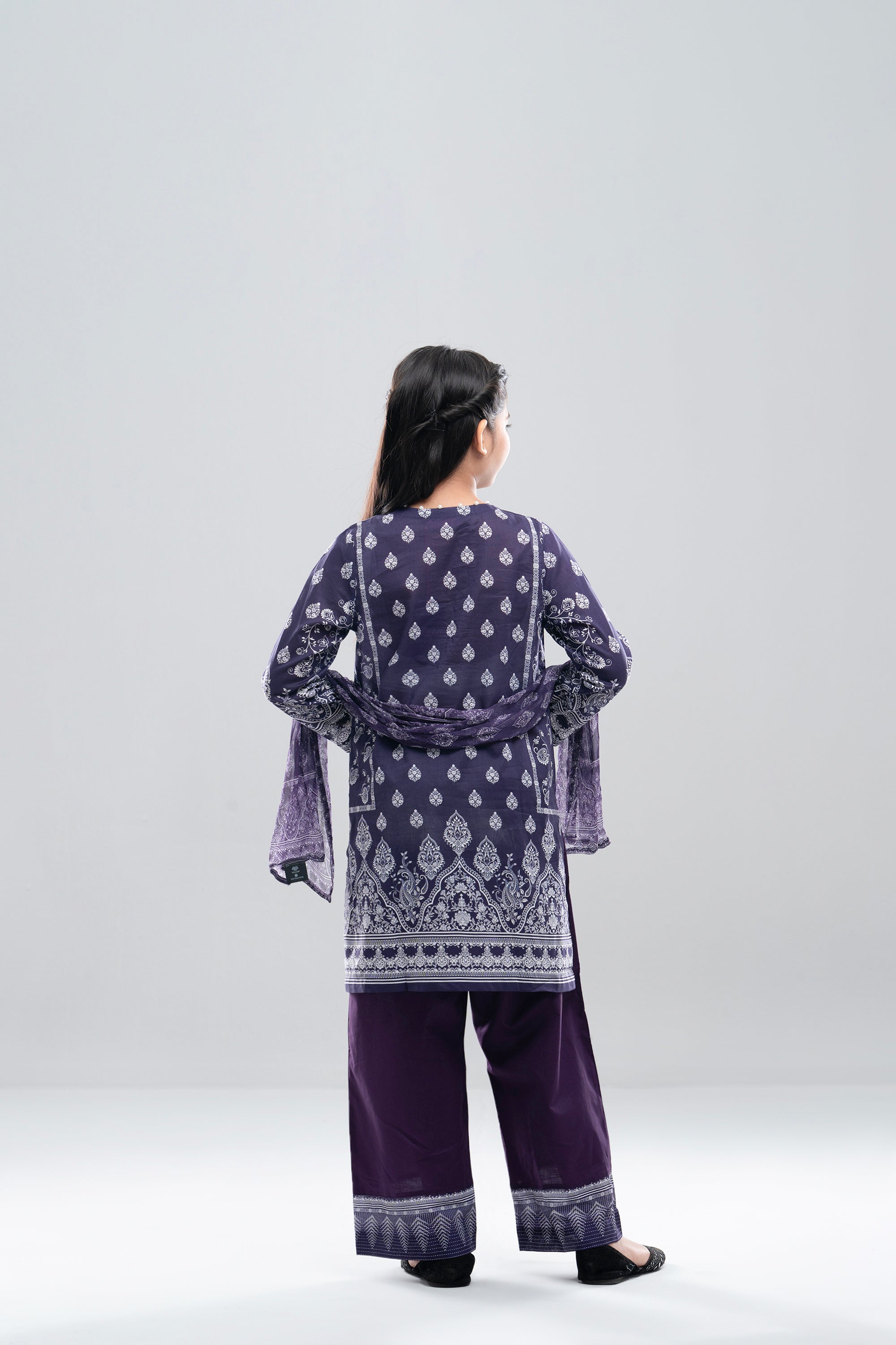 Smart Fit Printed Three-Piece Princess Lawn with Chiffon Dupatta (2-4 Years)