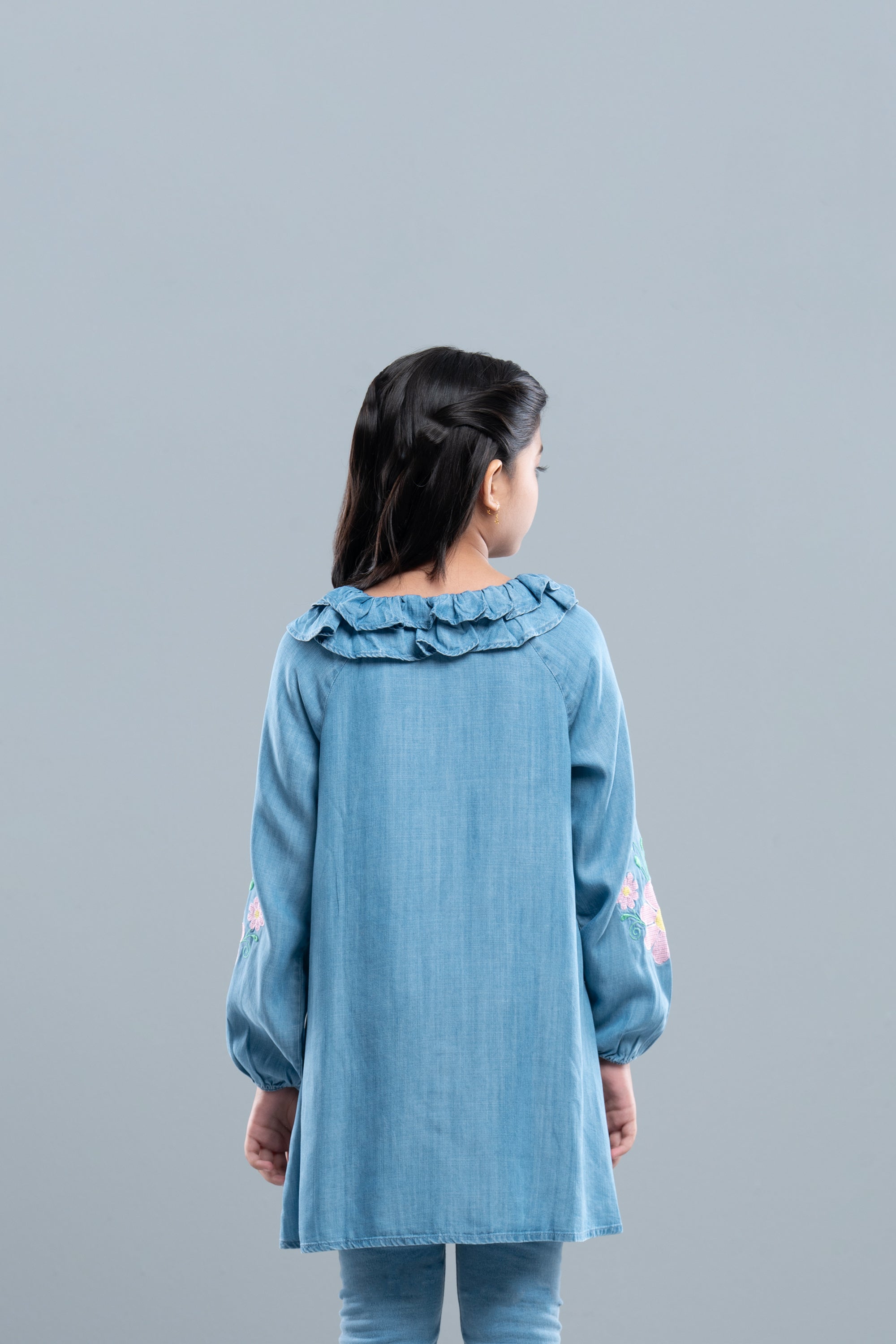 • Full length sleeve, neck ruffle, raglan sleeve.