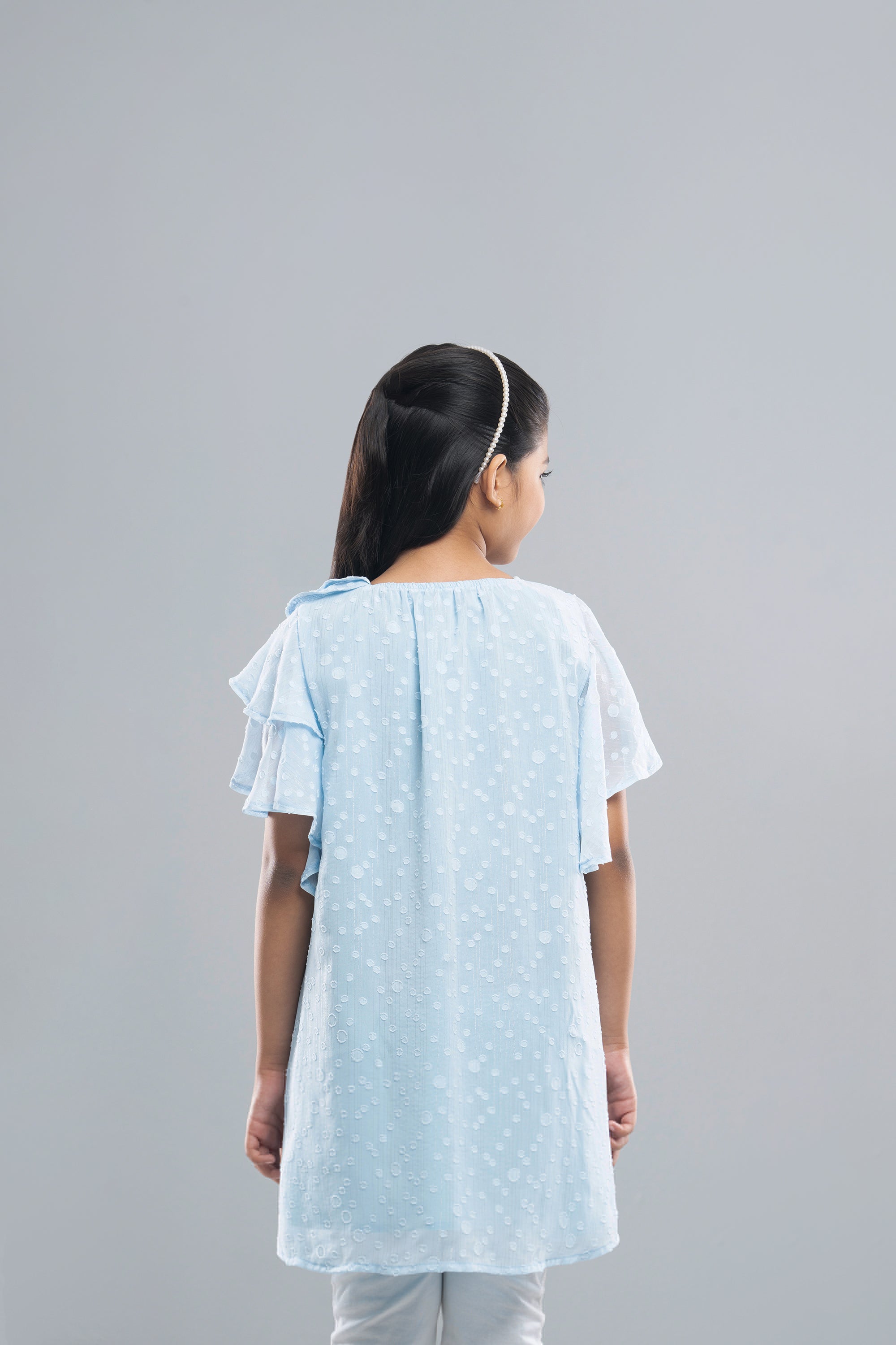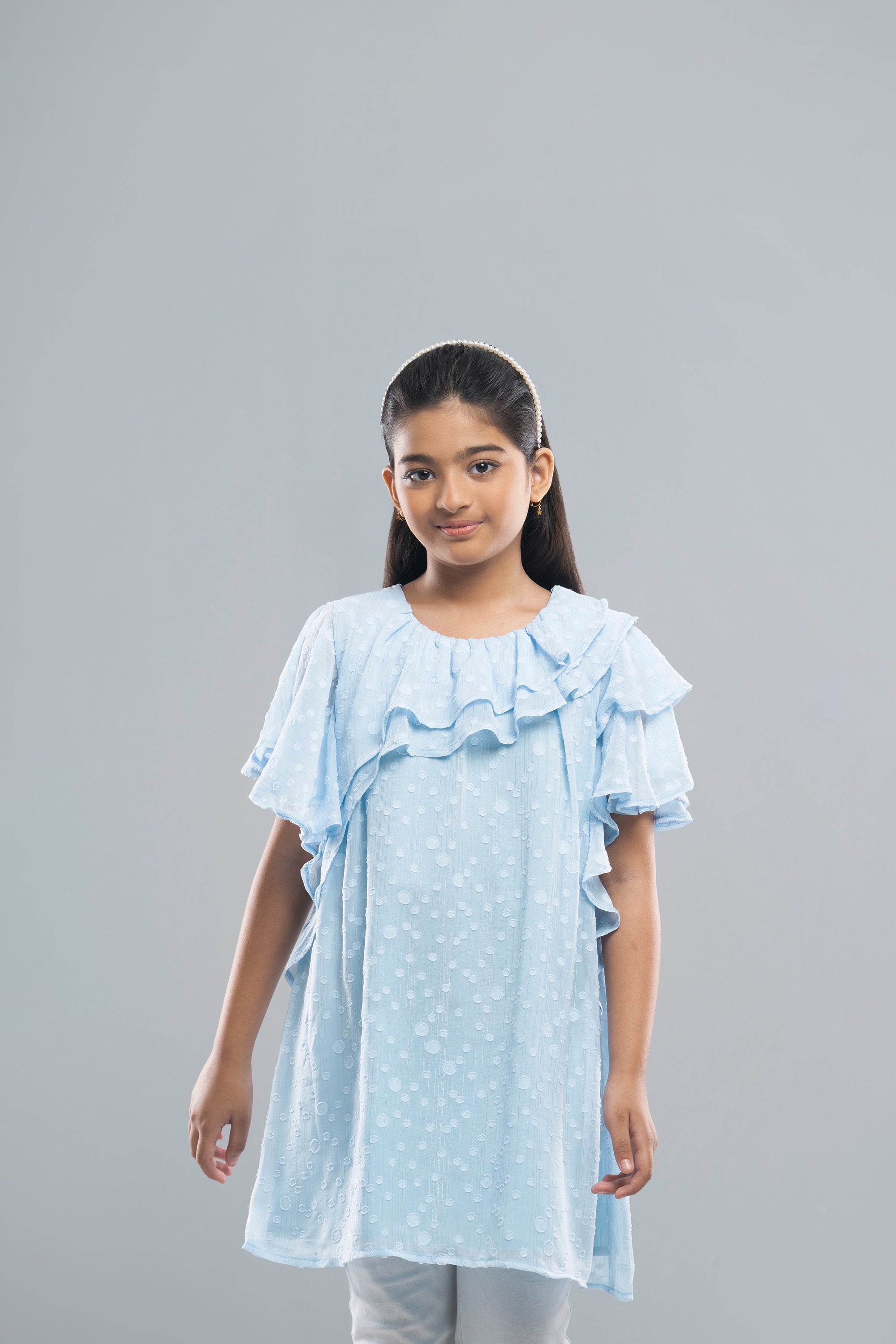 • Sleeve less, Sholder strap with ruffle, back zip closure.