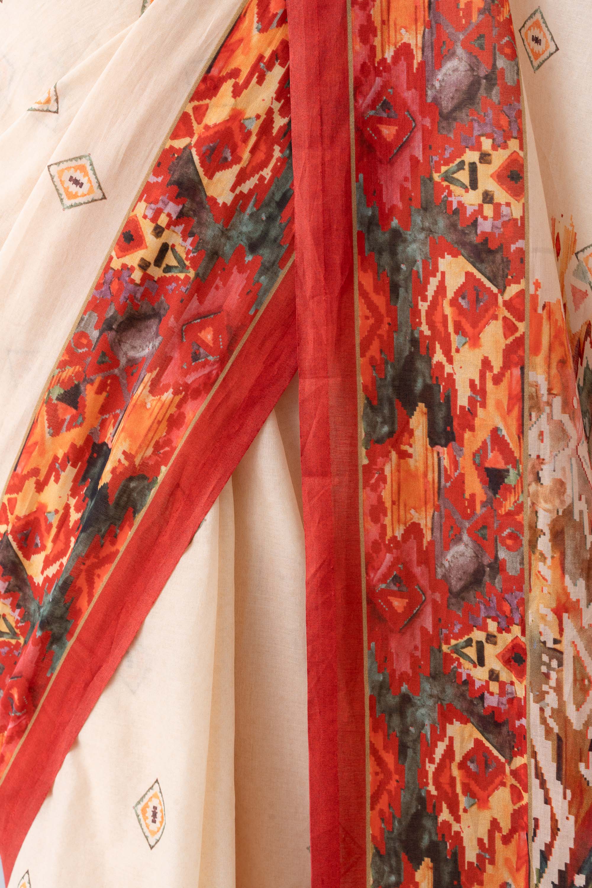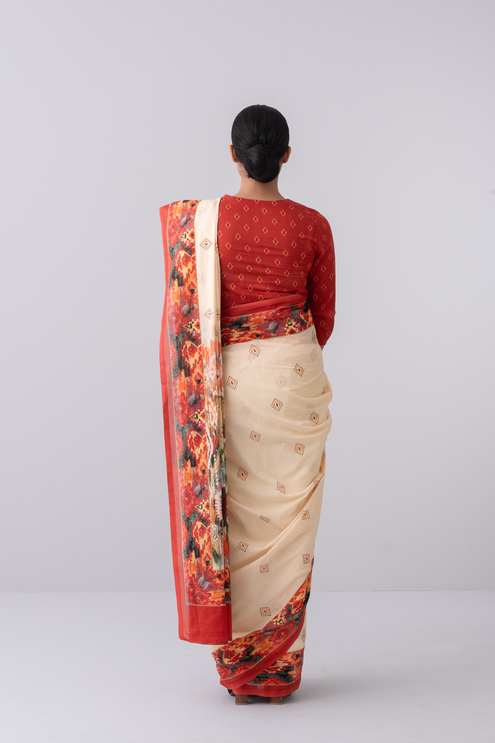 Digital printed cotton Saree with a matching unstitched blouse piece is a great choice for both daily wear and special occasions.Perfect for various occasions,from casual outing to festive celebration