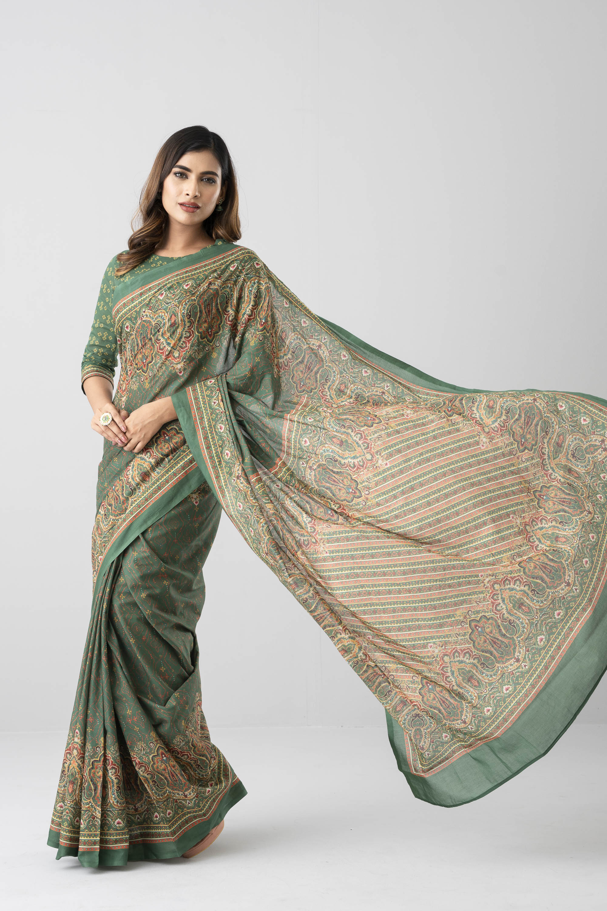 Digital printed cotton saree with a matching unstitched blouse piece is a great choice for both daily wear and special occasions. Perfect for various occasions, from casual outing to festive celebrations.