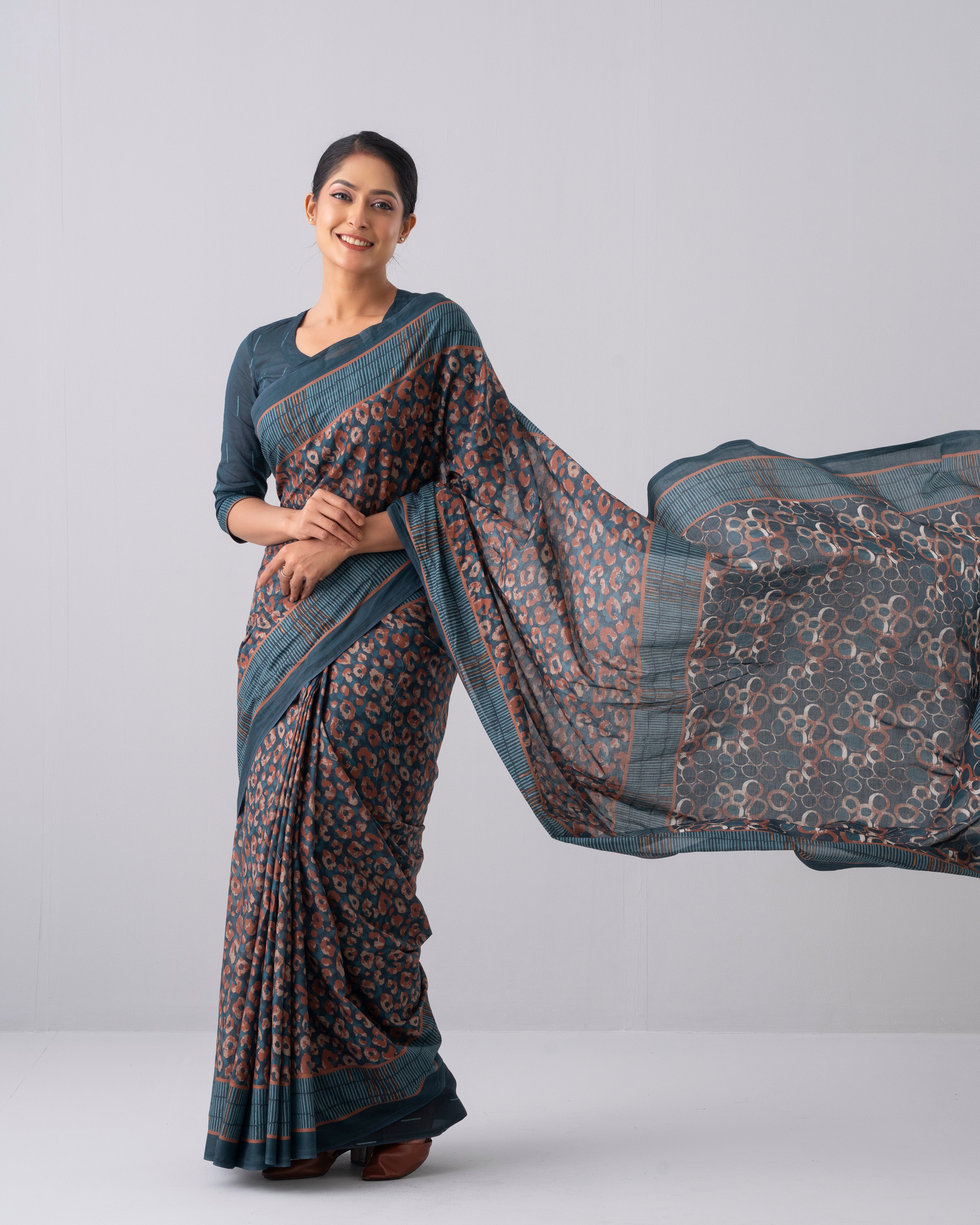 Digital printed cotton saree with a matching unstitched blouse piece is a great choice for both daily wear and special occasions.