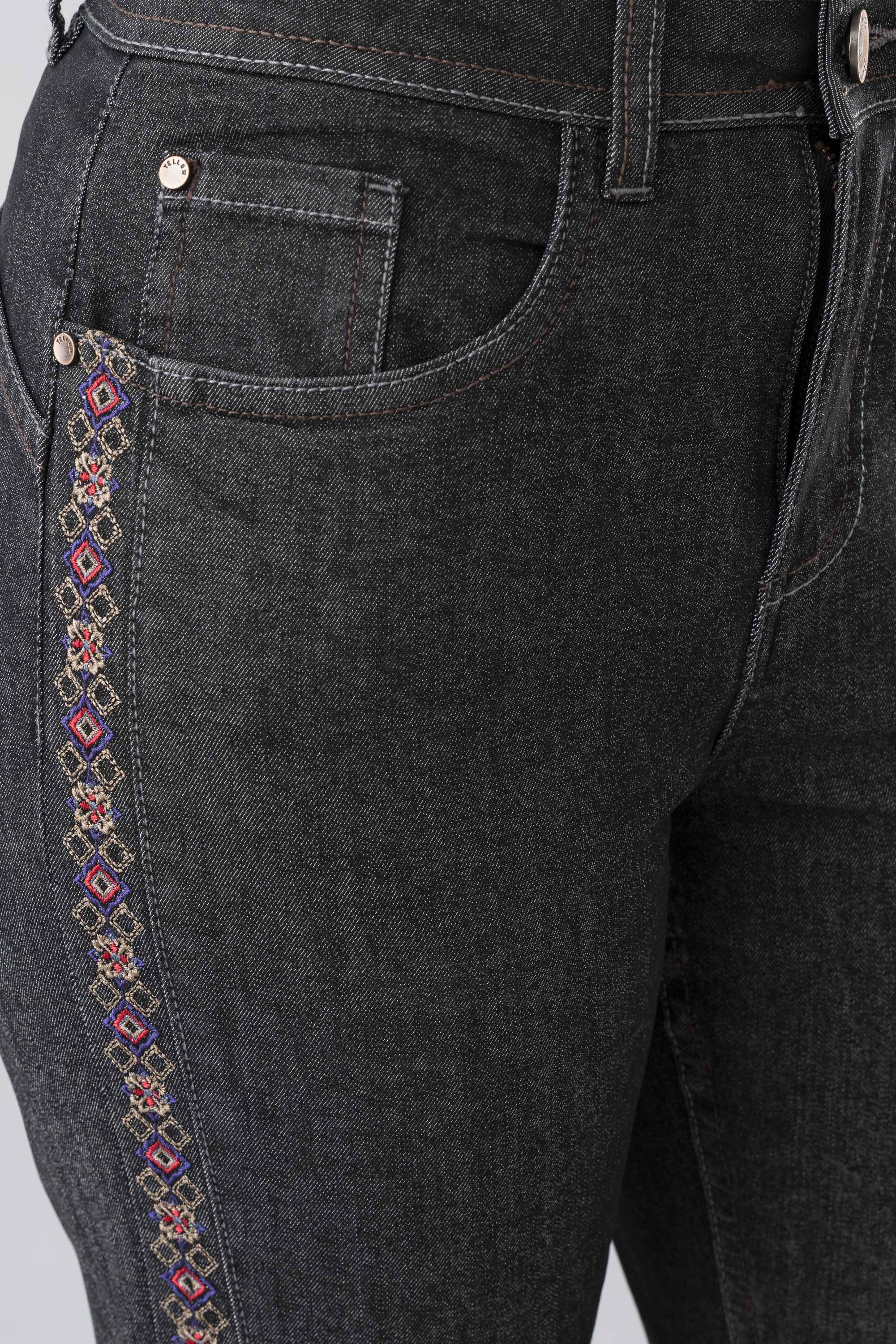 Designed for everyday comfort and style, this regular fit, mid-waist denim is crafted from comfort stretch fabric that moves with you. Subtle embroidery along the side seam adds a touch of elegance, while contrast thread detailing enhances the classic denim look. A perfect balance of versatility and chic design.