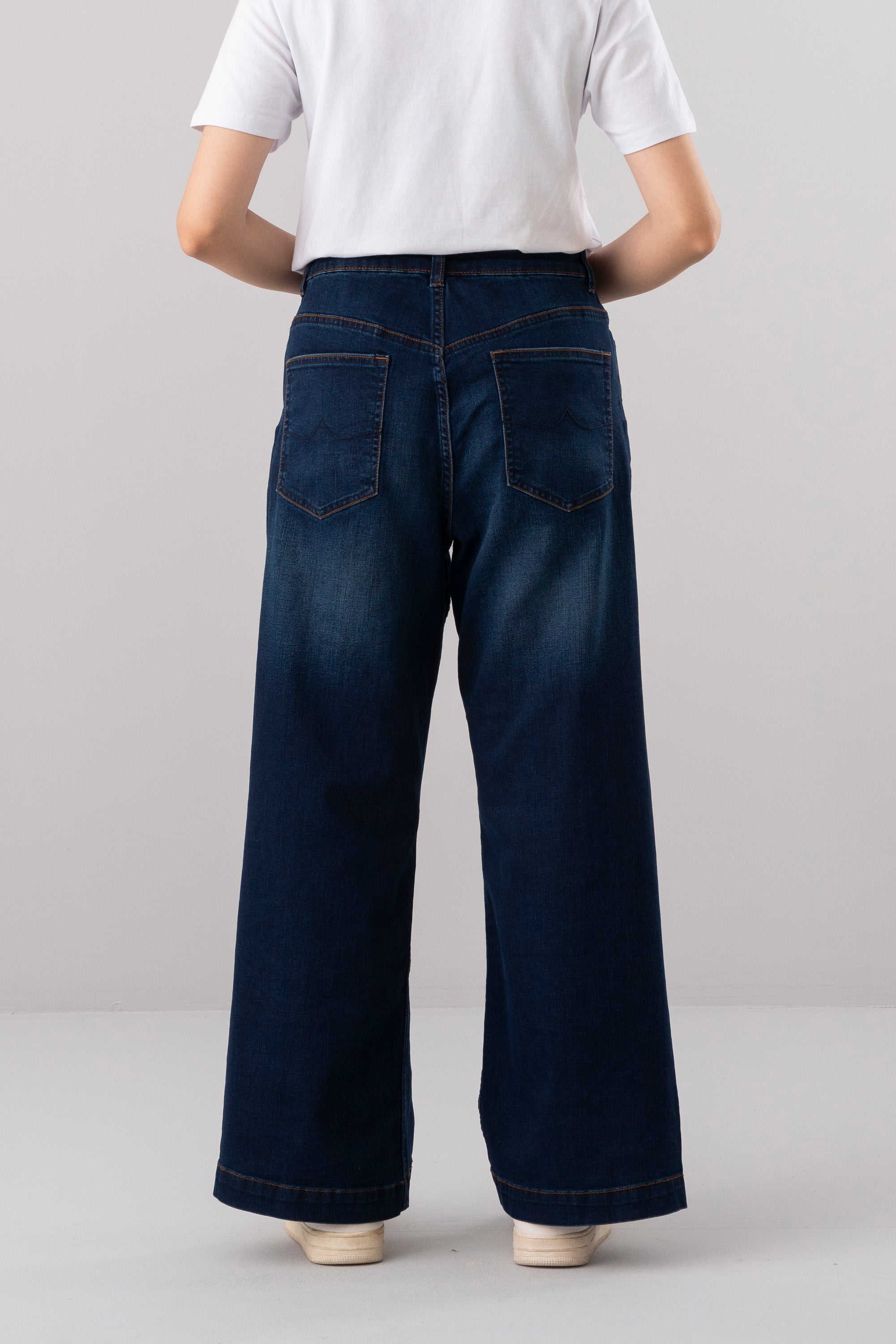 The Women’s Wide Leg Denim comes in a mid wash with subtle whisker details at the thigh for a naturally worn look. Finished with contrast thread stitching, copper button and rivets, and crafted from soft fabric, it offers both comfort and timeless style.