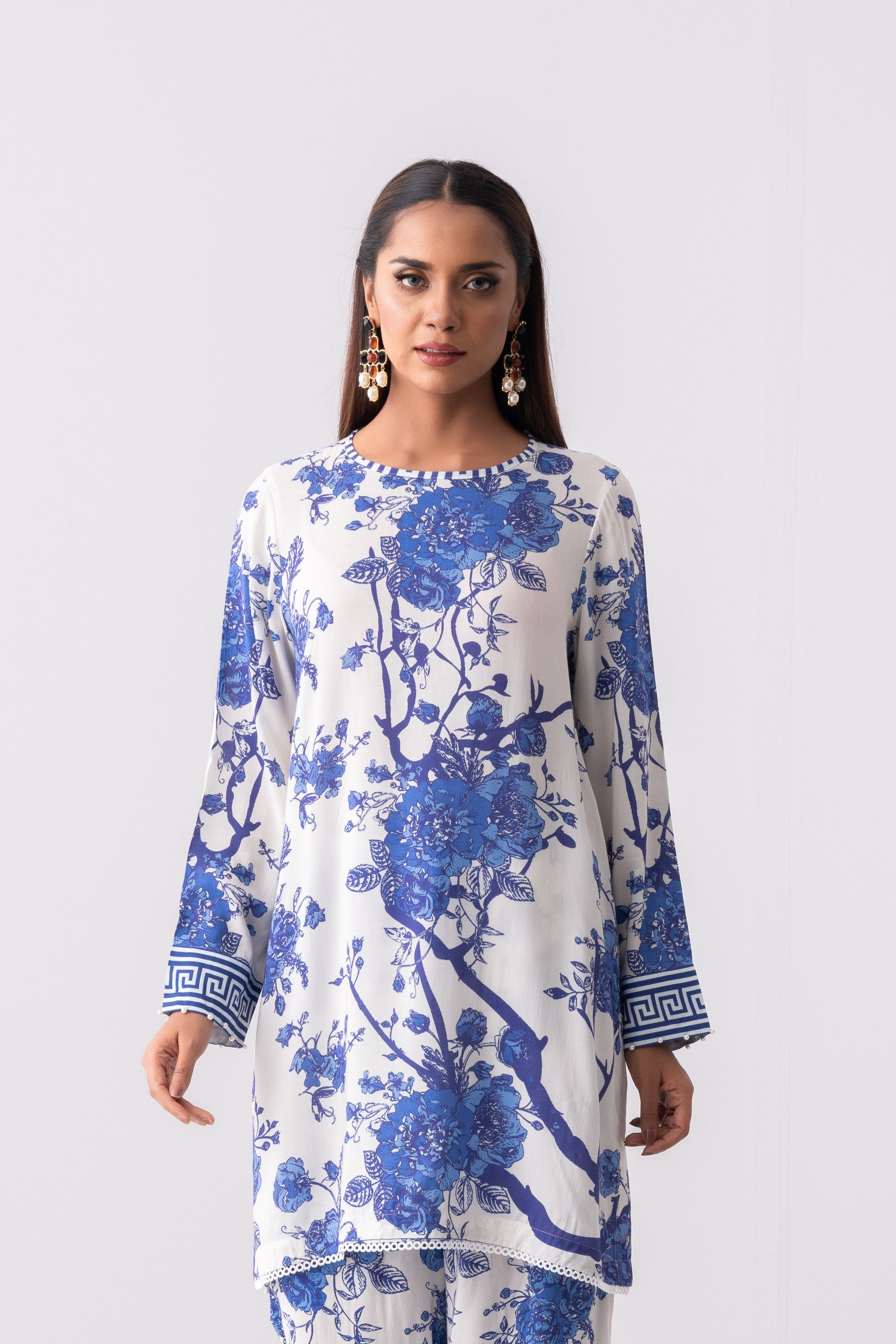 Ready-to-wear Printed Two-Piece viscose set with matching bottom.