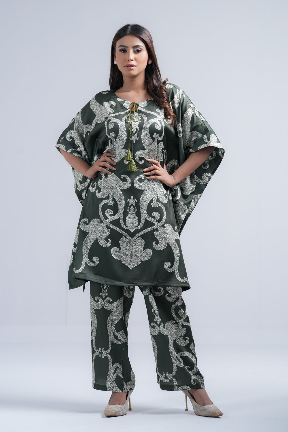 Ready to wear printed two piece semi-formal matching kaftan set.