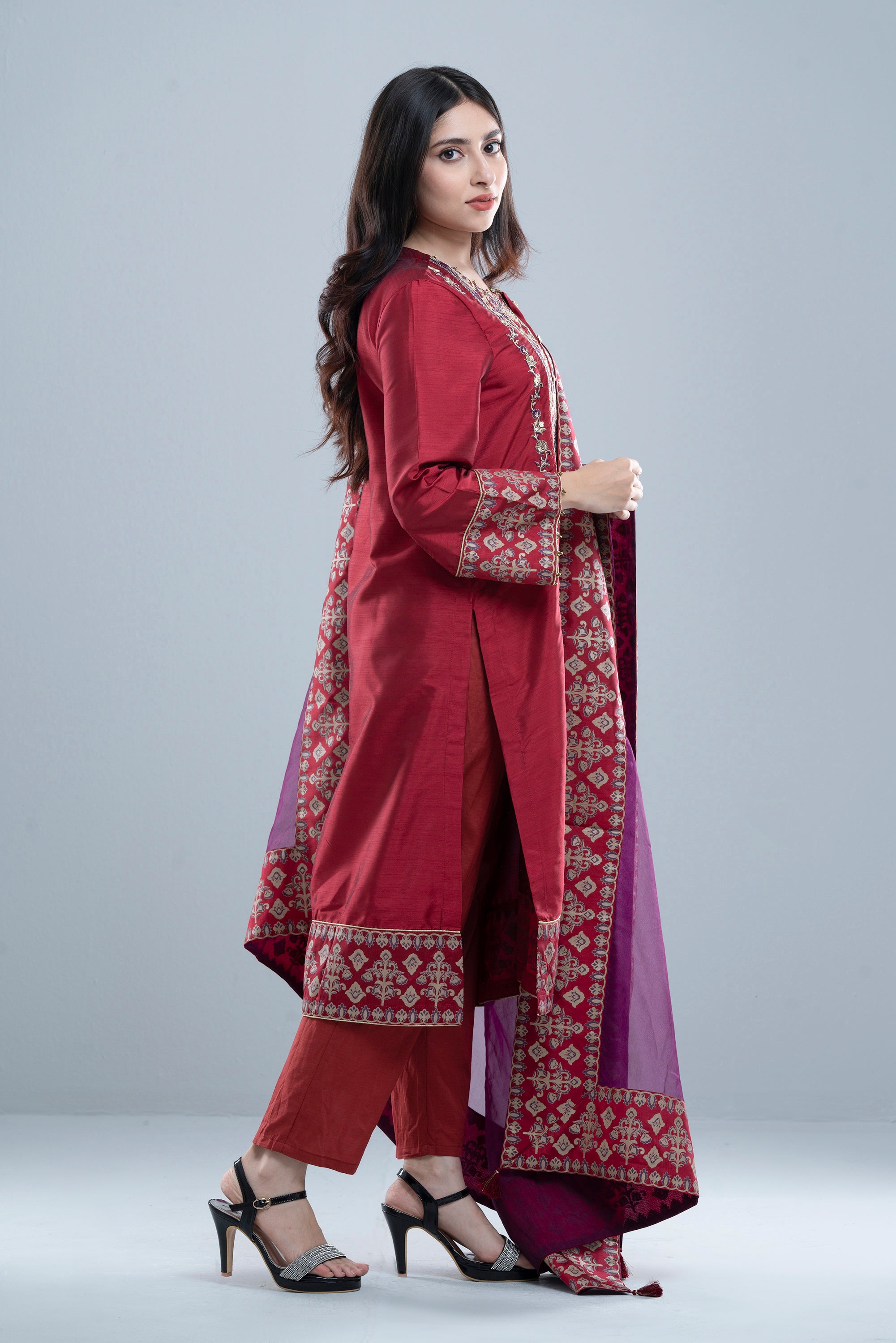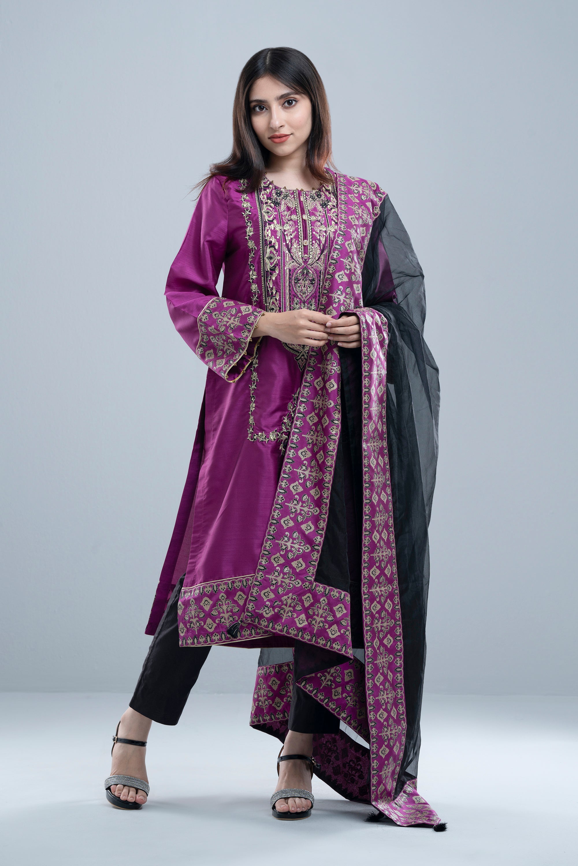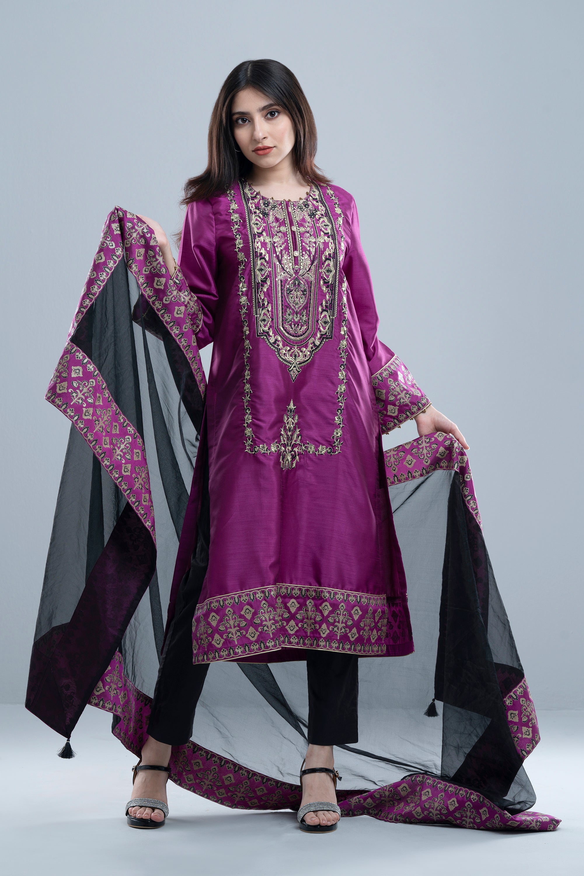 Ready to wear Embroidery with Print two piece Formal set with organza dupatta